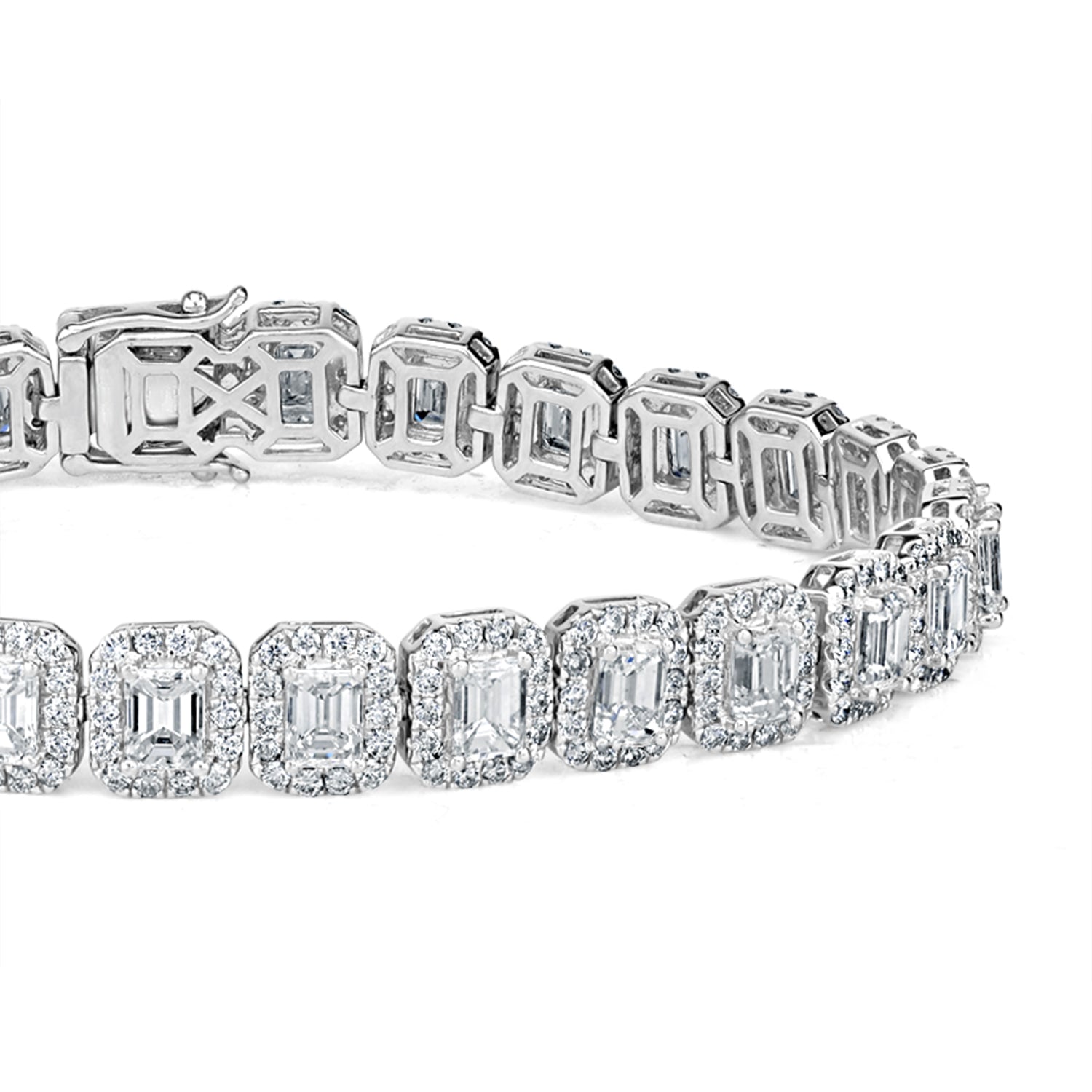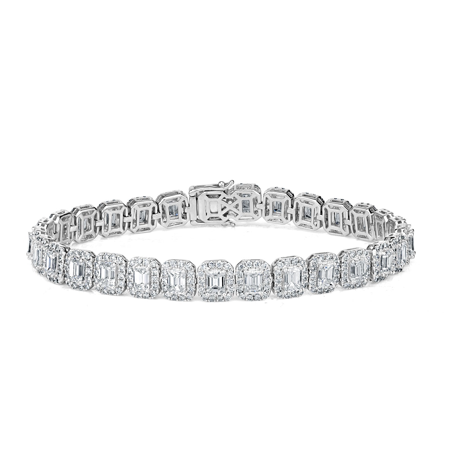 Styled from 18k white gold, these bracelets have a very contemporary look. This extraordinary bracelet is set with emerald-cut Diamond and round Diamonds is just what you need to make your presence truly felt.