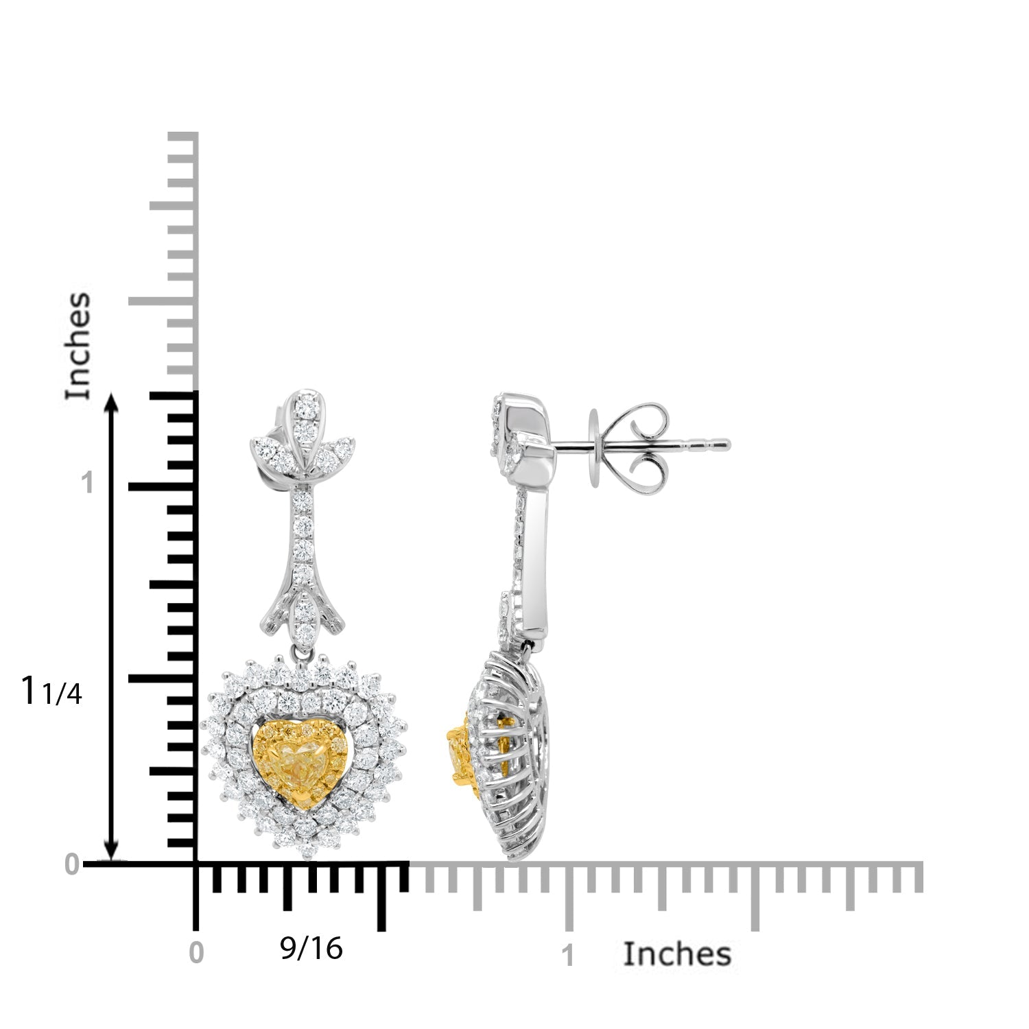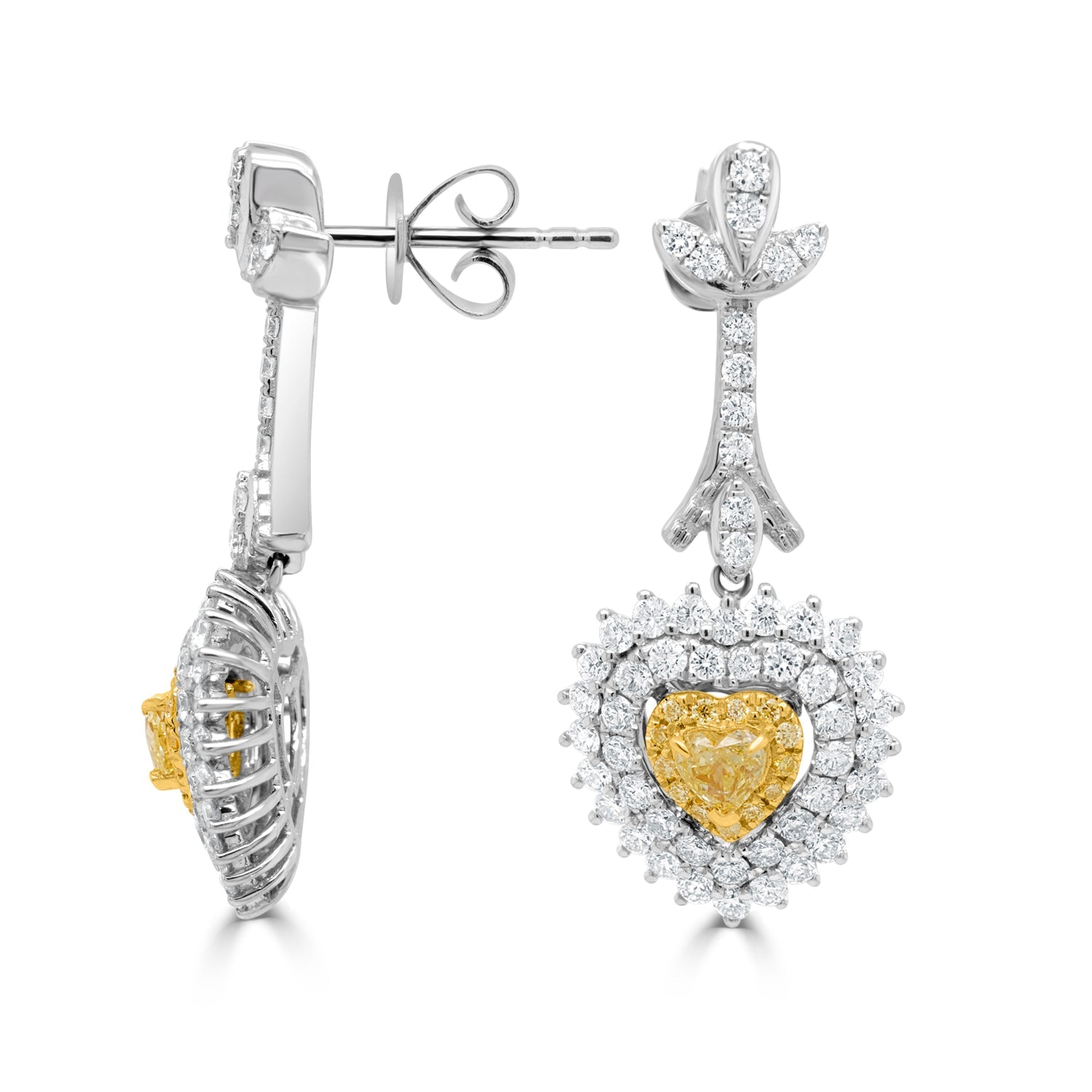 These earrings are crafted from 18K white gold and set with a heart-cut yellow Diamond and sparkling round Diamonds.