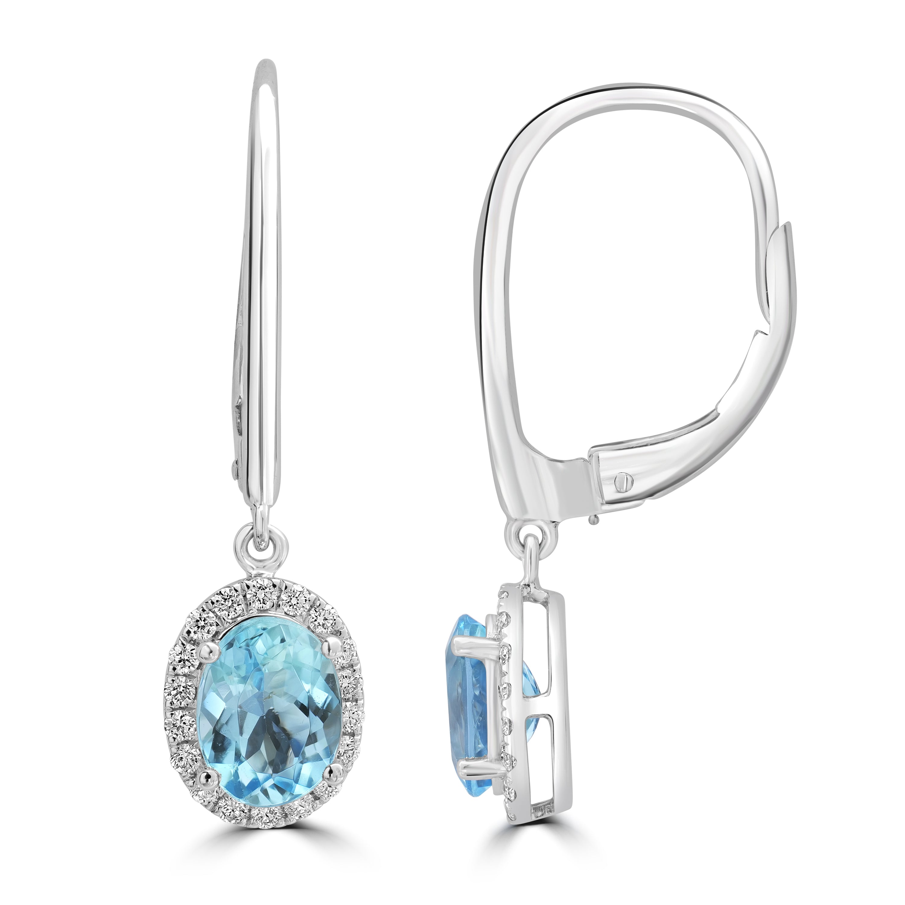 Elevate your look with these timeless 18K white gold earrings. Perfect for special occasions, their world-class design showcases oval-cut Aquamarine and sparkling round Diamonds. Experience extraordinary glamour with this alluring and stunning pair.