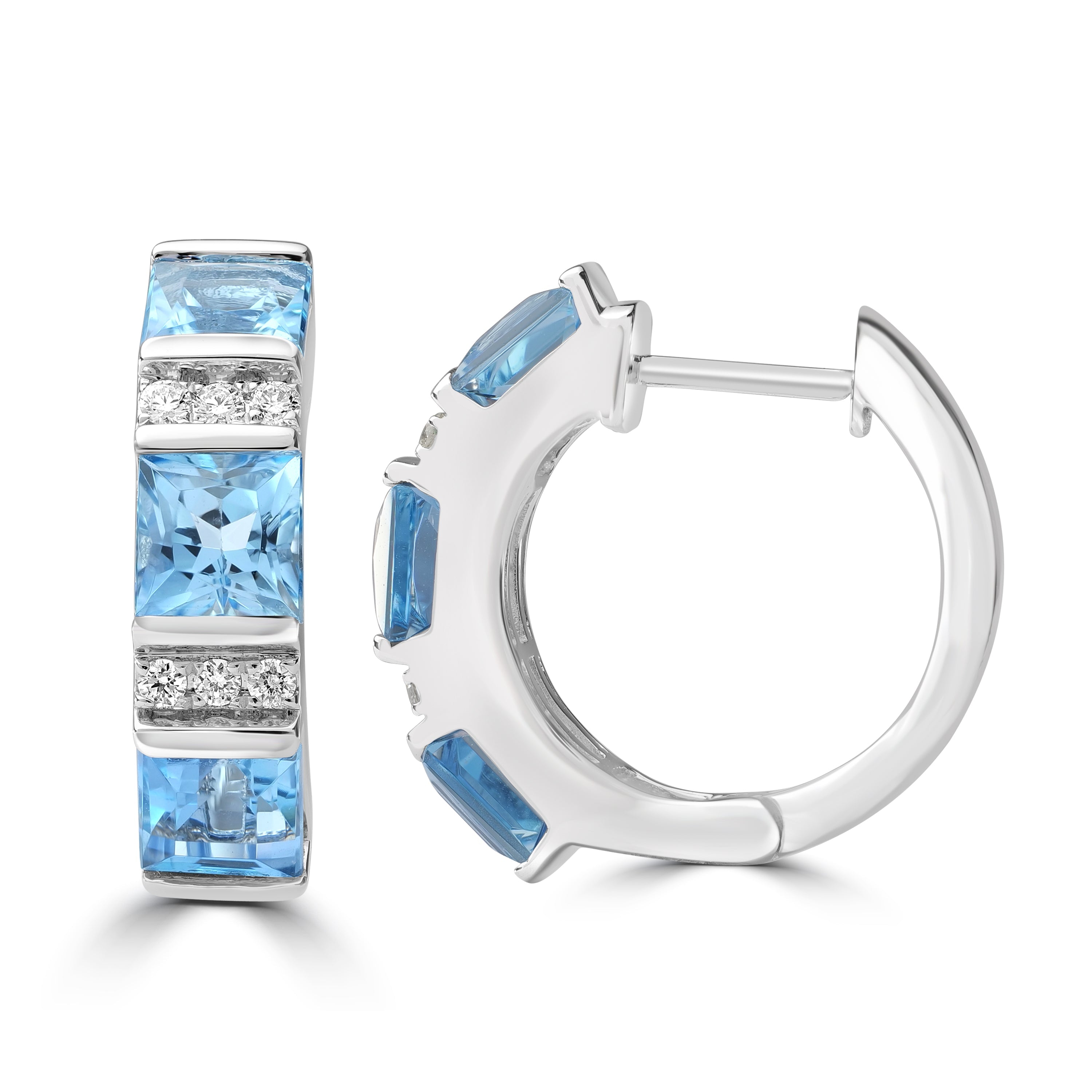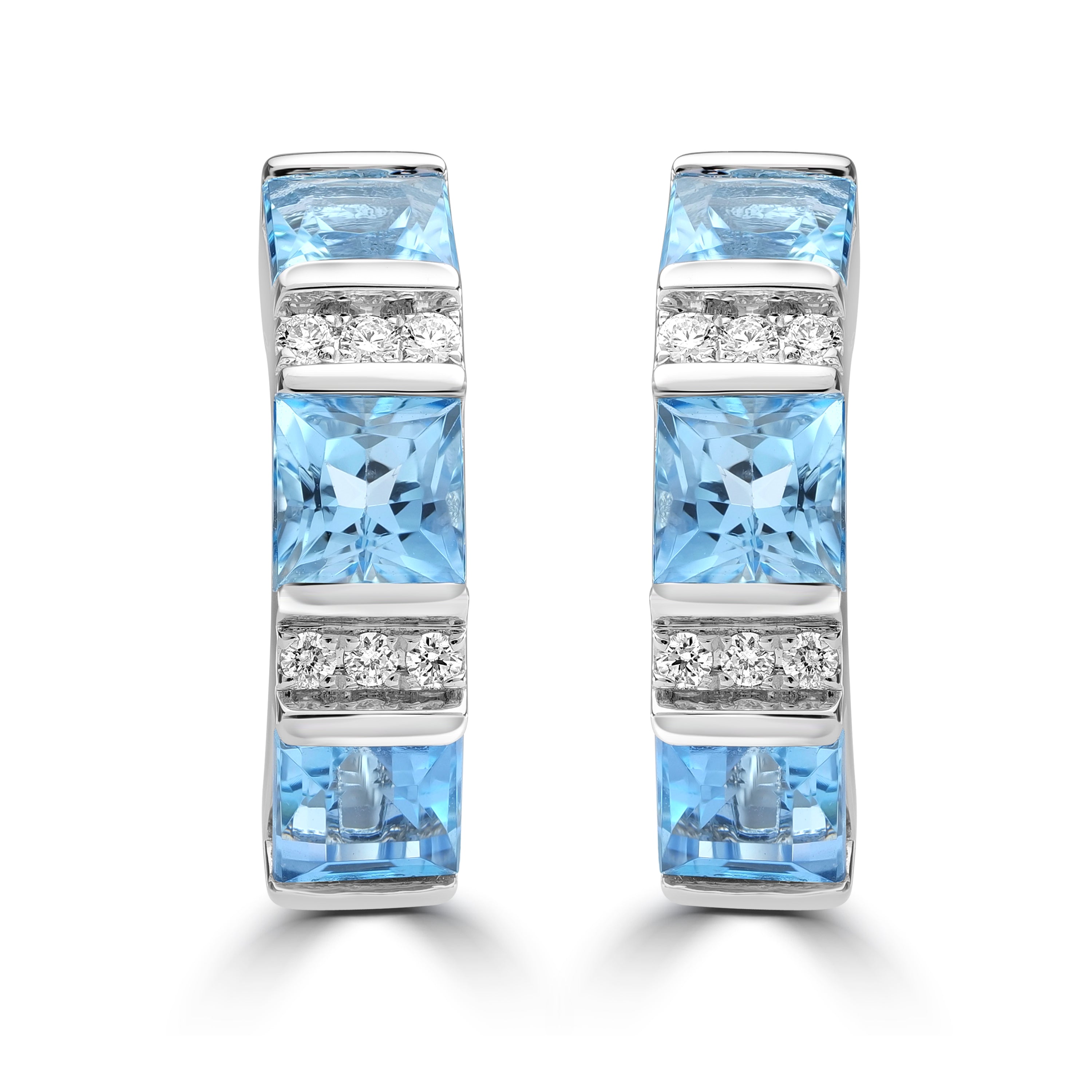 Captivating and elegant, crafted with 18K white gold, these earrings elevate your look with sophistication. Featuring a stunning square-cut Aquamarine and round Diamonds, these meticulously crafted earrings showcase exquisite artistry. Prepare to be mesmerized by their beauty.