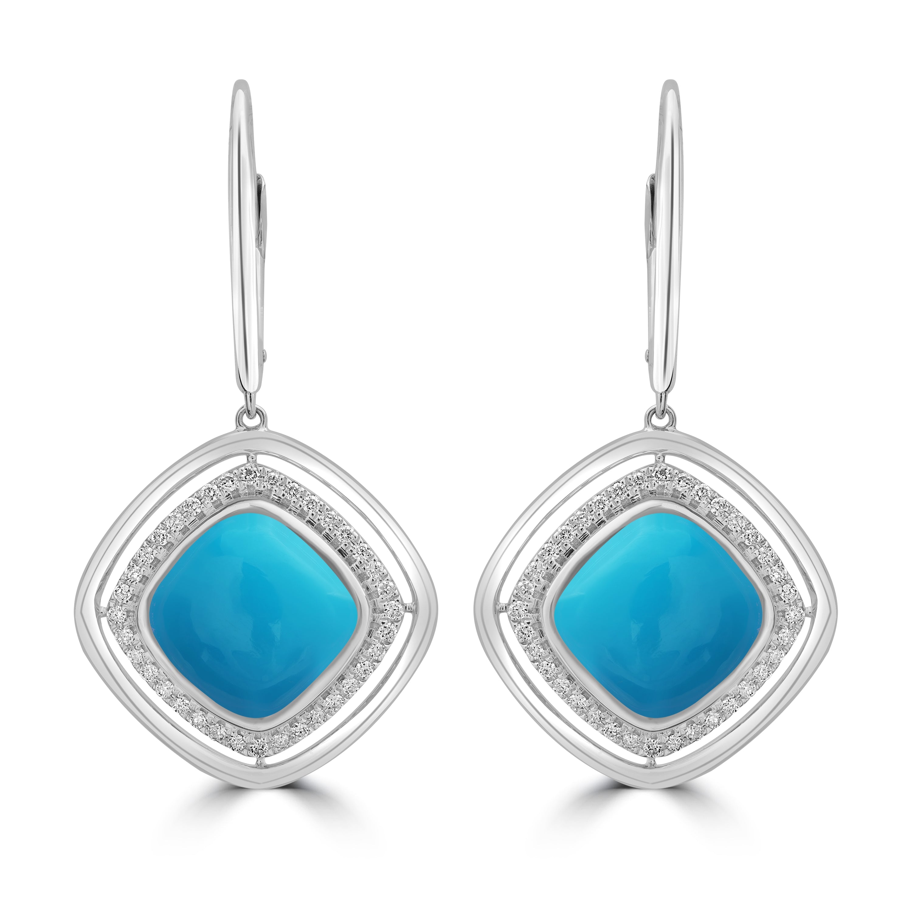 Exquisitely crafted with a scrupulous design, these 18K yellow gold earrings are a truly luxurious piece to cherish. The vibrant cushion-cut Turquoise and sparkling round Diamonds add a stylish and opulent appeal. Elevate your look with these artistic and elegant earrings.