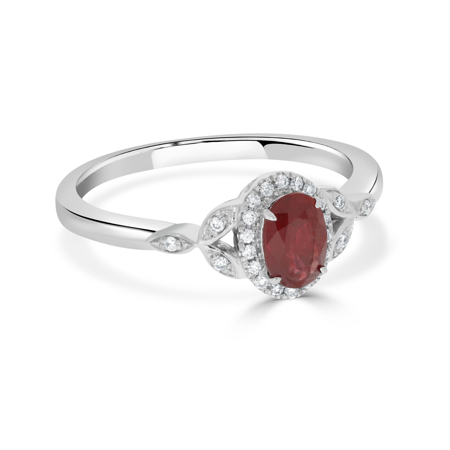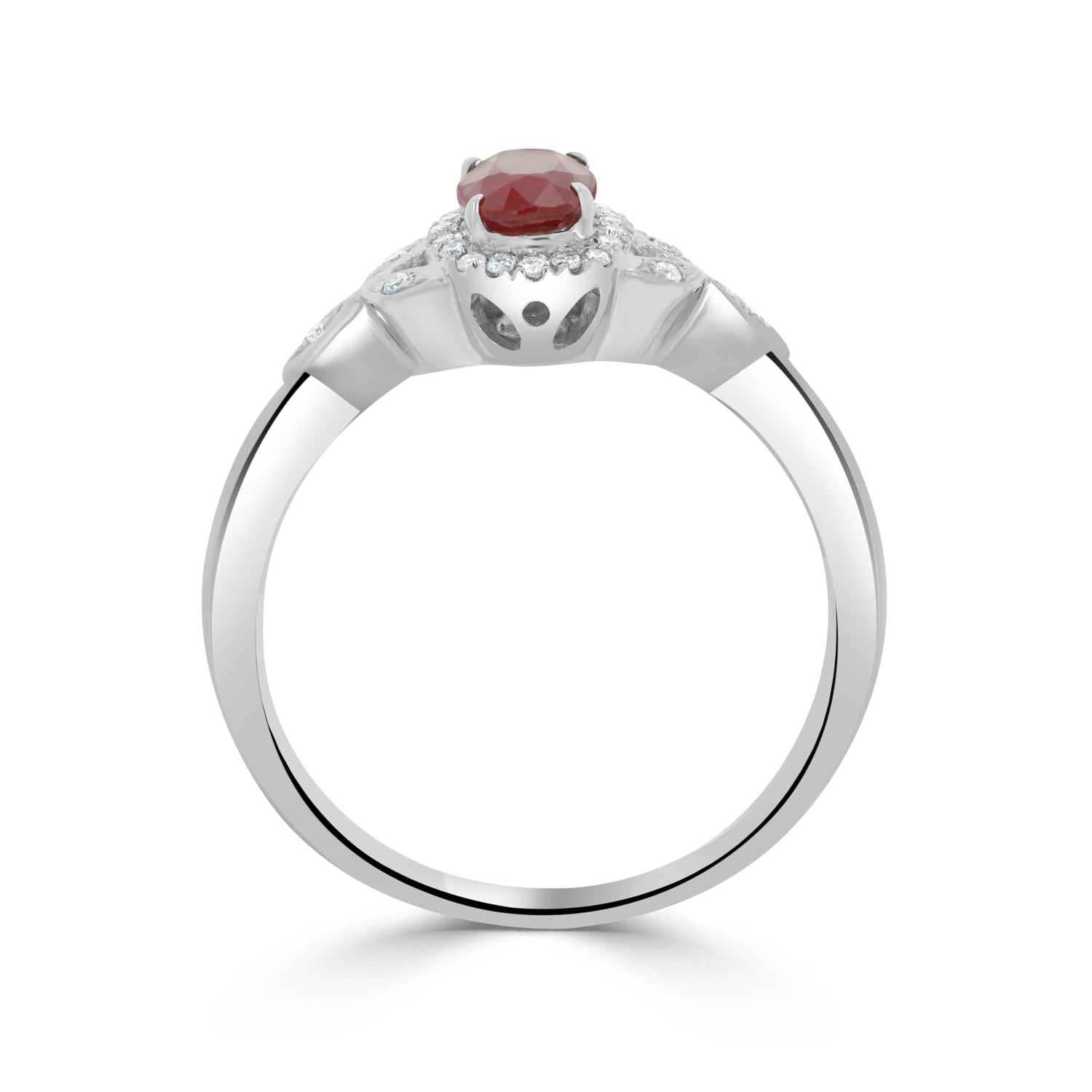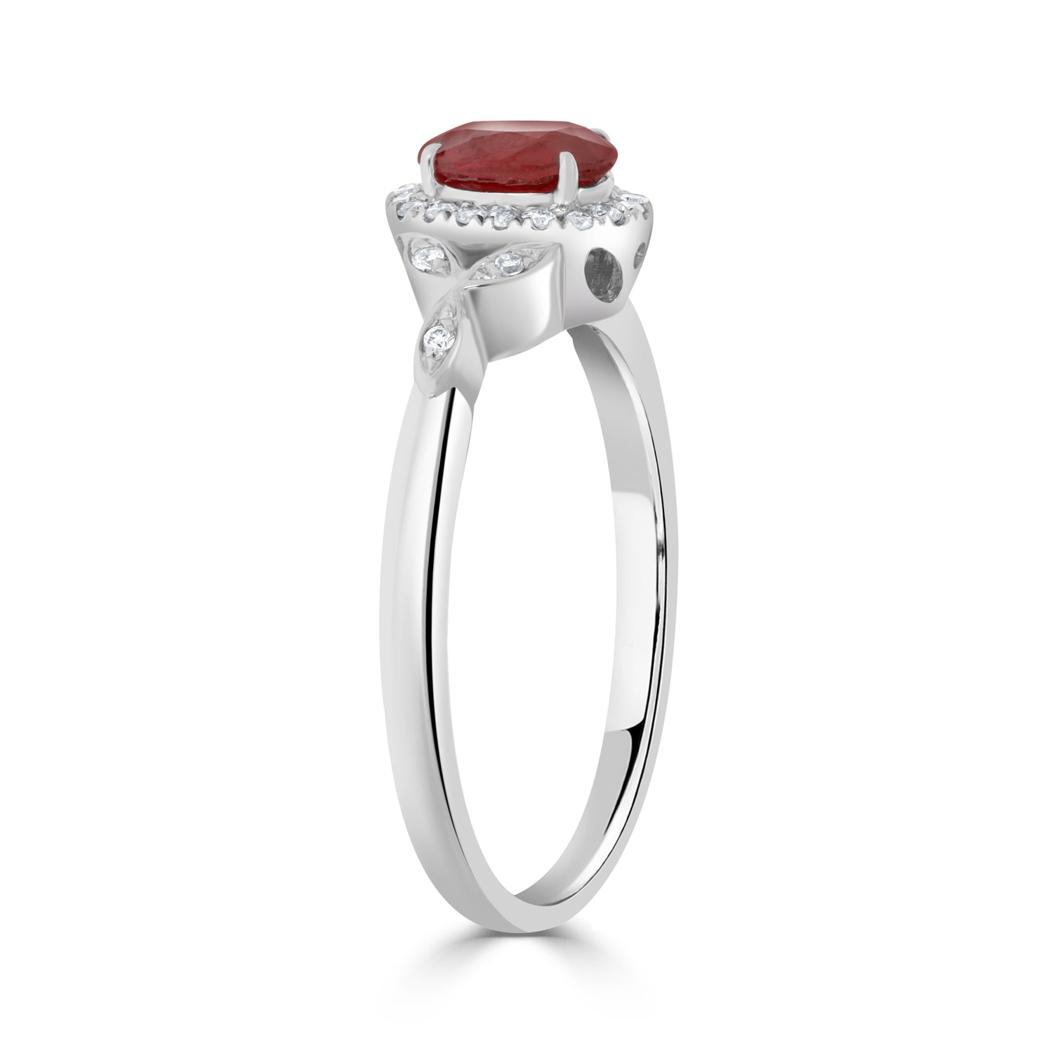 Designed With A Glorious Oval Cut Ruby, The Endless Glow Of This Striking Ring Comes From The Dazzling Round Cut Diamonds That Encircle It. Crafted Of 18K White Gold, This Exceptional Ring Complements Your Elegant Personality With Flair.