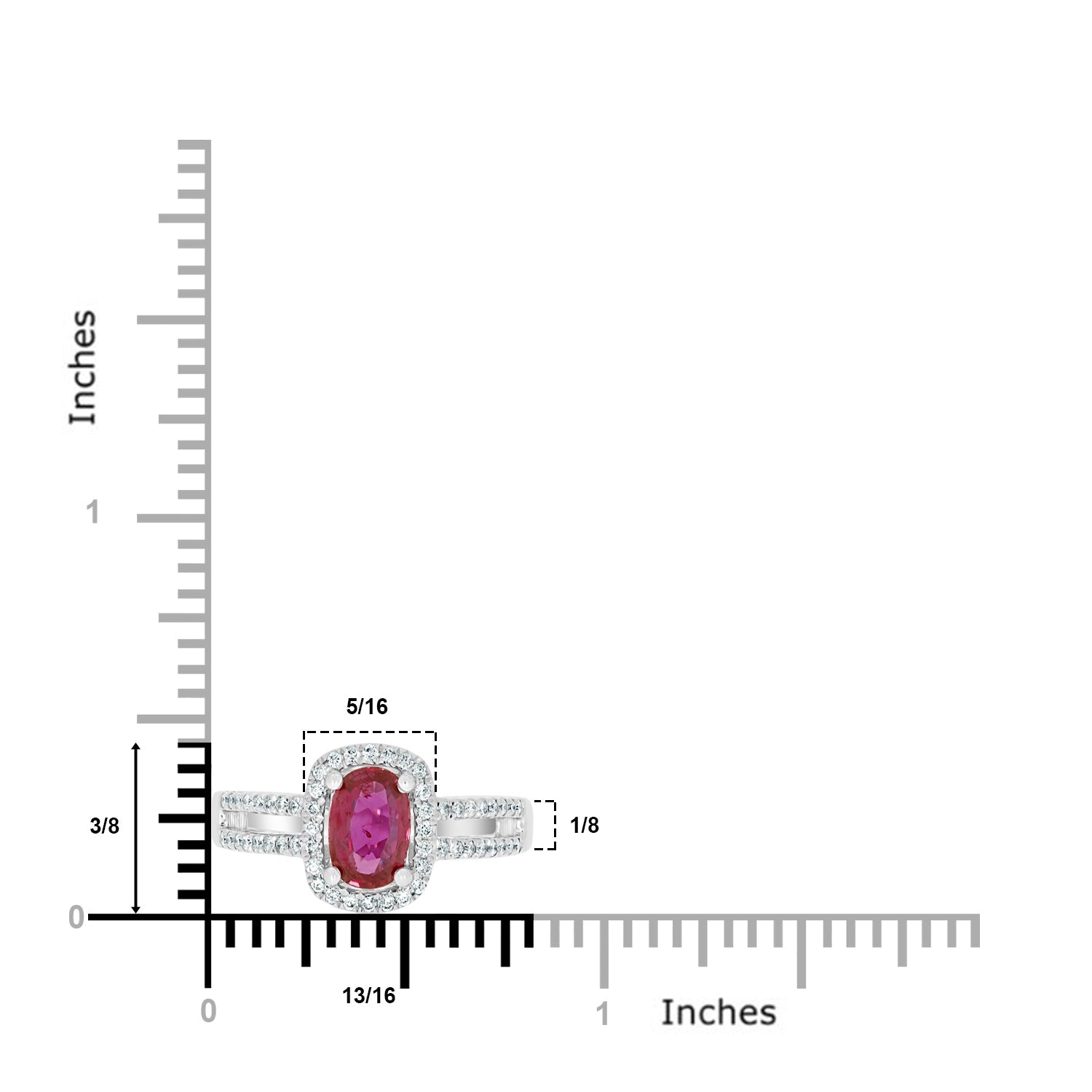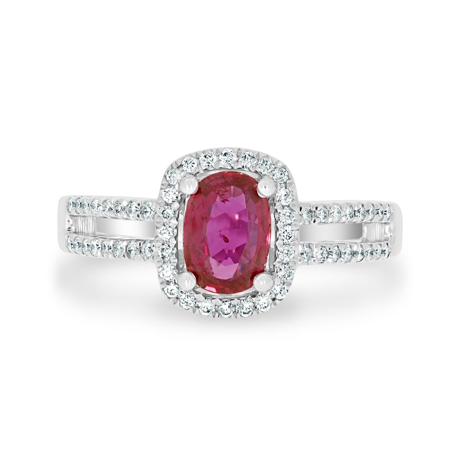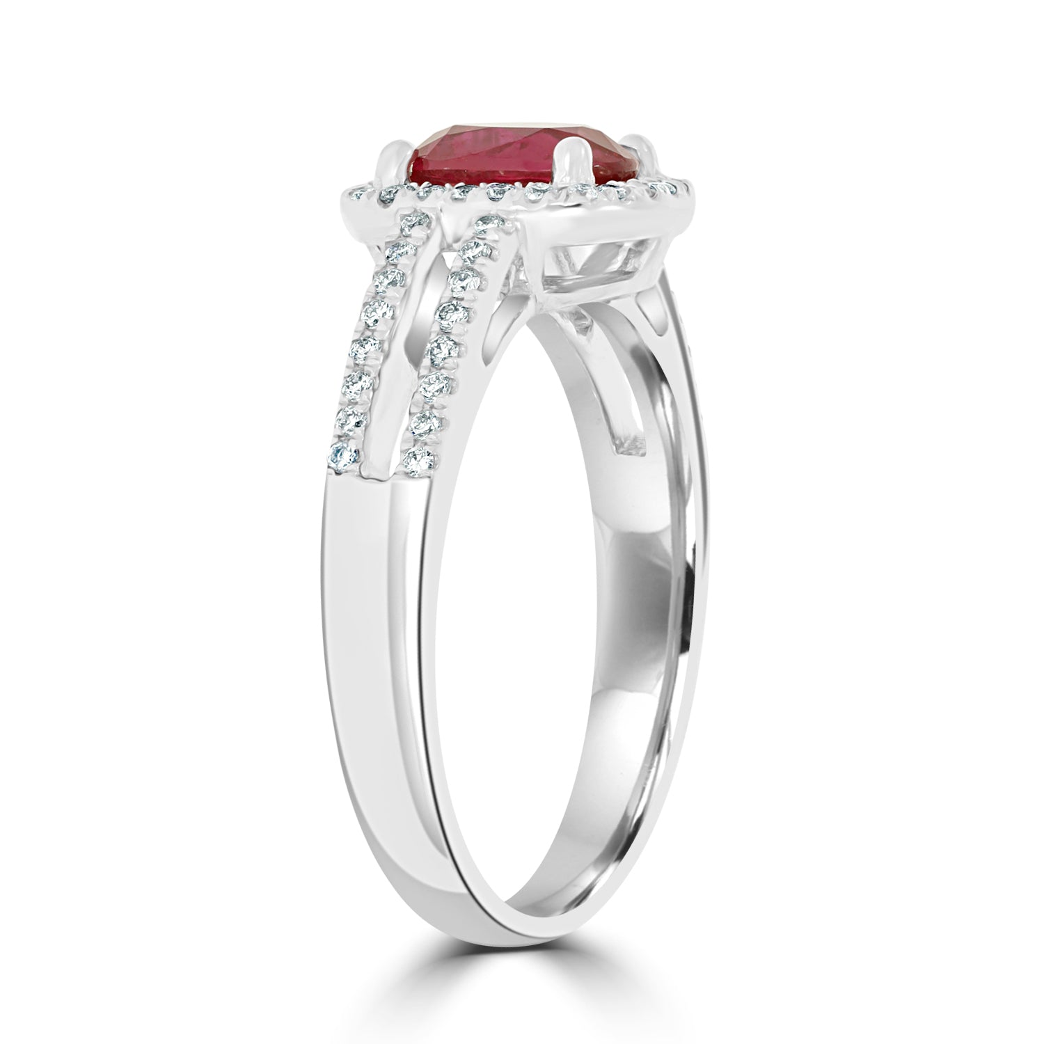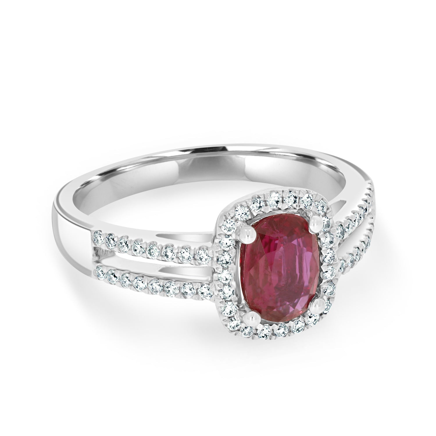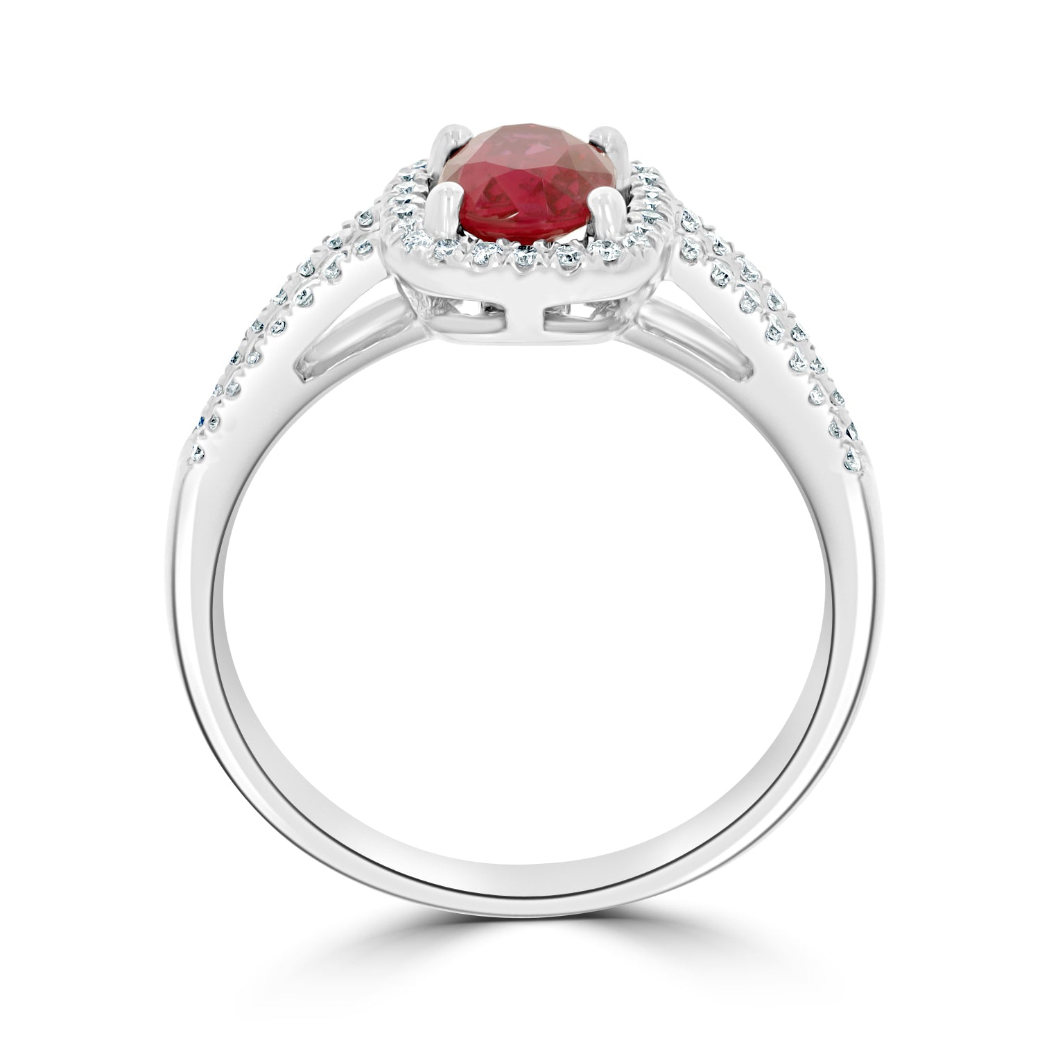Designed With 18K White Gold, The Endless Glow Of This Gorgeous Ring Comes From The Spectacular Oval Cut Ruby At The Center. Bordered By Splendid Round Cut Diamonds, Its Dazzling Finish Is Truly Hard To Miss.