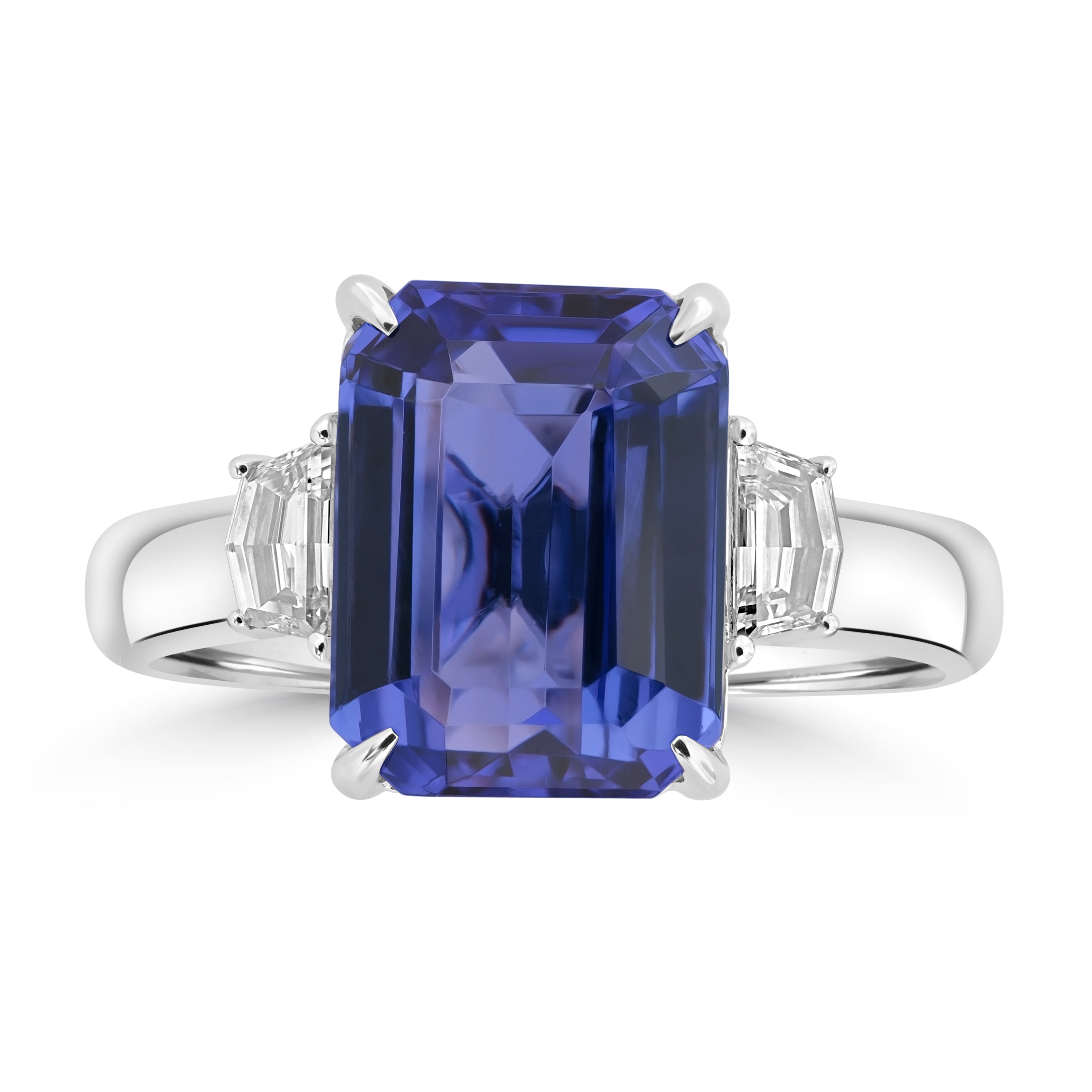 Designed With A Radiant Emerald Cut Tanzanite, This Dazzling Ring Spreads An Endless Brilliance Owing To The Specialty Cadillac Cut Diamonds Around And Is Crafted Of 18k White Gold For A Perfect Finish.