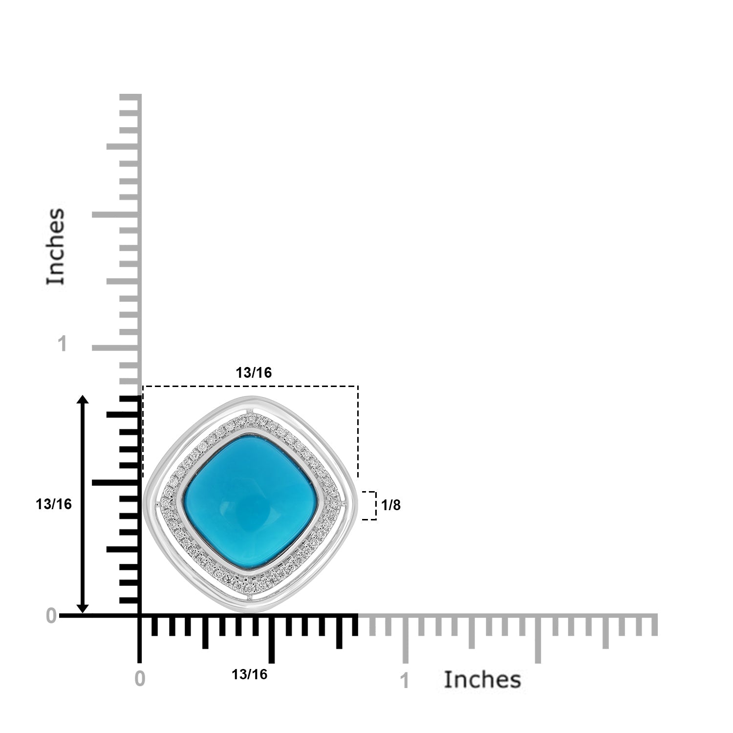 Elevate your style with this exquisite 18K white gold ring. Its meticulous design exudes a sense of mystique and glamour, while the cushion-cut Turquoise and round Diamonds add a touch of sophistication. Effortlessly make a statement with this finely crafted accessory.
