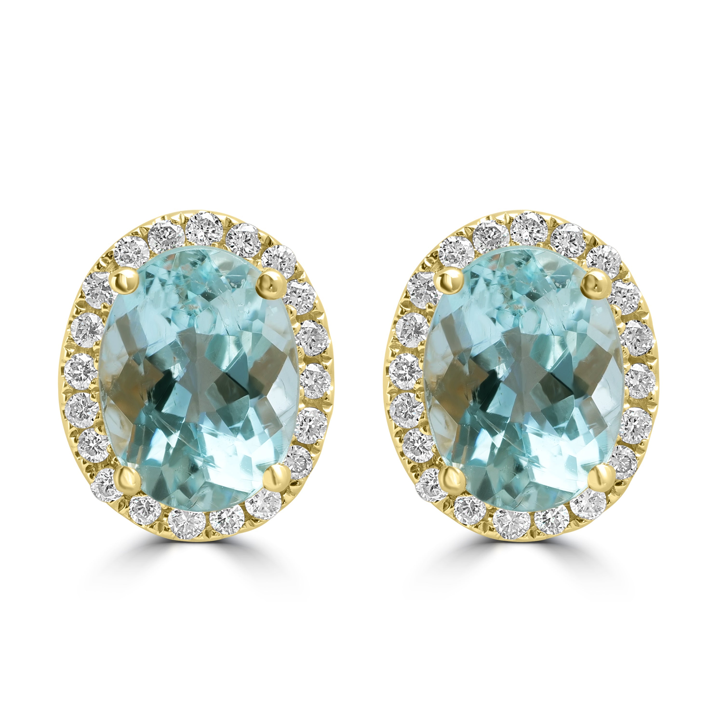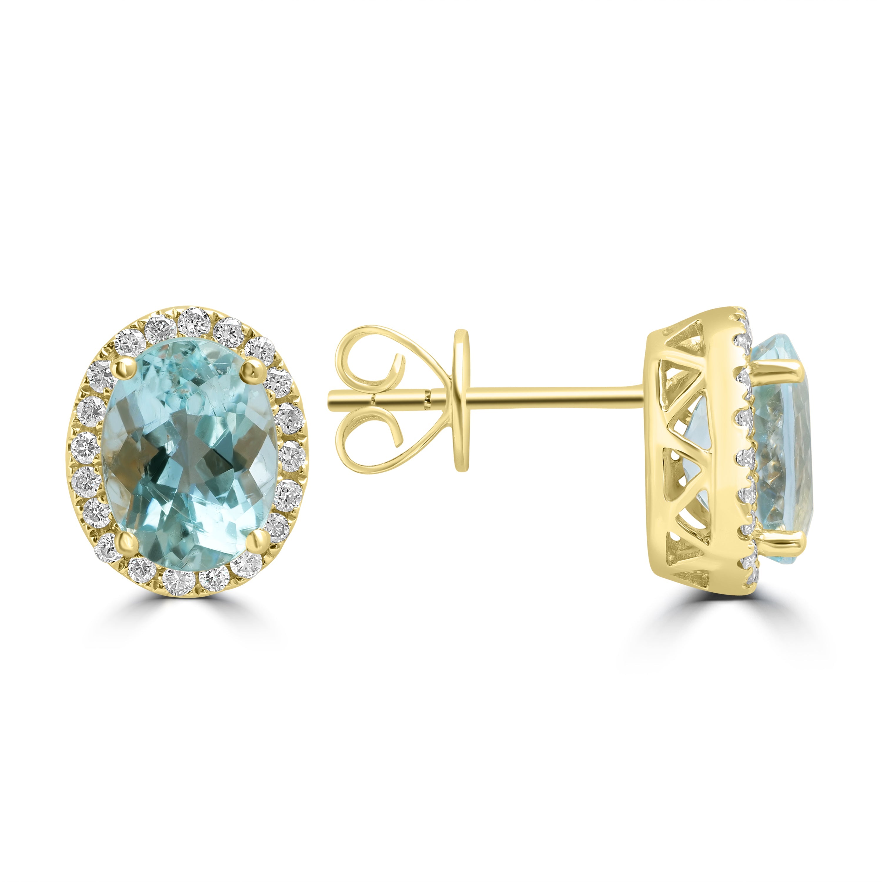 Finely crafted and sparkling, these 18k yellow gold earrings are a luxury to wear. The design showcases oval-cut Aquamarine and round Diamonds that lend sparkle and luxury to your outlook. Wear it to look gorgeously unique!