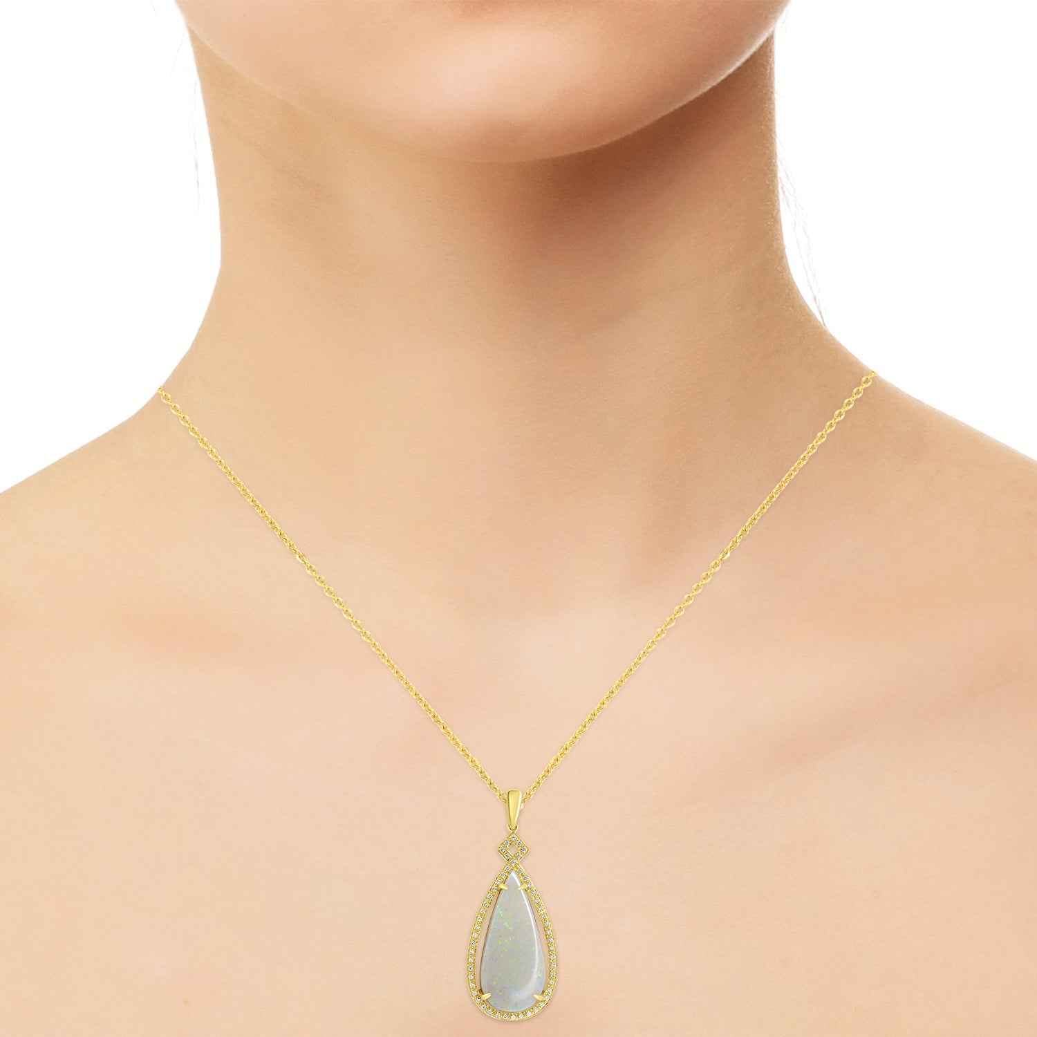 With timeless workmanship and captivating radiance, this pendant lends a sparkling finish to your outfit. Exquisitely designed of 18K yellow gold and set with pear-cut Opal and round Diamonds, this stylish pendant lends a classy and sparkly makeover to your outlook.
