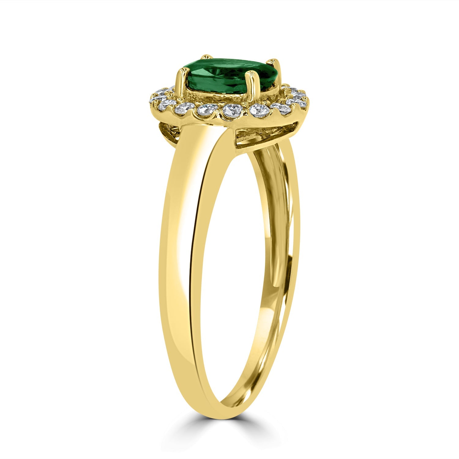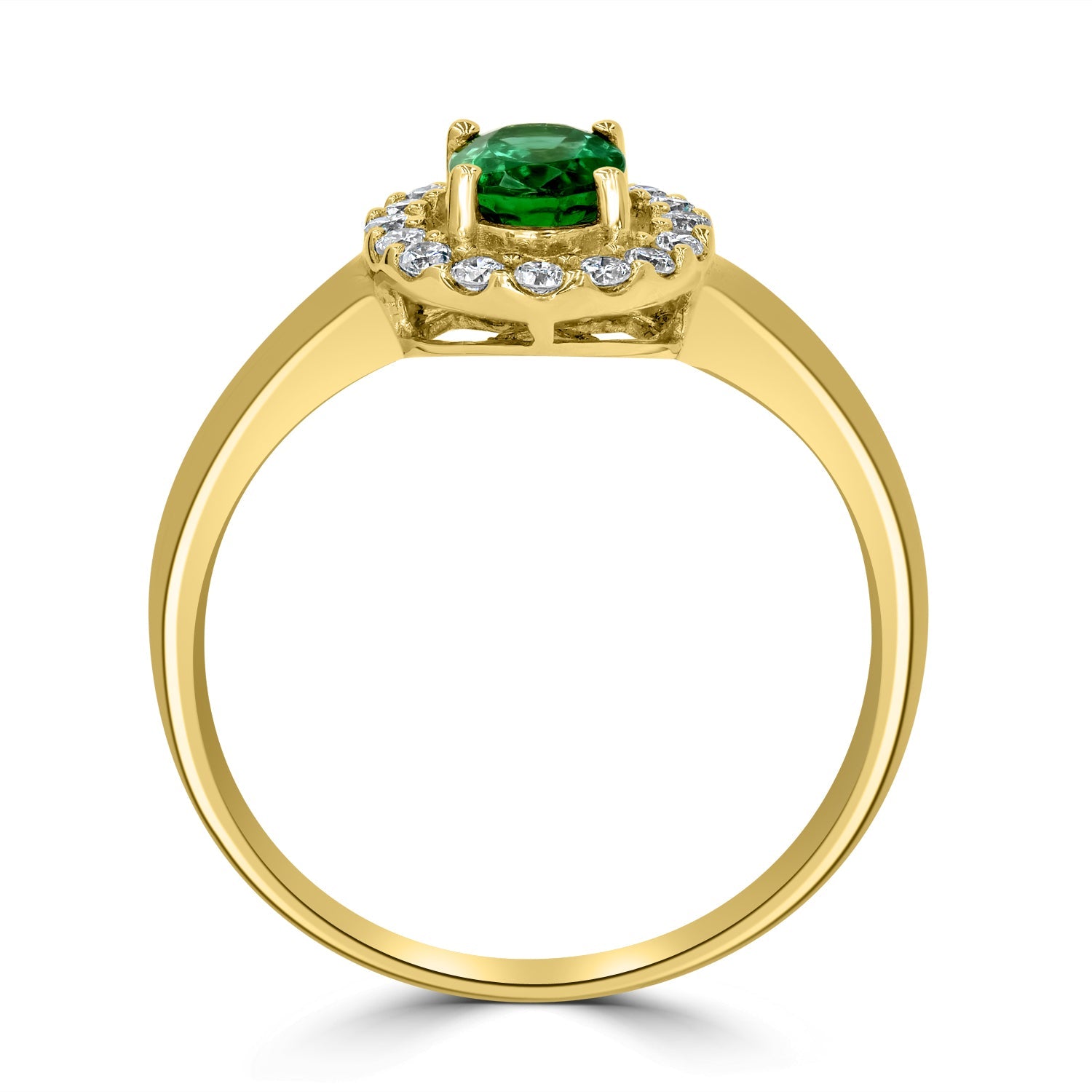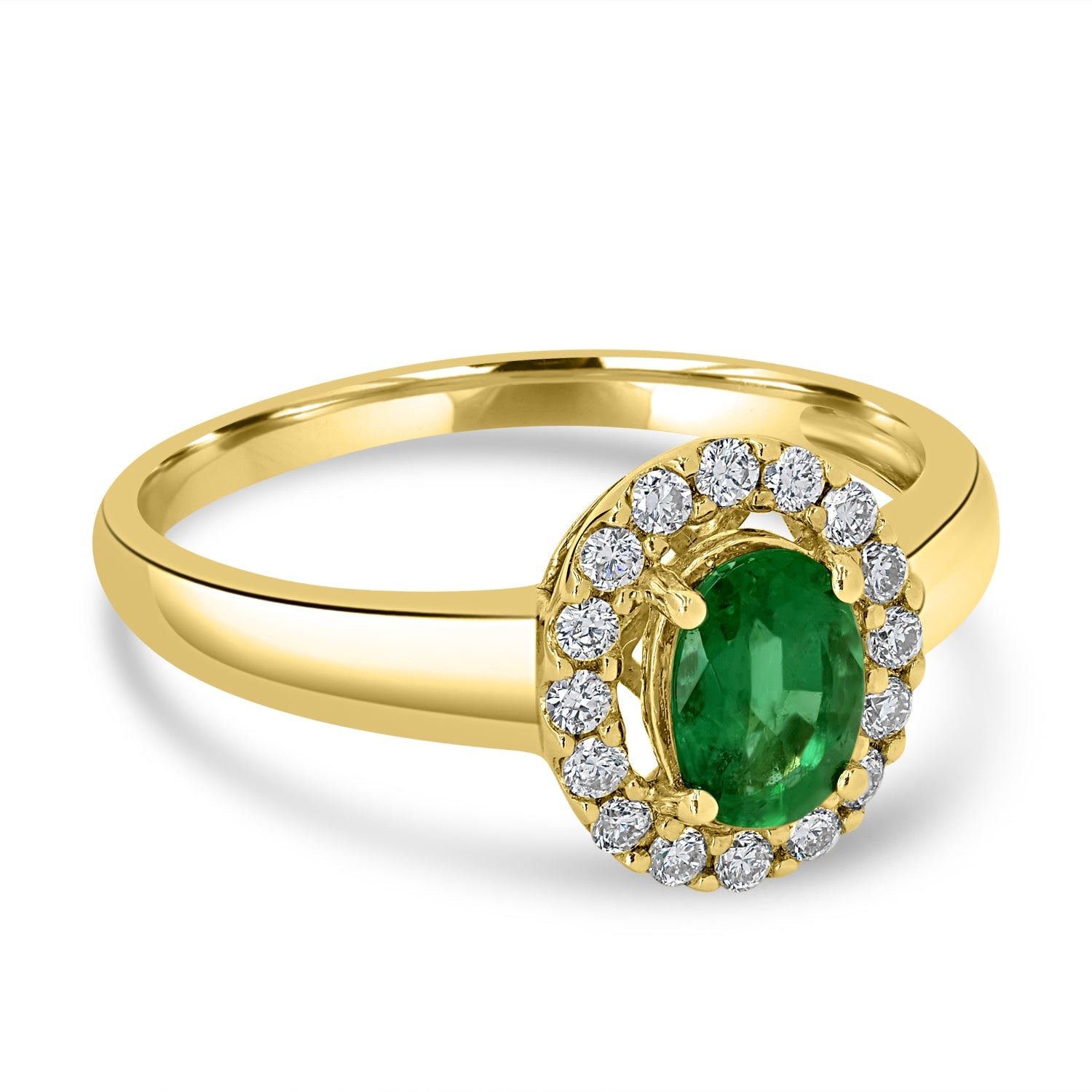 This striking ring is expertly crafted with 18k yellow gold and set with an oval-cut Emerald and round Diamonds.