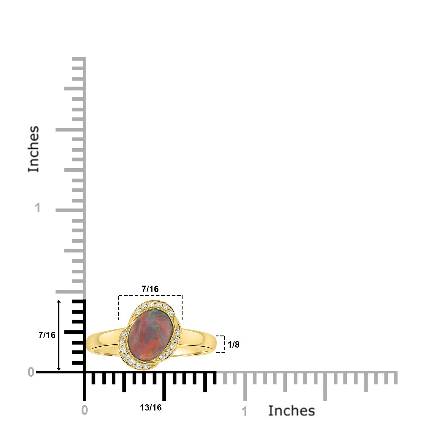 Exuding timeless elegance, this 18K yellow gold ring is a luxurious addition to your collection. Crafted with intricate detail, it showcases a high-class design. The stunning oval-cut black Opal and round Diamonds impart a mesmerizing sparkle. Embrace timeless craftsmanship and elevate your style.