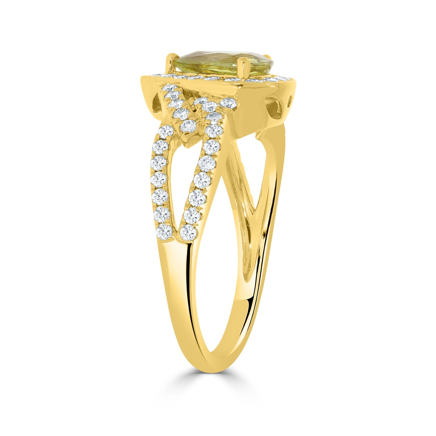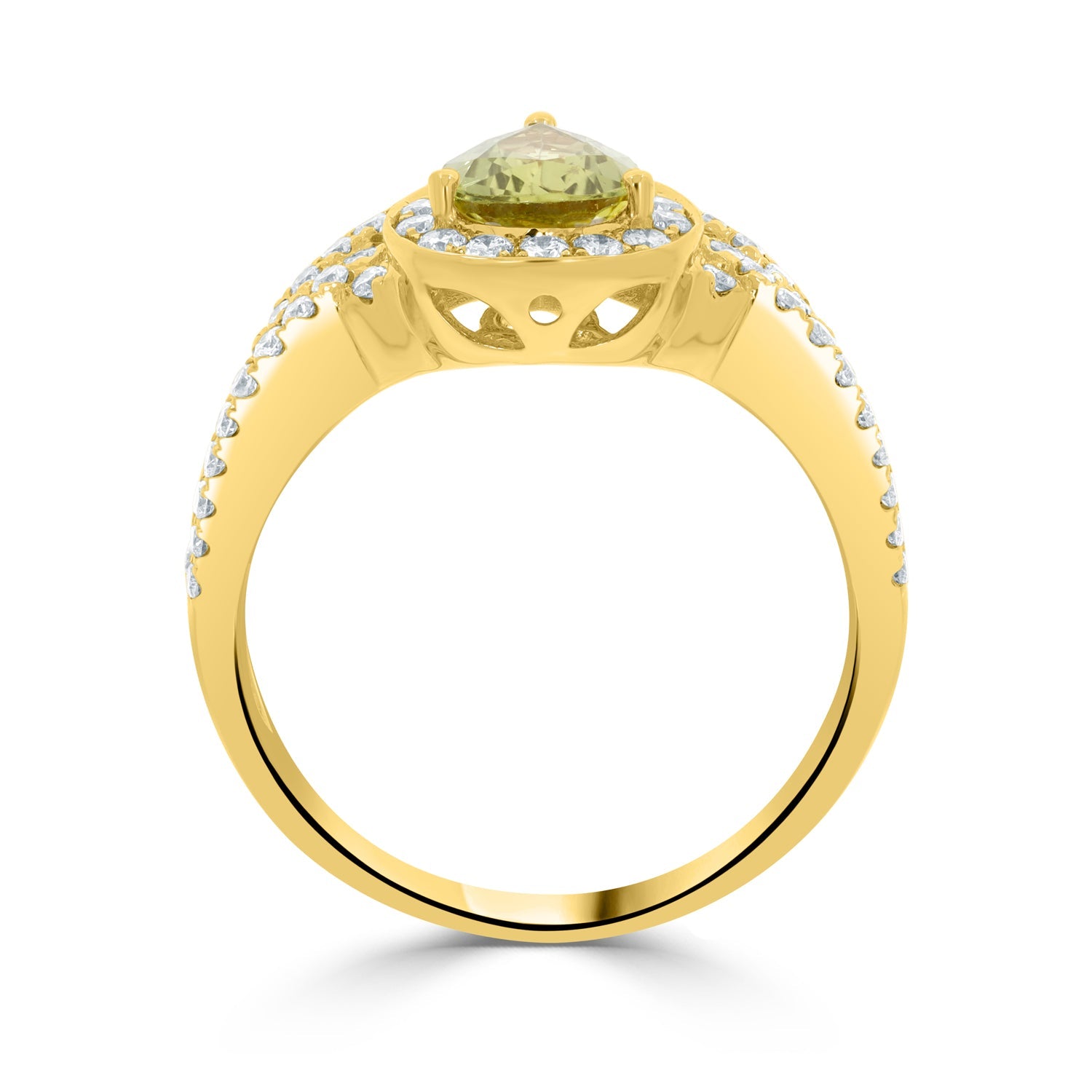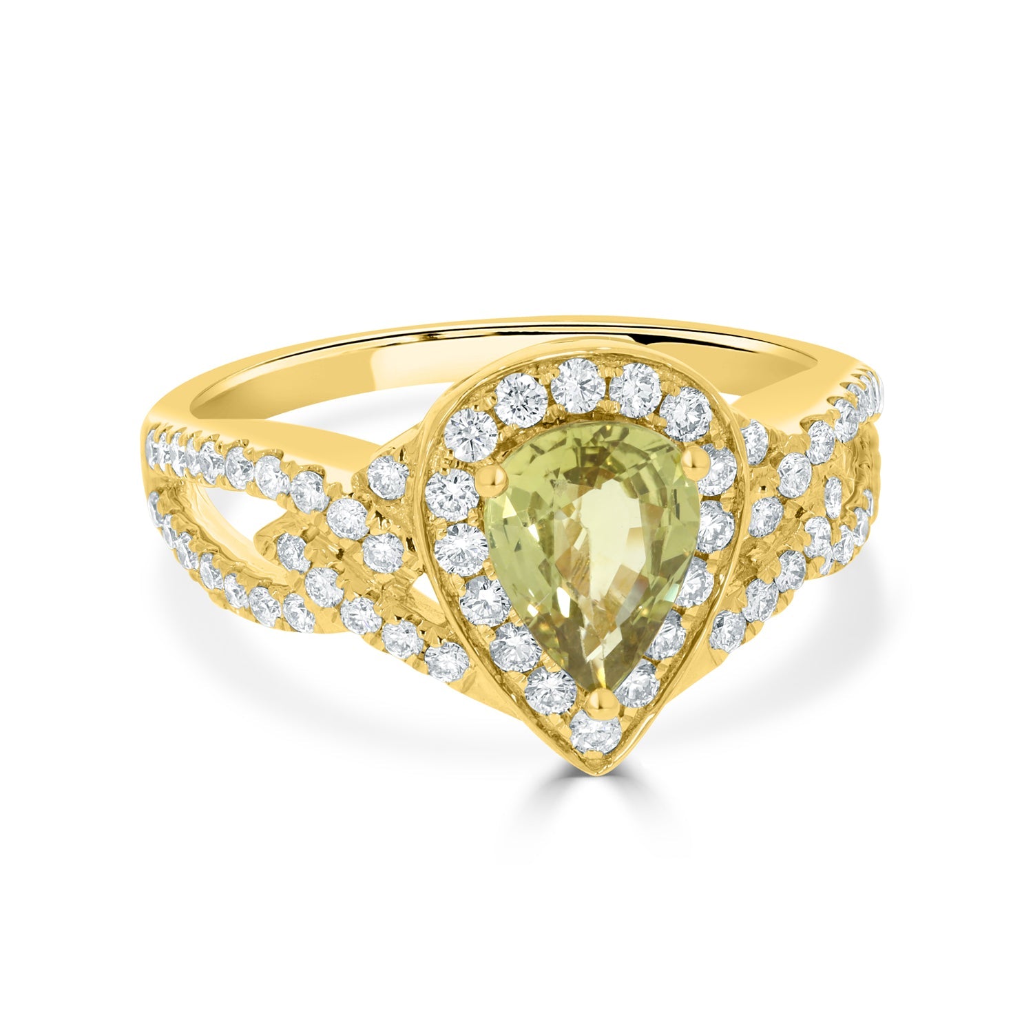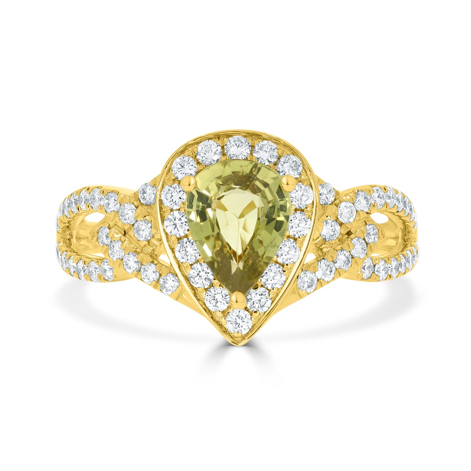 The Stylish Ring Is Crafted With 18k Yellow Gold And Set With A Pear Cut No Heat Certified Sapphire And Round Diamonds That Add A Special Luxury Touch To Any Attire.
