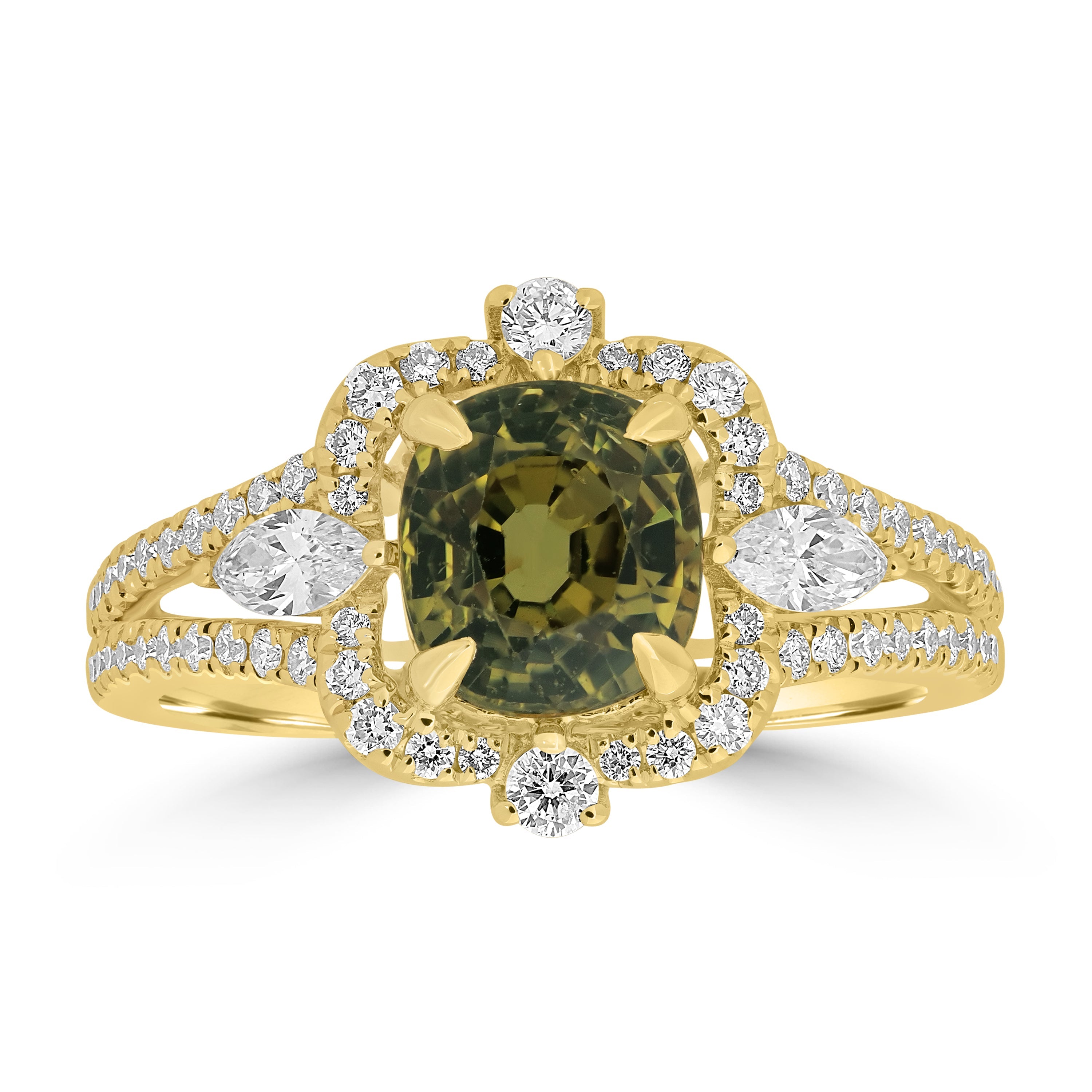Crafted from 18k yellow gold, this sparkling ring combines timeless elegance with a unique high-class design featuring oval-cut Sapphire and round Diamonds. An exquisite accessory for any occasion.