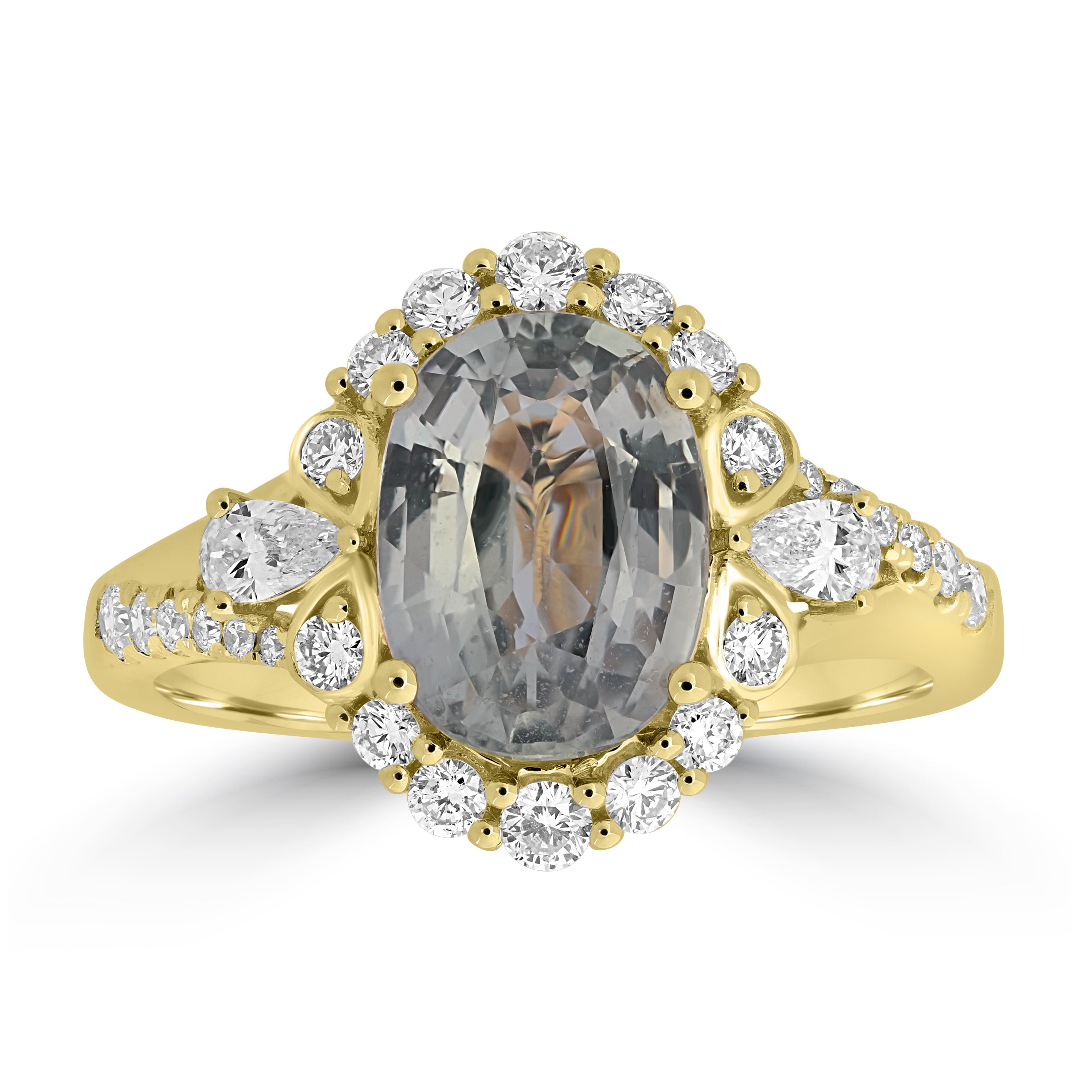 Elevate your style with this 18K yellow gold ring. Its world-class design featuring the oval-cut Sapphire and round Diamonds exudes timeless luxury and craftsmanship, adding a touch of elegance to your ensemble.