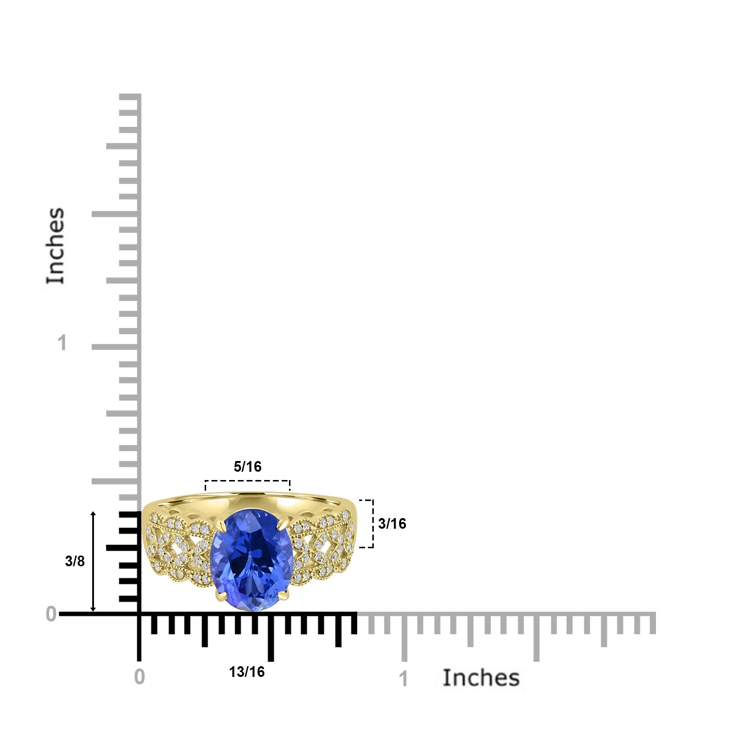 With a stylish design that is crafted of 18K yellow gold, this ring goes well with classic and contemporary outfits. The oval-cut Tanzanite and round Diamonds that sparkle makes it look stunning. Wear it to look stylish and elegant!