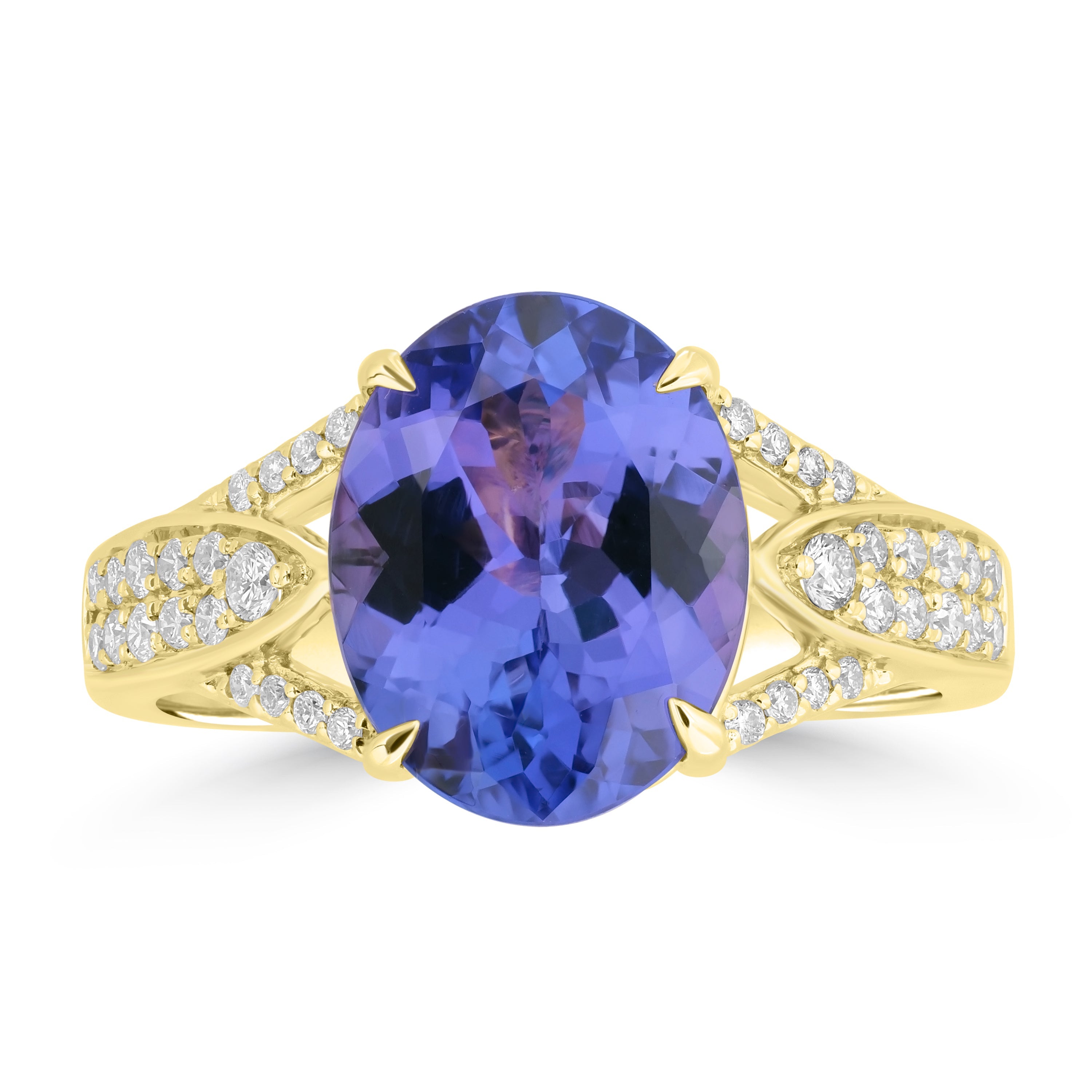 An alluring 18K yellow gold ring that is the true definition of luxury and adds a touch of shine to your overall look, this fashionable accessory has oval-cut Tanzanite and round Diamond embellishment. Add style to your personality!