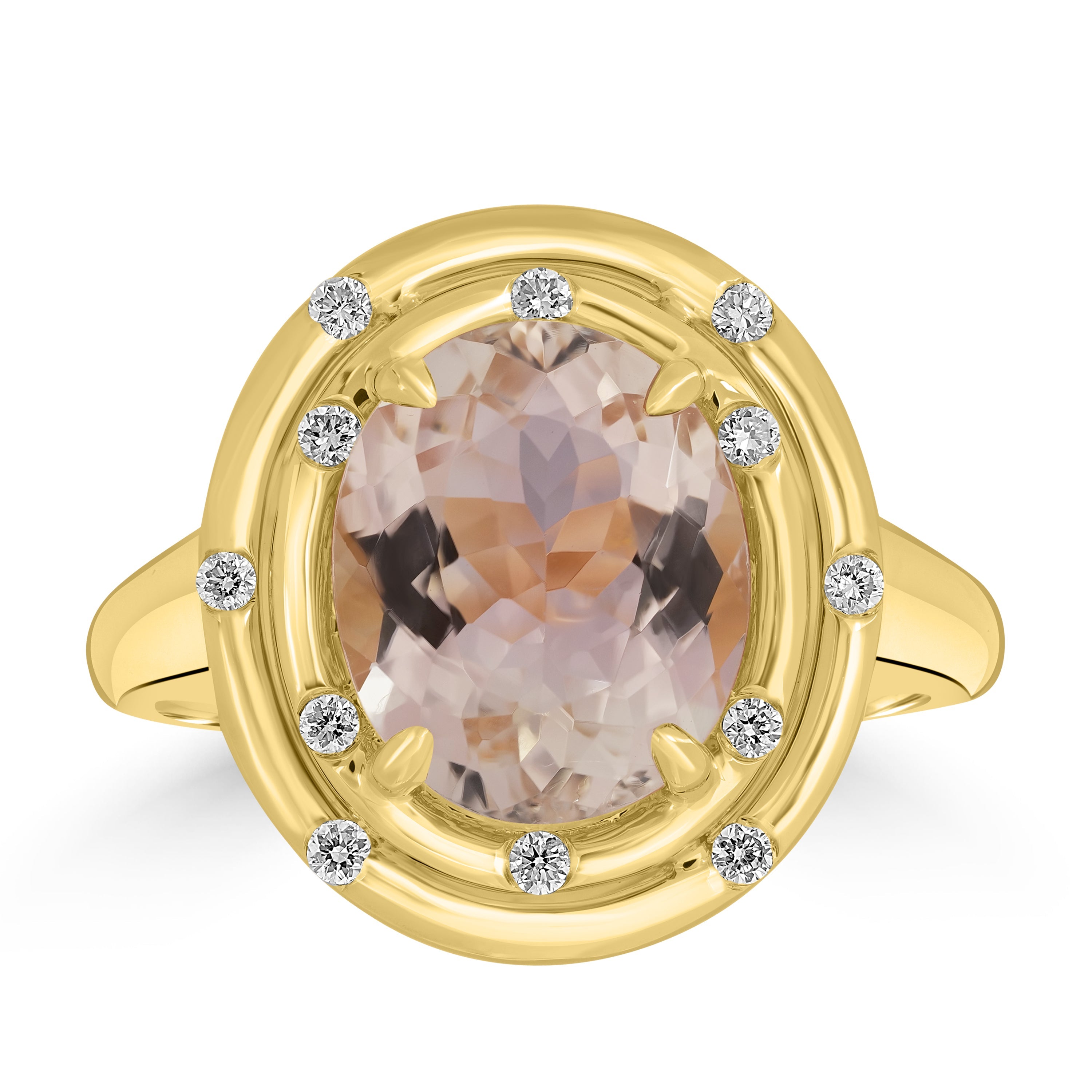 This enchanting 18K yellow gold ring showcases timeless elegance and is perfect for parties and special events. The glorious oval-cut Tourmaline and round Diamonds add drama and uniqueness, making it a captivating choice.