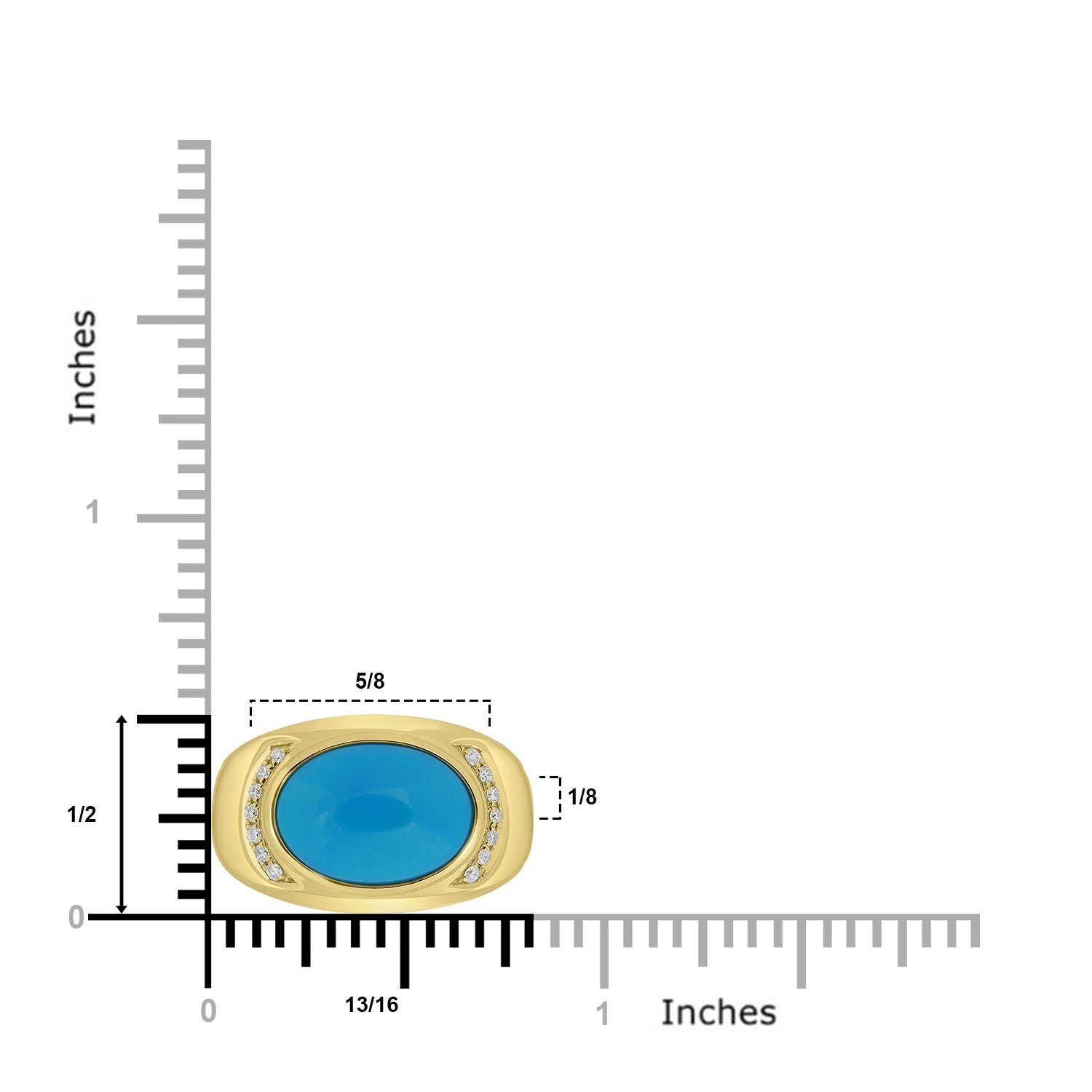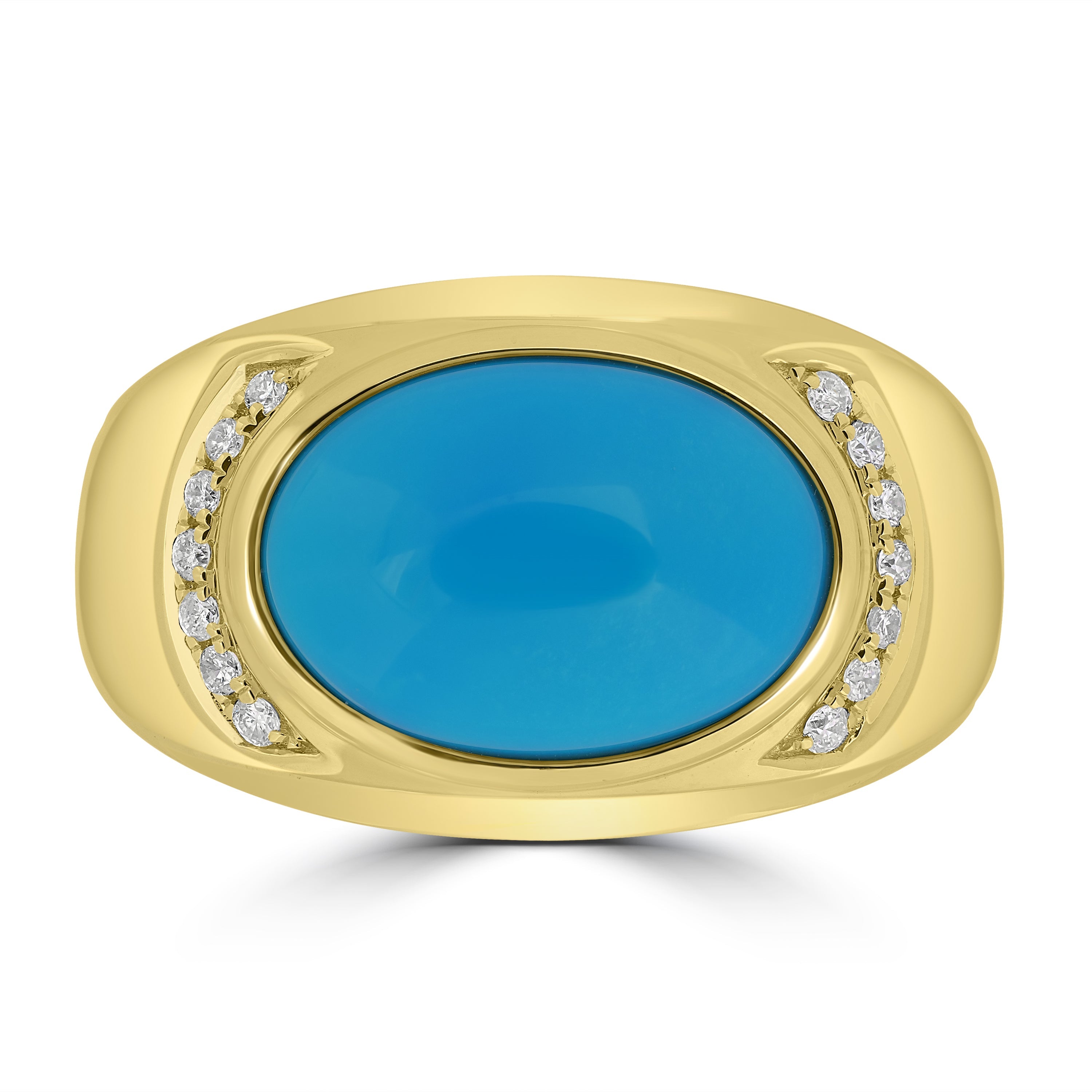 Exuding mystique and glamour, this luxurious 18K yellow gold ring looks fabulous with oval-cut Turquoise and round Diamonds. Ideal for any occasion, this high-class masterpiece complements every ensemble effortlessly.