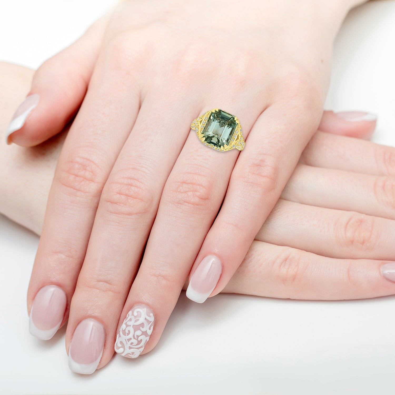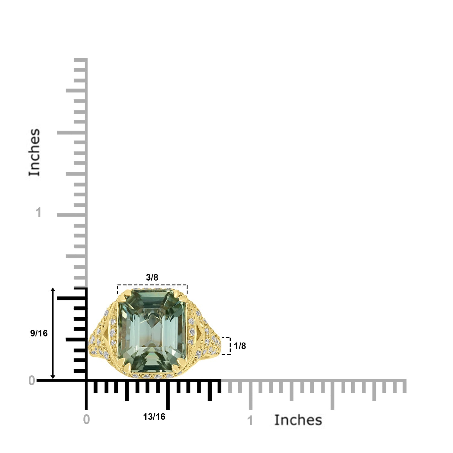 This ring is luxurious and has been crafted with 18K yellow gold to make your outfit a charming ensemble. The design showcases emerald-cut Tourmaline and round Diamonds. Wear it to add radiant beauty to your overall look!