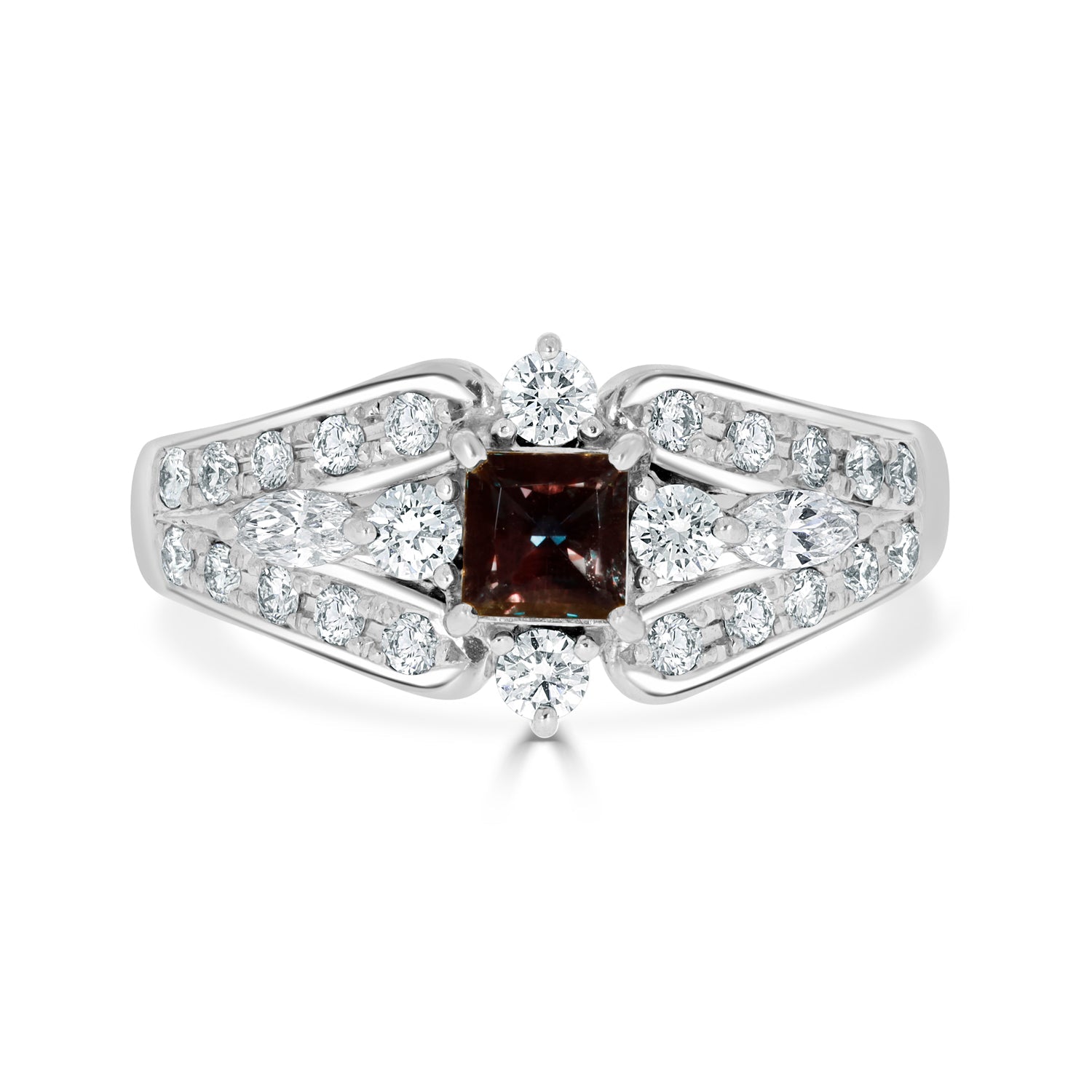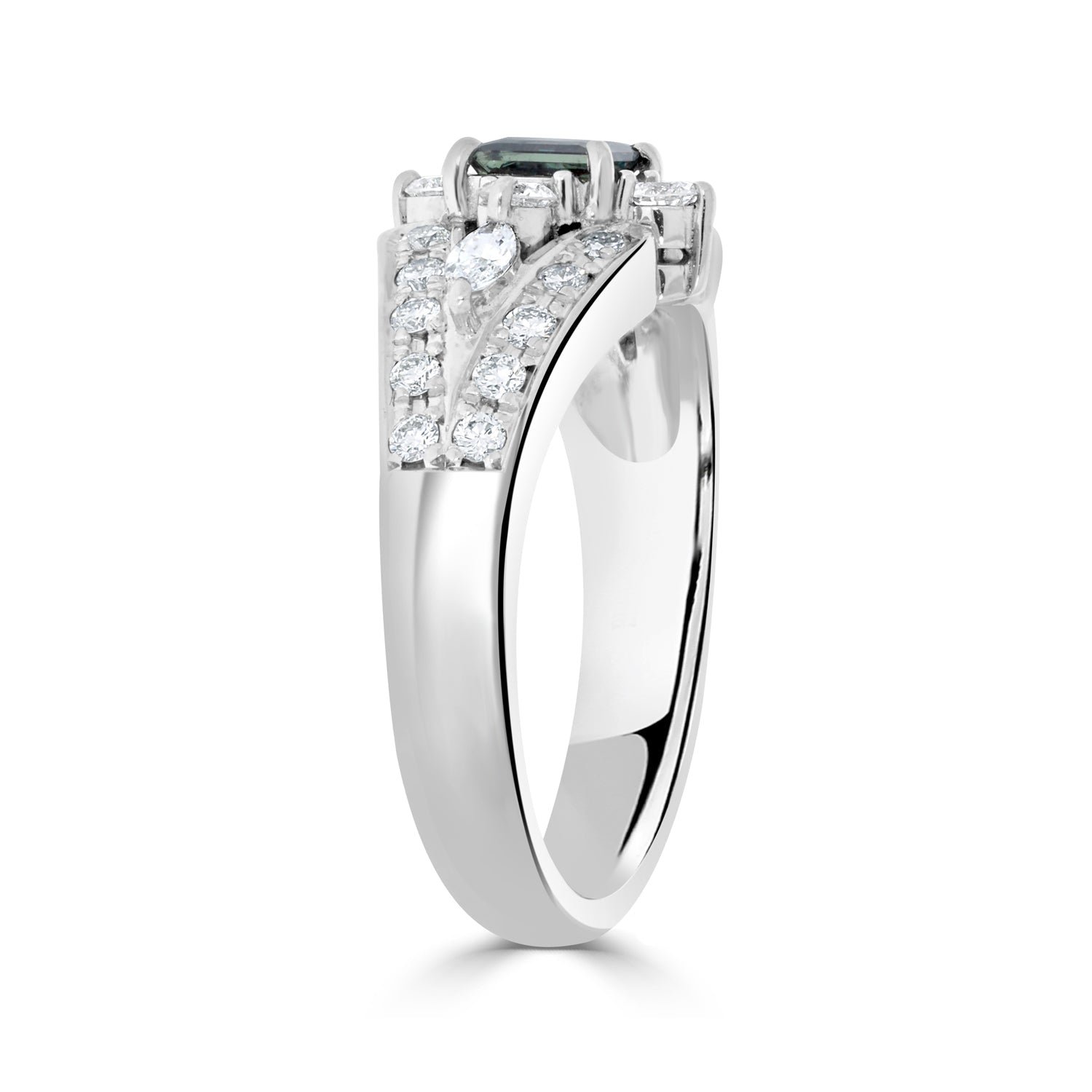 The Stylish Design That Is Crafted Of Pt900 Platinum And Embellished With Princess-cut Alexandrite Along With 26 Round Diamonds Adds A Special Touch To The Luxury Style Of The Ring. This Ring Adds A Little Sparkle To Your Look.