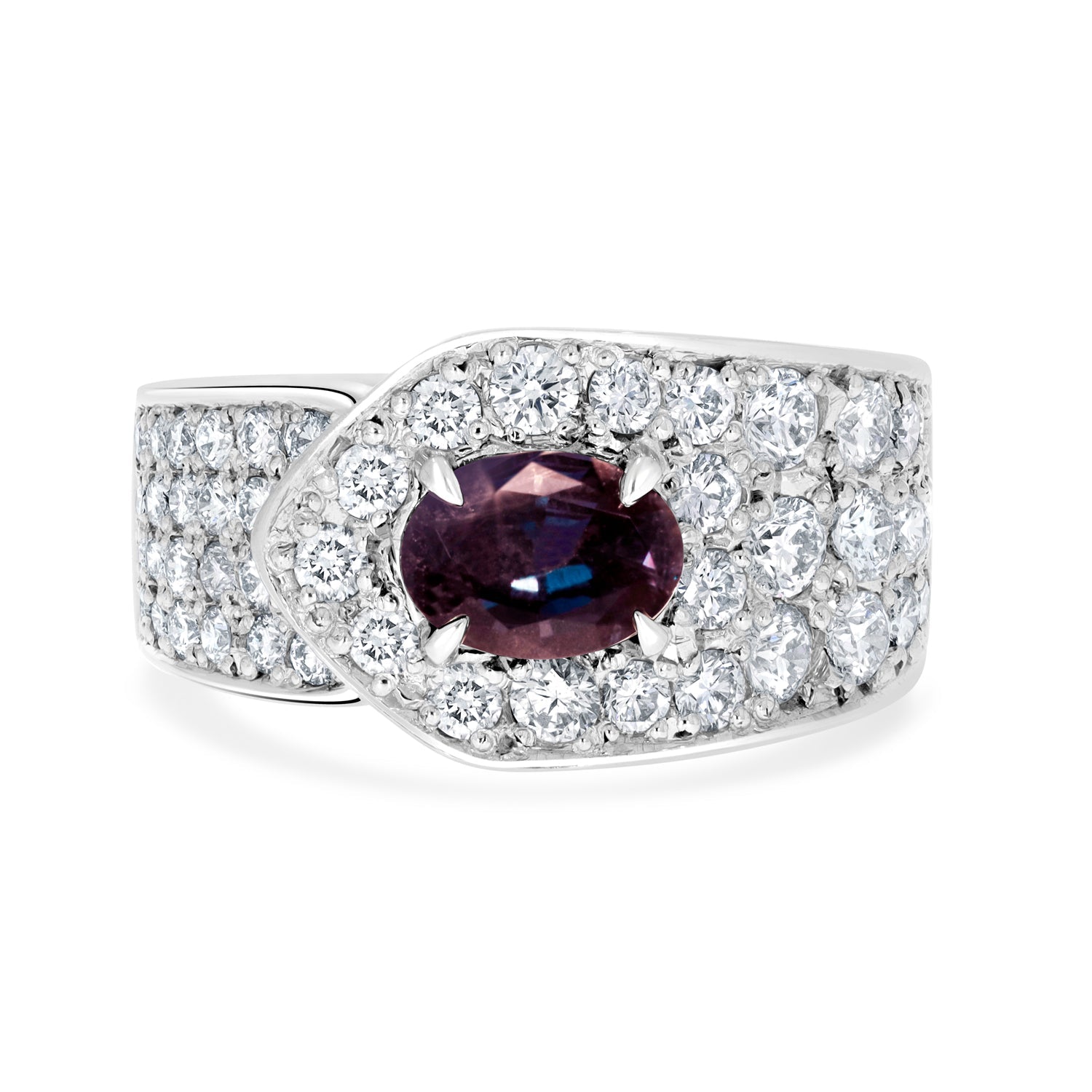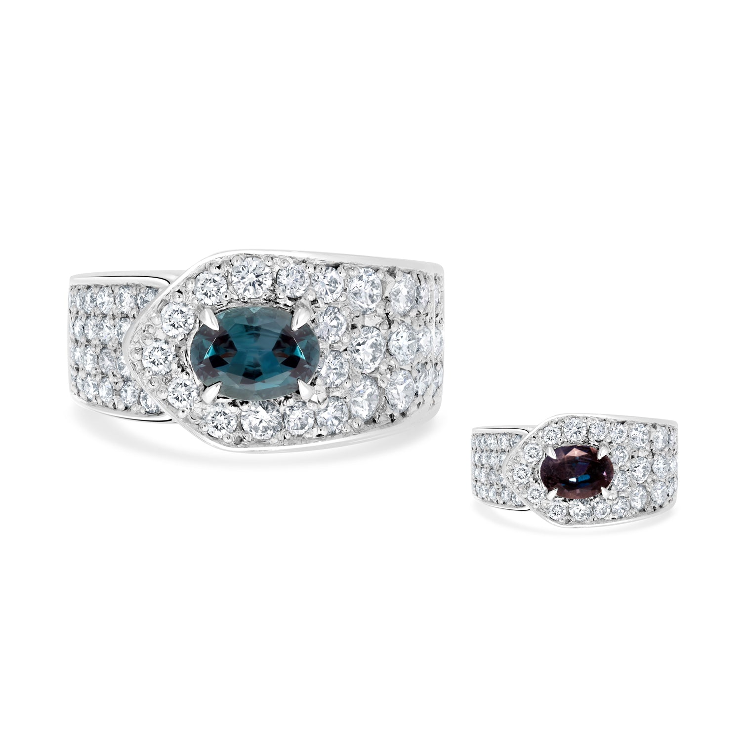 This Ring Is Widely Welcomed By Fashionistas For Its Luxurious Look. Crafted From Pt900 Platinum And Set With An Oval Cut Alexandrite And Round-cut Diamonds, This Ring Is The Best Accessory For Every Style Outfit And For Every Occasion.