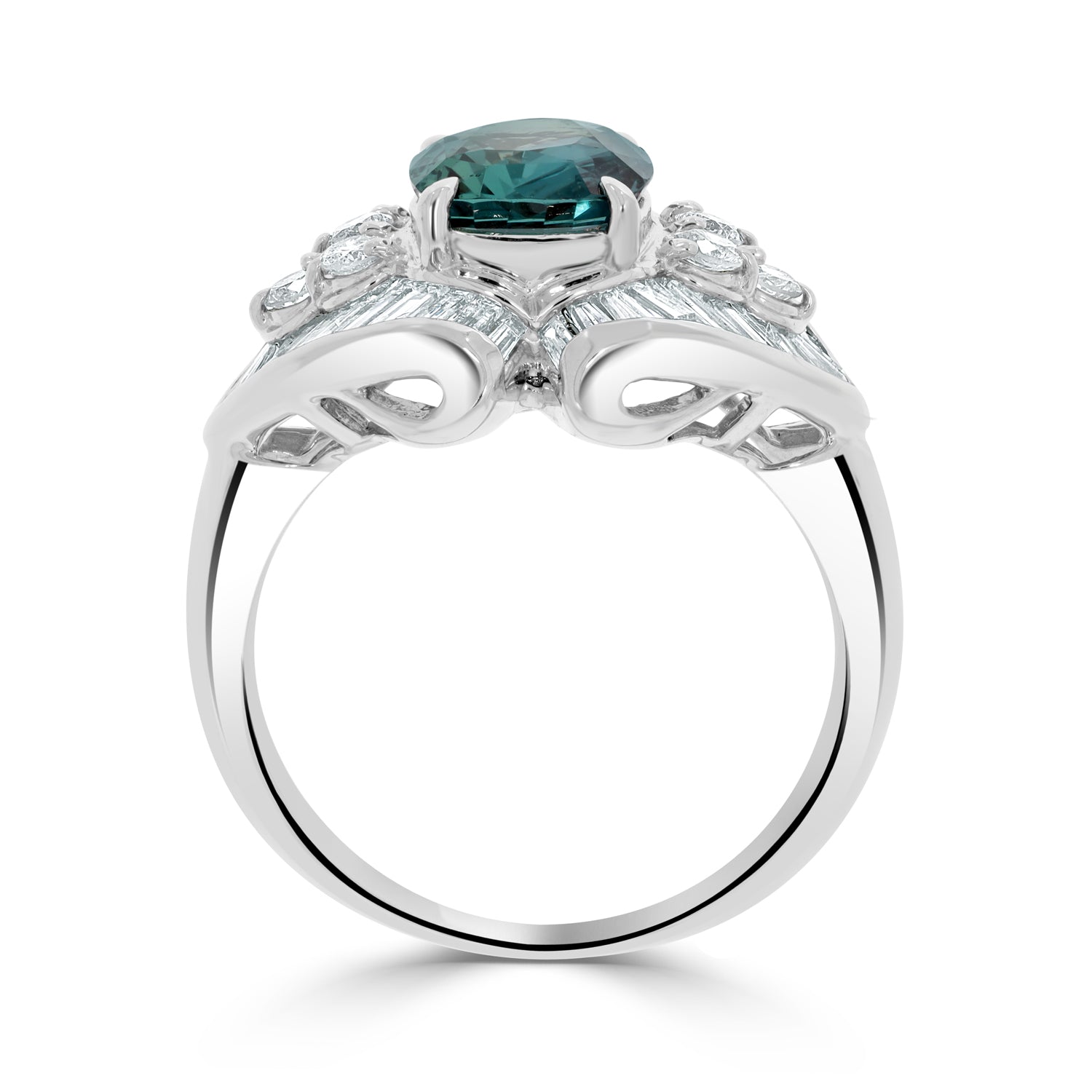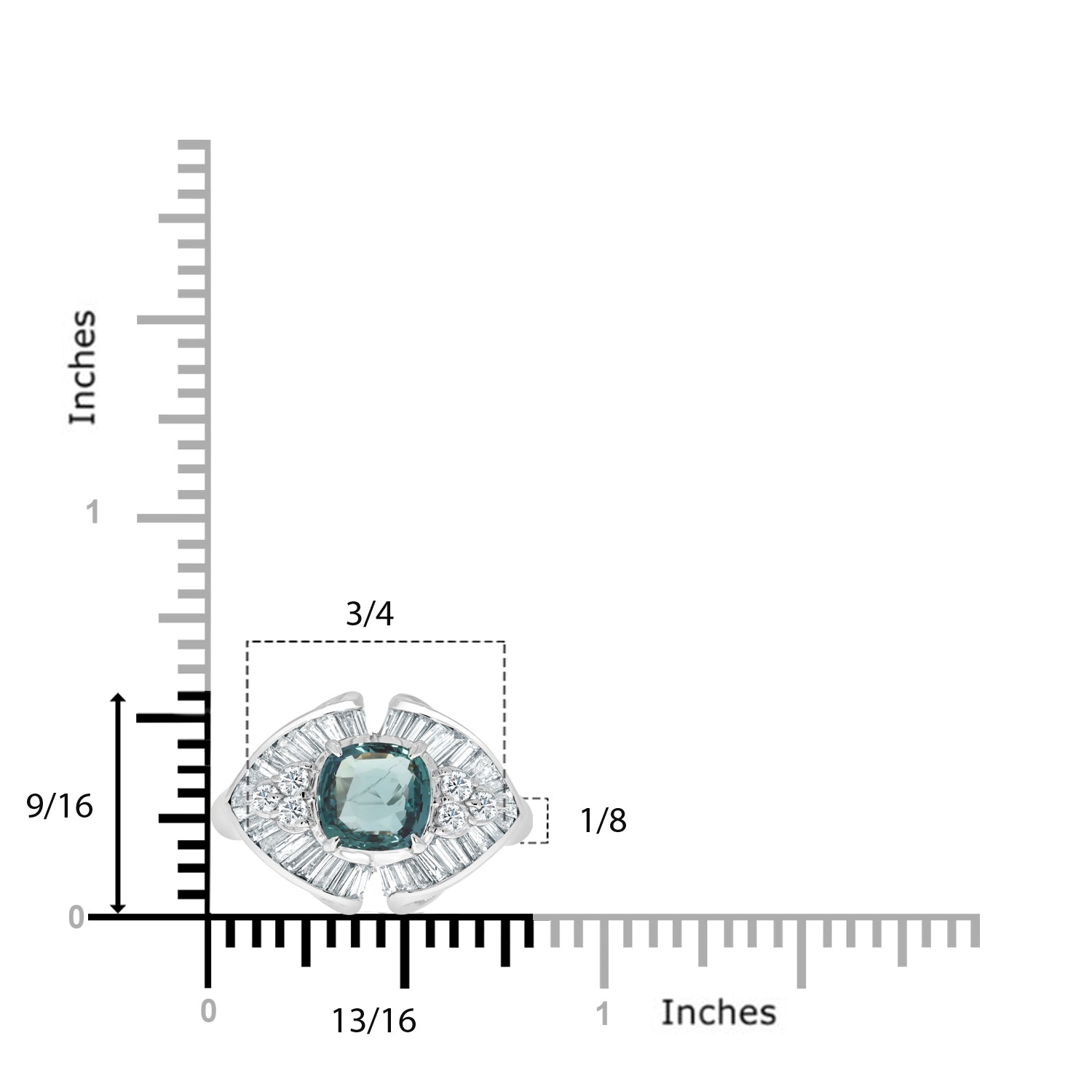 This Beautiful Ring Is Crafted From Platinum 900 Platinum And Adorned With A World-class Cushion Cut Alexandrite And Surrounded By 0.98tct Round And Baguette Cut Diamonds.