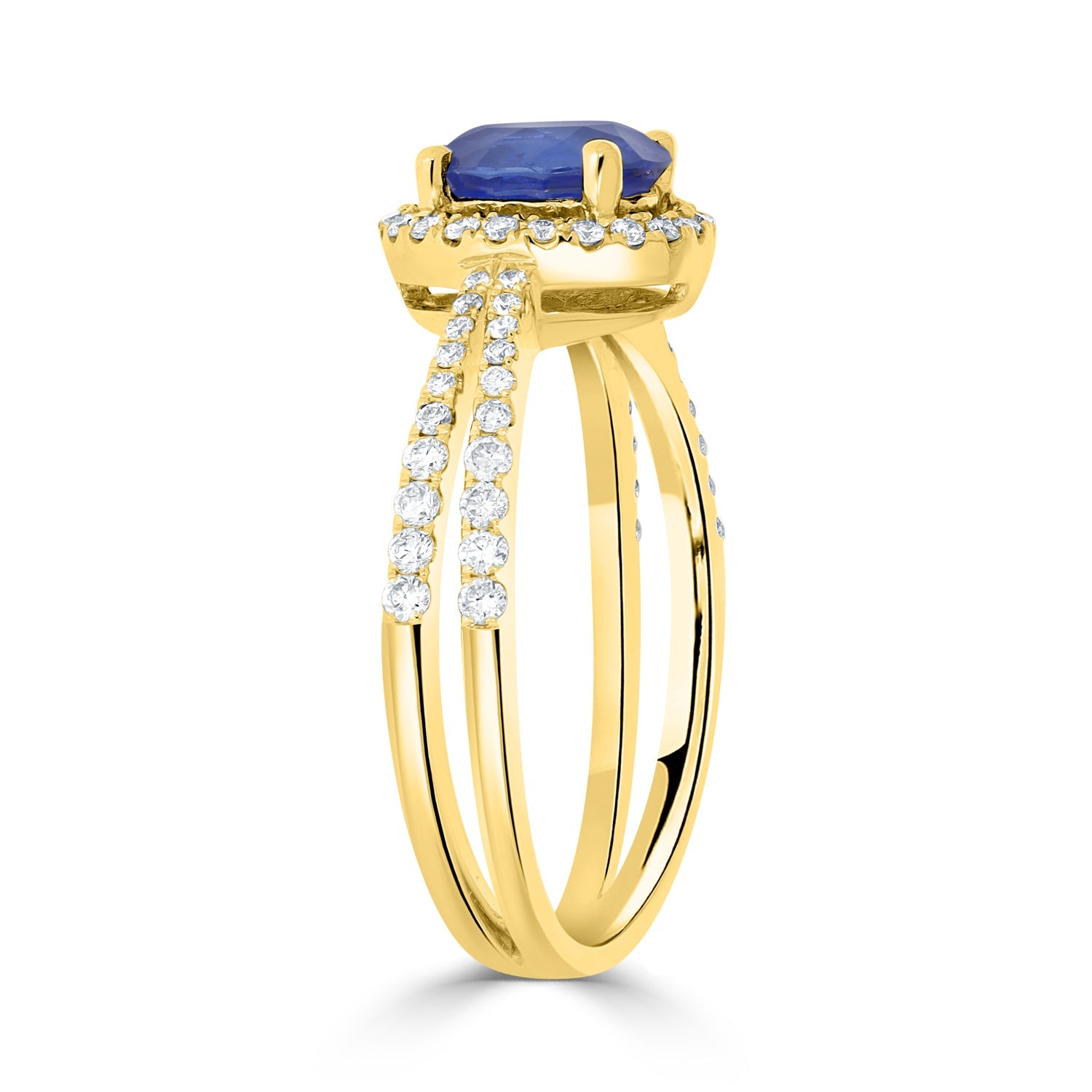Crafted with a stunning oval cut Sapphire at the center, this gorgeous ring is designed with 14K yellow gold and bordered by Diamonds that are sure to dazzle everyone around.