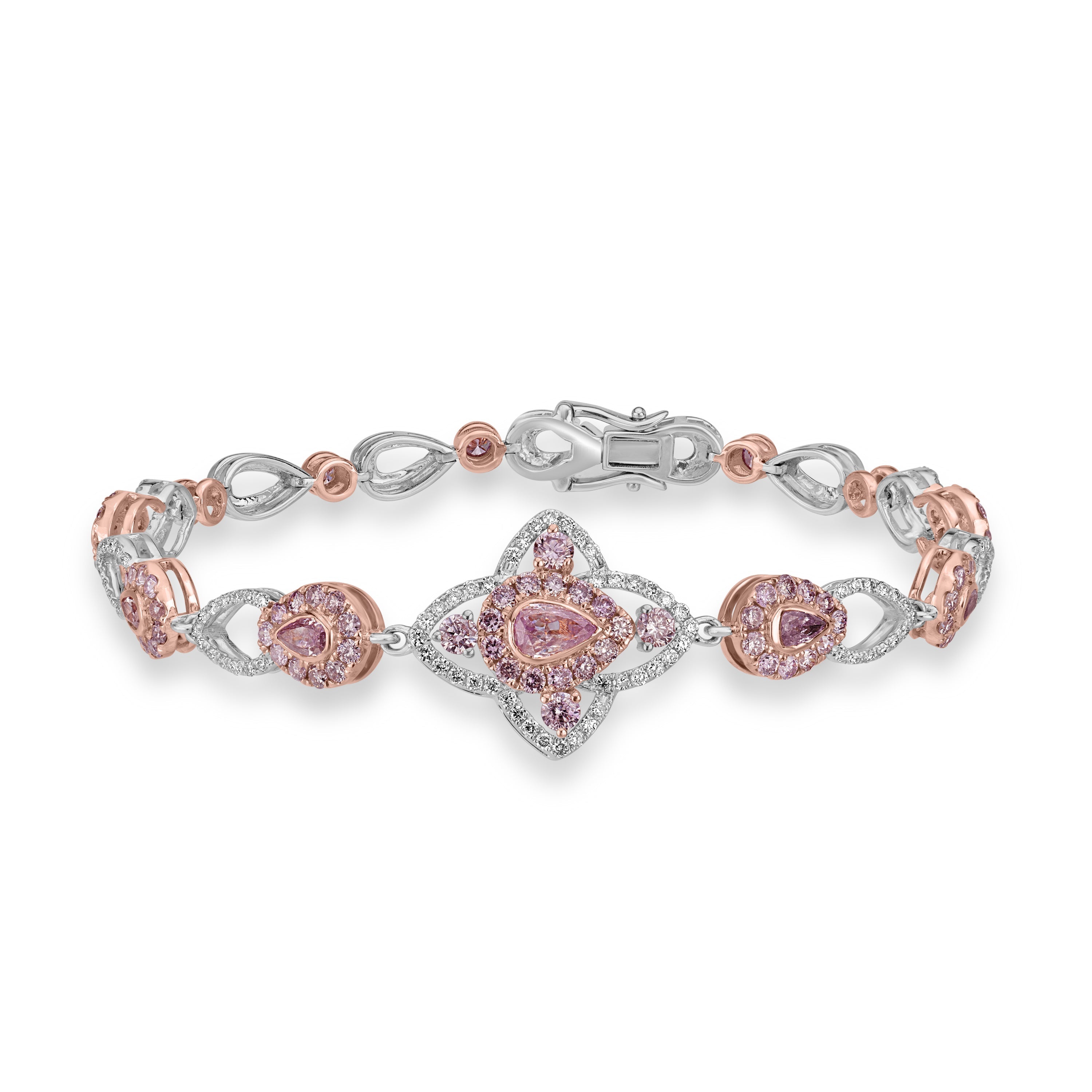 With statement-making elegance and artfulness, this bracelet is an art designed of 18K two-tone gold. This amazing bracelet has a trendy design that exudes elegance and grandeur with the shine of pear-cut Diamond and round Diamonds.