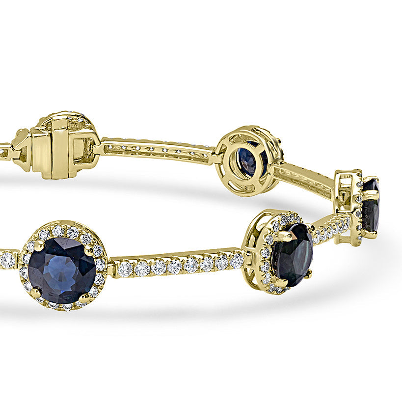 Elegance and style come together in this 14k yellow gold bracelet. Set with mix-cut Sapphire and round Diamonds.