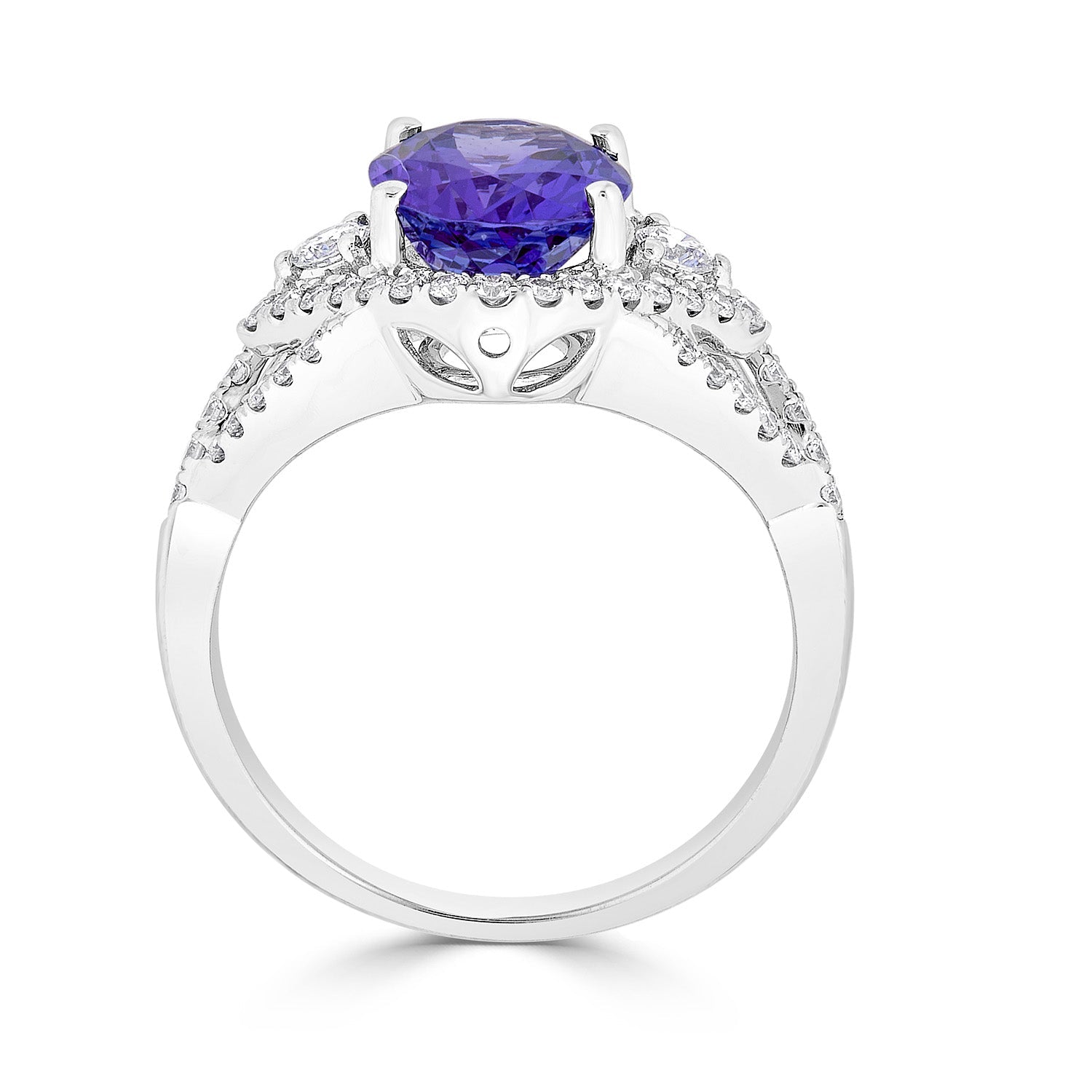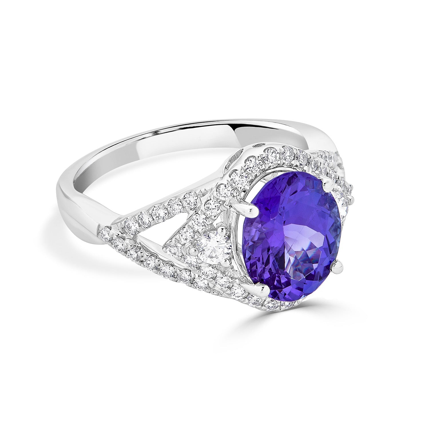 This 18k White Gold Ring Makes A Memorable Gift That Your Loved Ones Treasure Always. The Magnificent Design That Is Set With Oval-cut Tanzanite And Round Diamonds Offers An Incredible Luster And Sparkle.