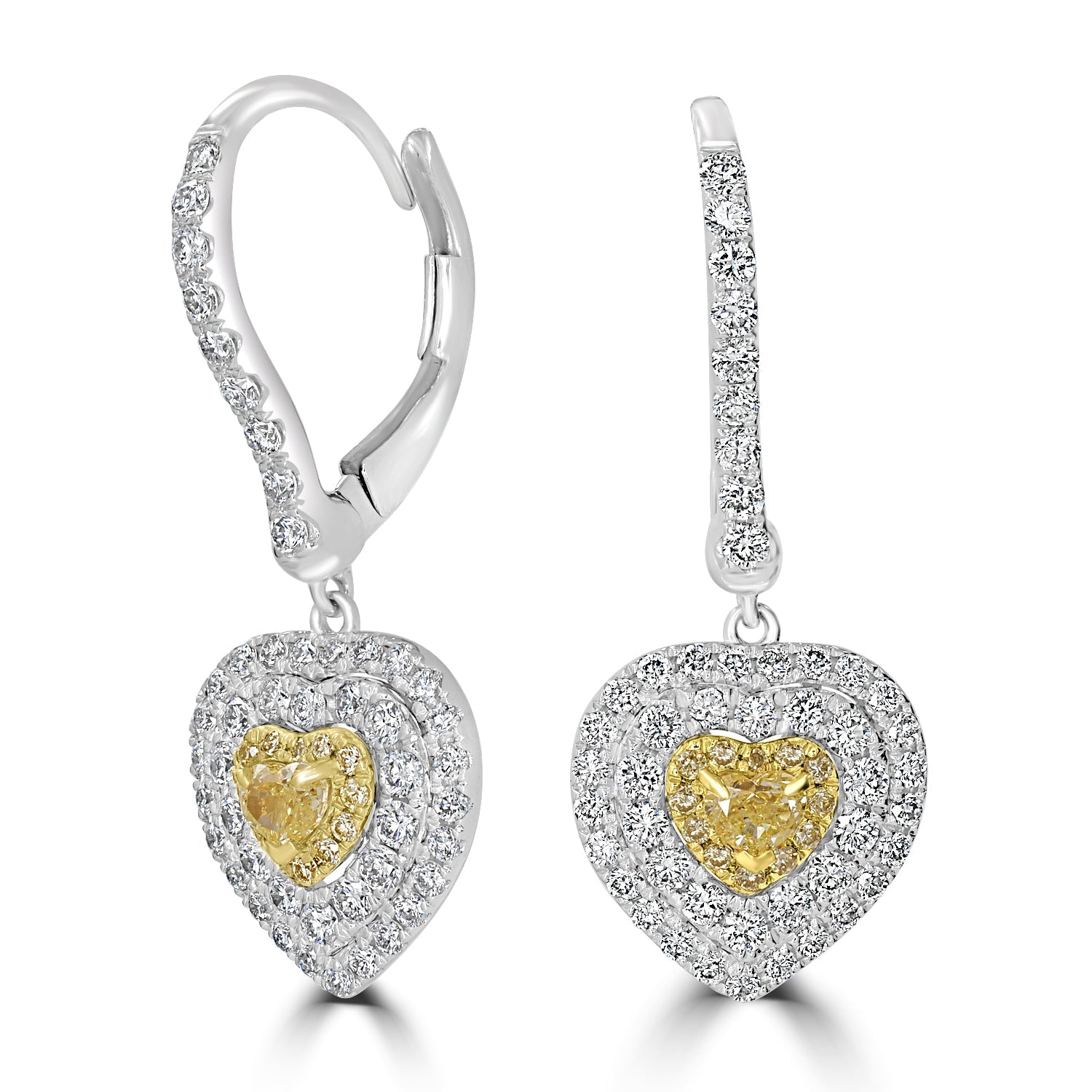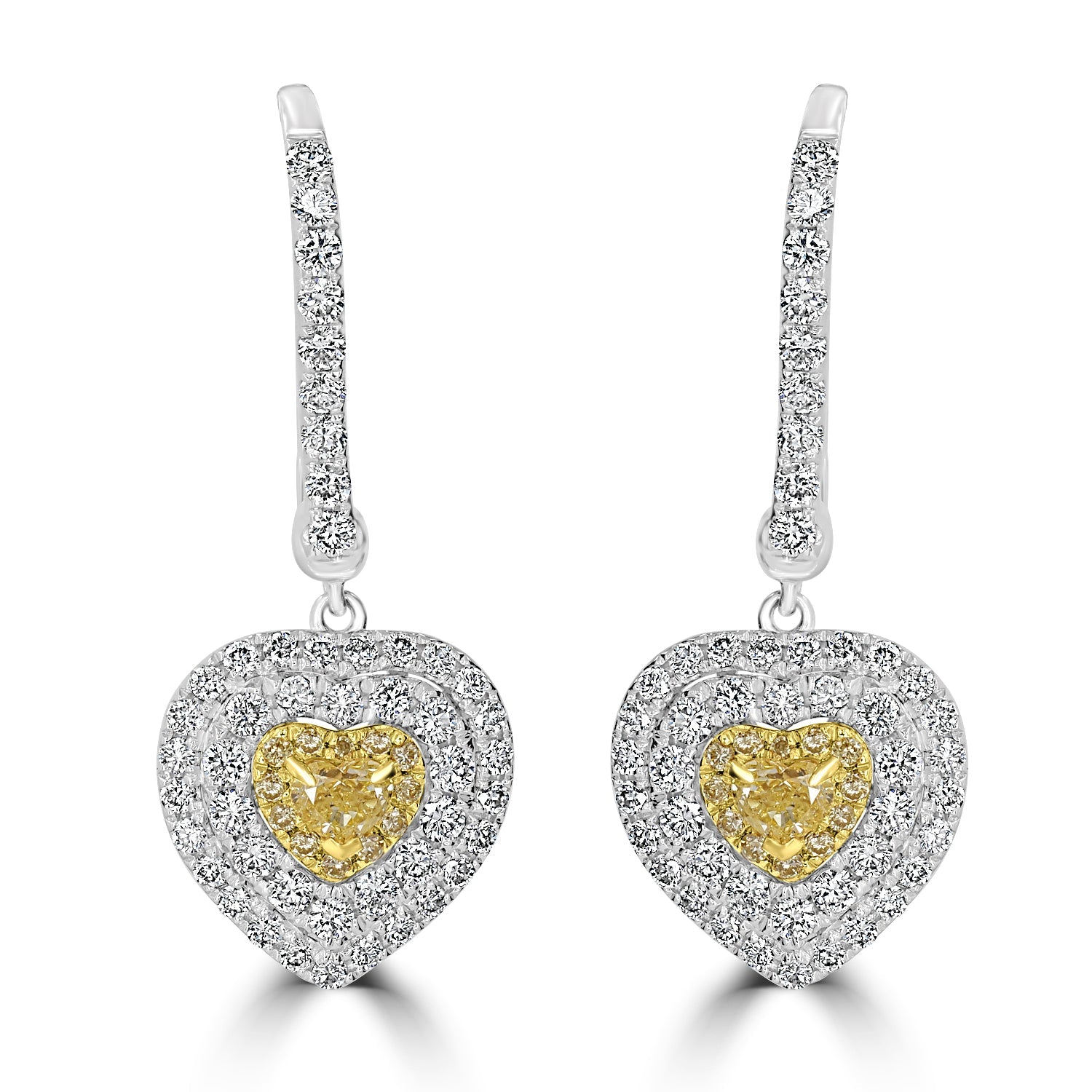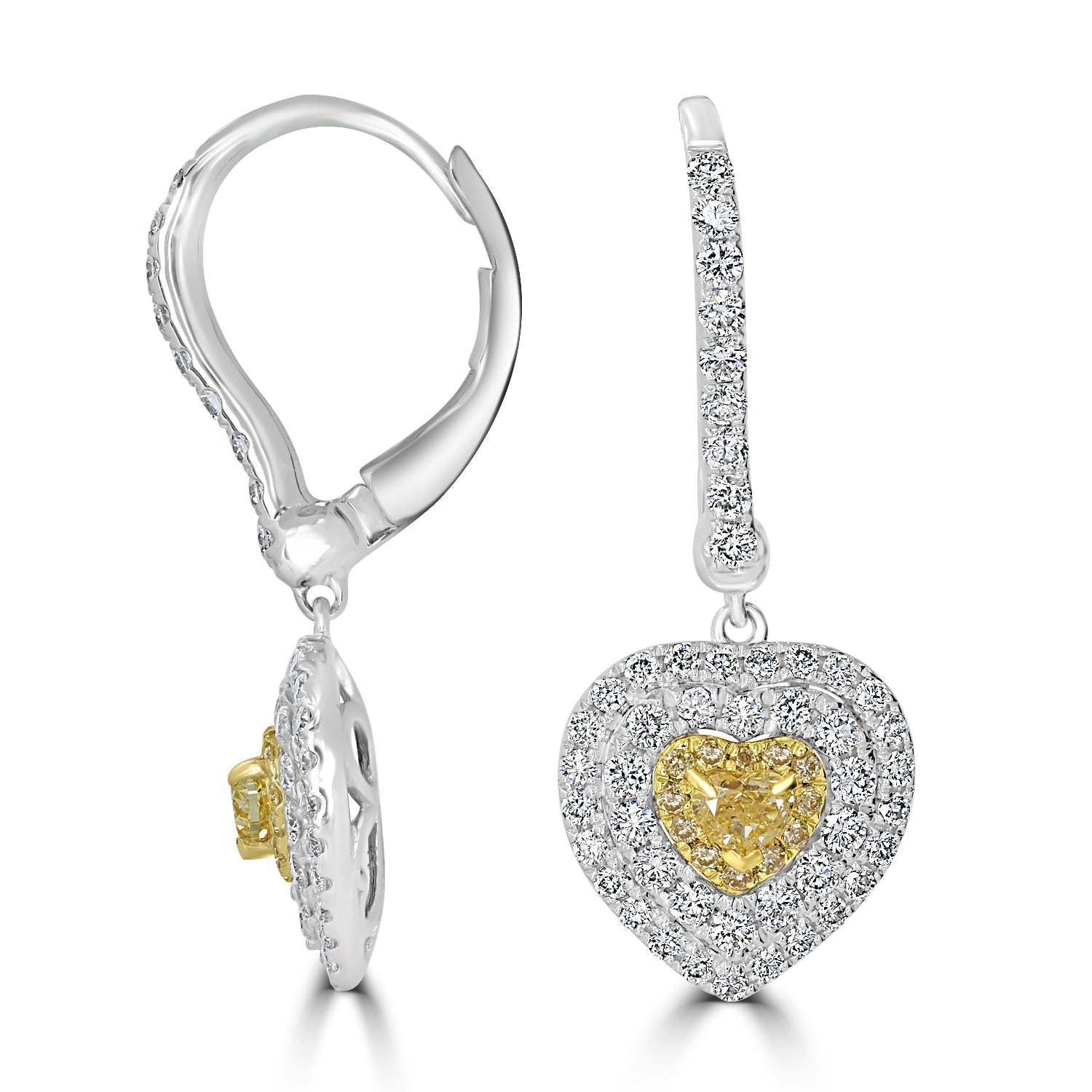 These earrings add radiant beauty to your stylish look are a perfect accessory for every style outfit. The richness of the splendid heart cut yellow Diamond and round Diamonds enhances the stunning design. This piece is your perfect companion for special occasions.