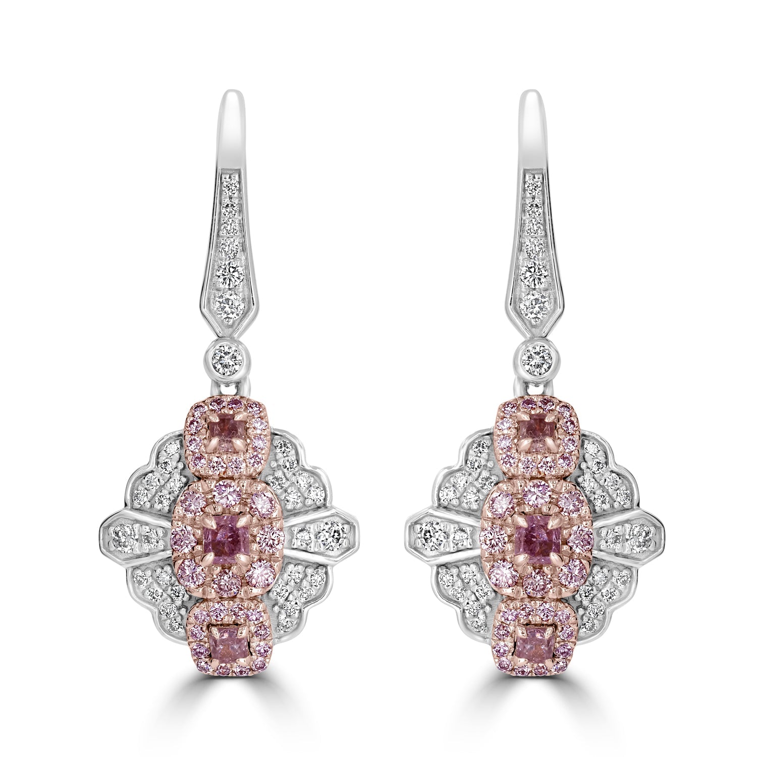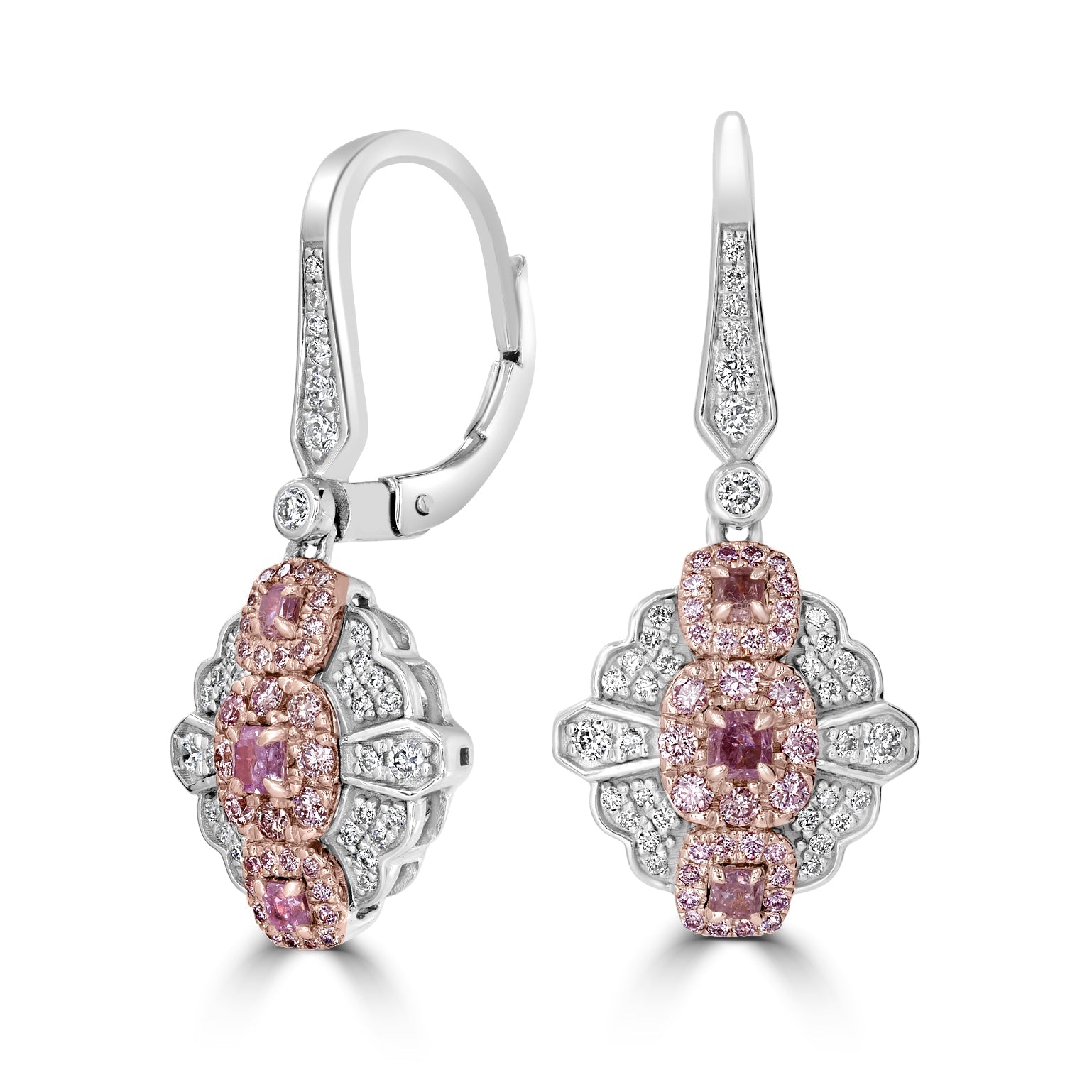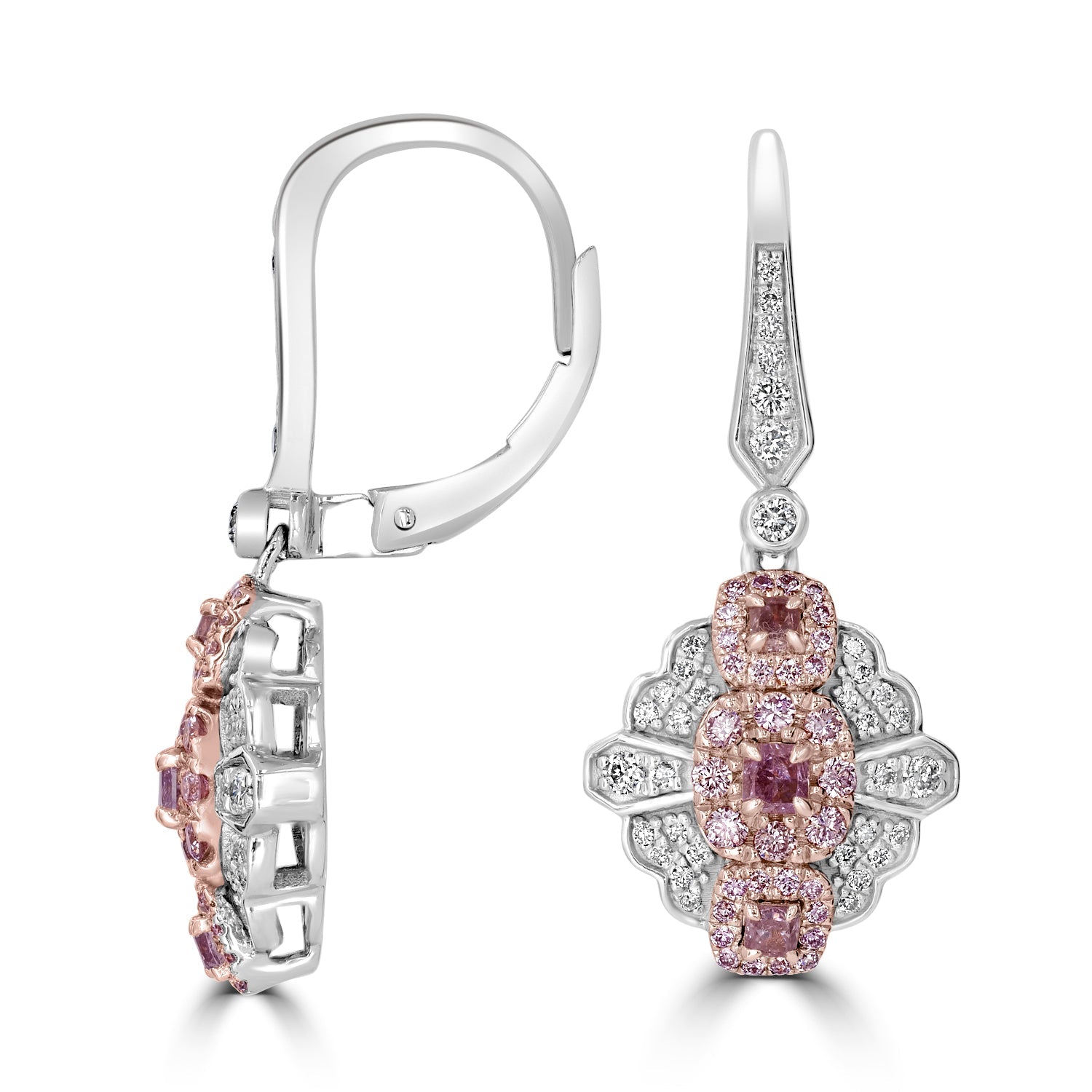 These 14K two-tone gold earrings are a perfectly set with a shimmering cushion-cut pink Diamond and round Diamonds in a world-class design!