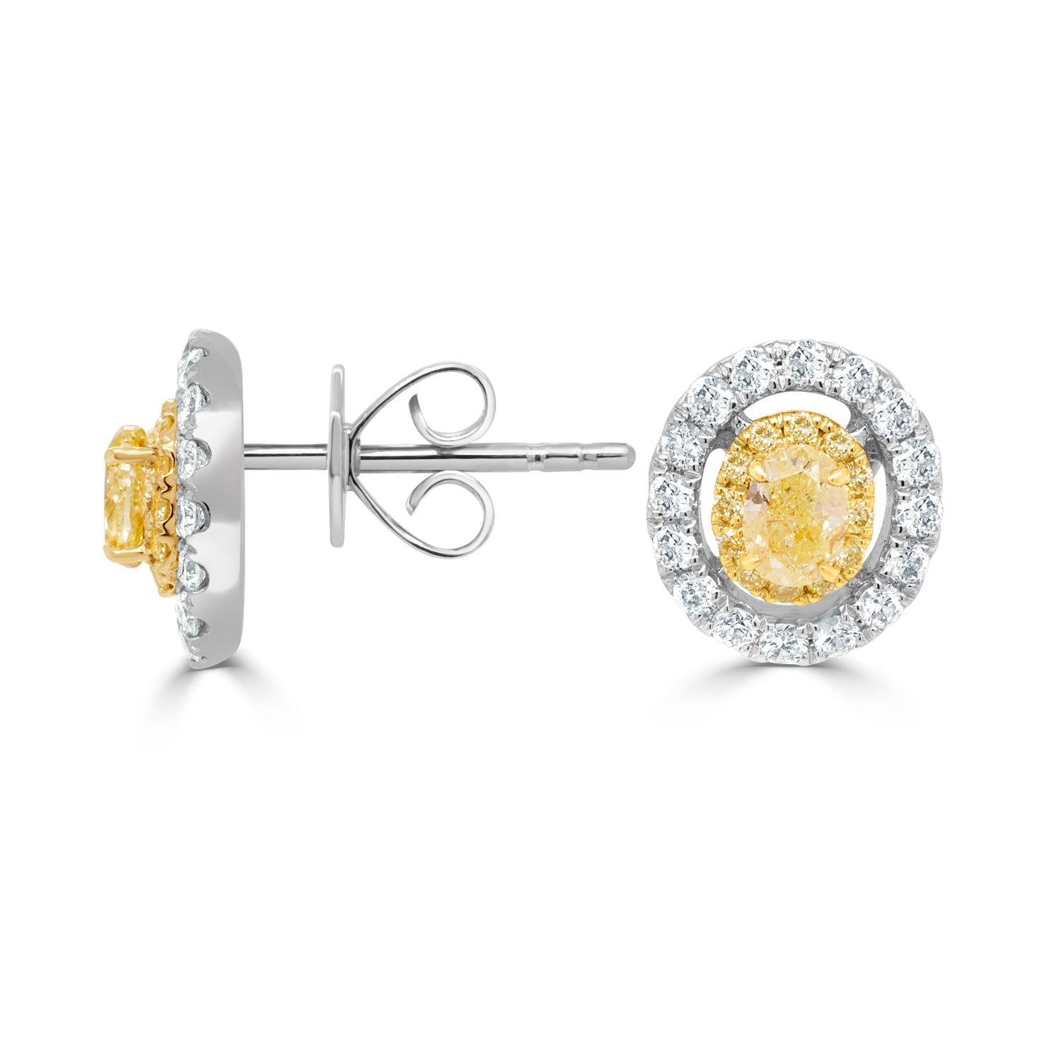 This earring that exudes immense shine and sparkle is finely fashioned with 18K two-tone gold. These earrings are set with oval cut Diamond and round-cut Diamonds that give it a luxury style.