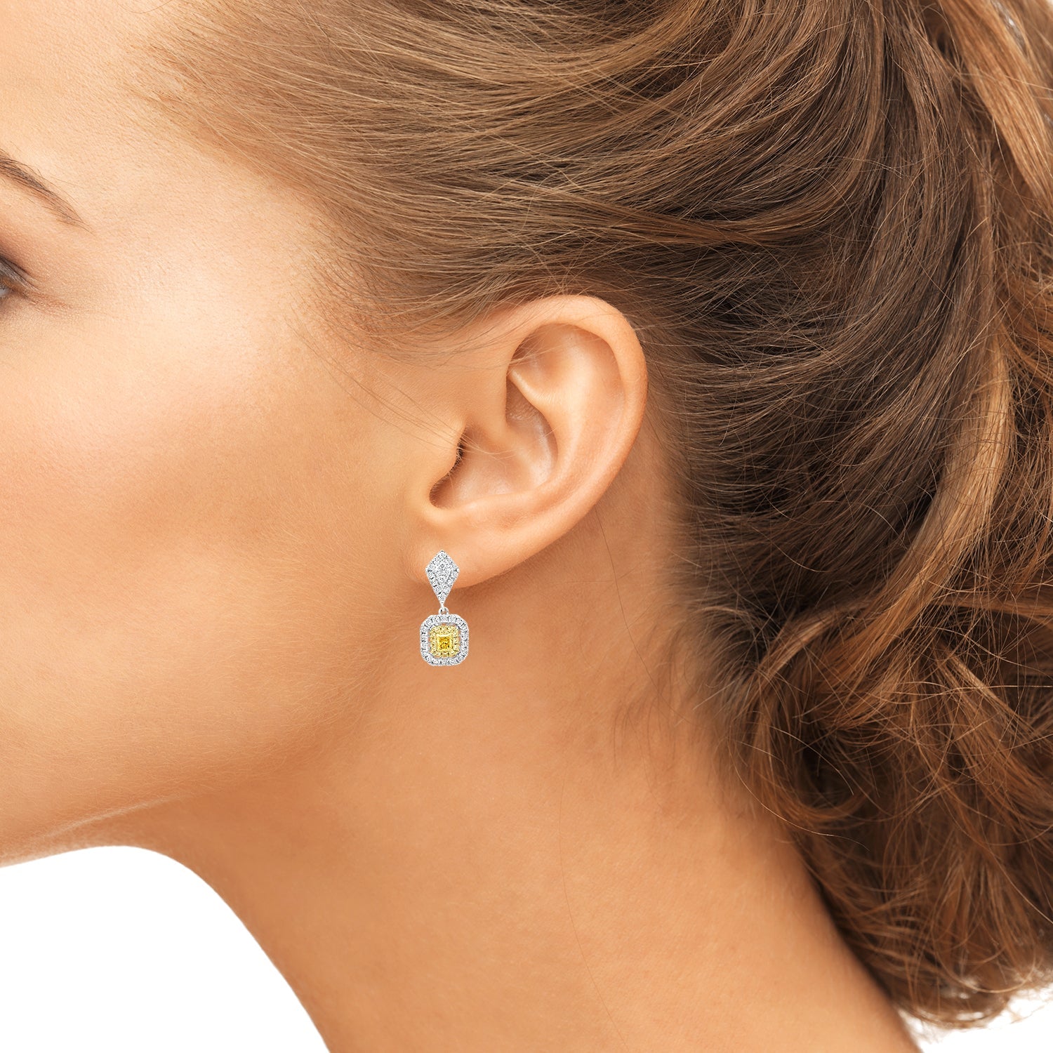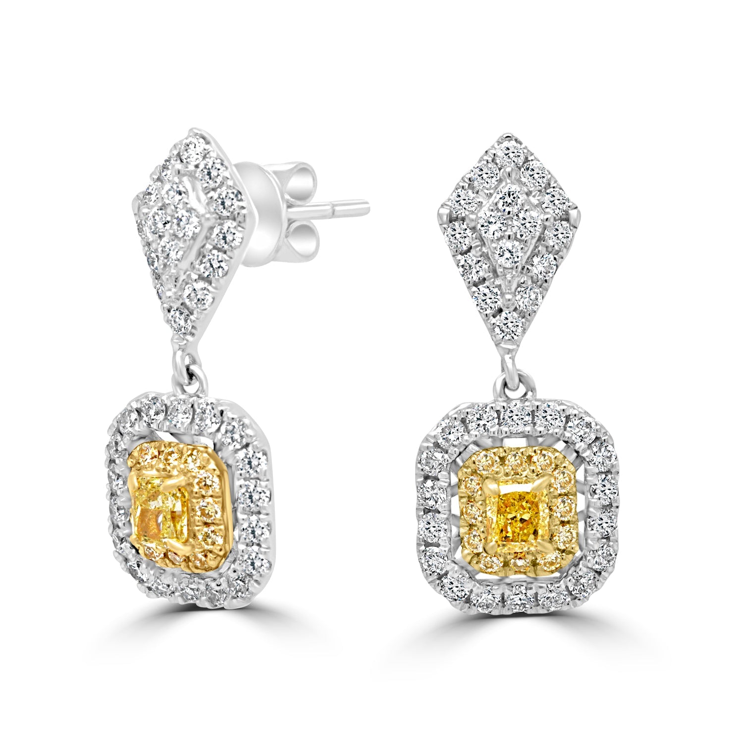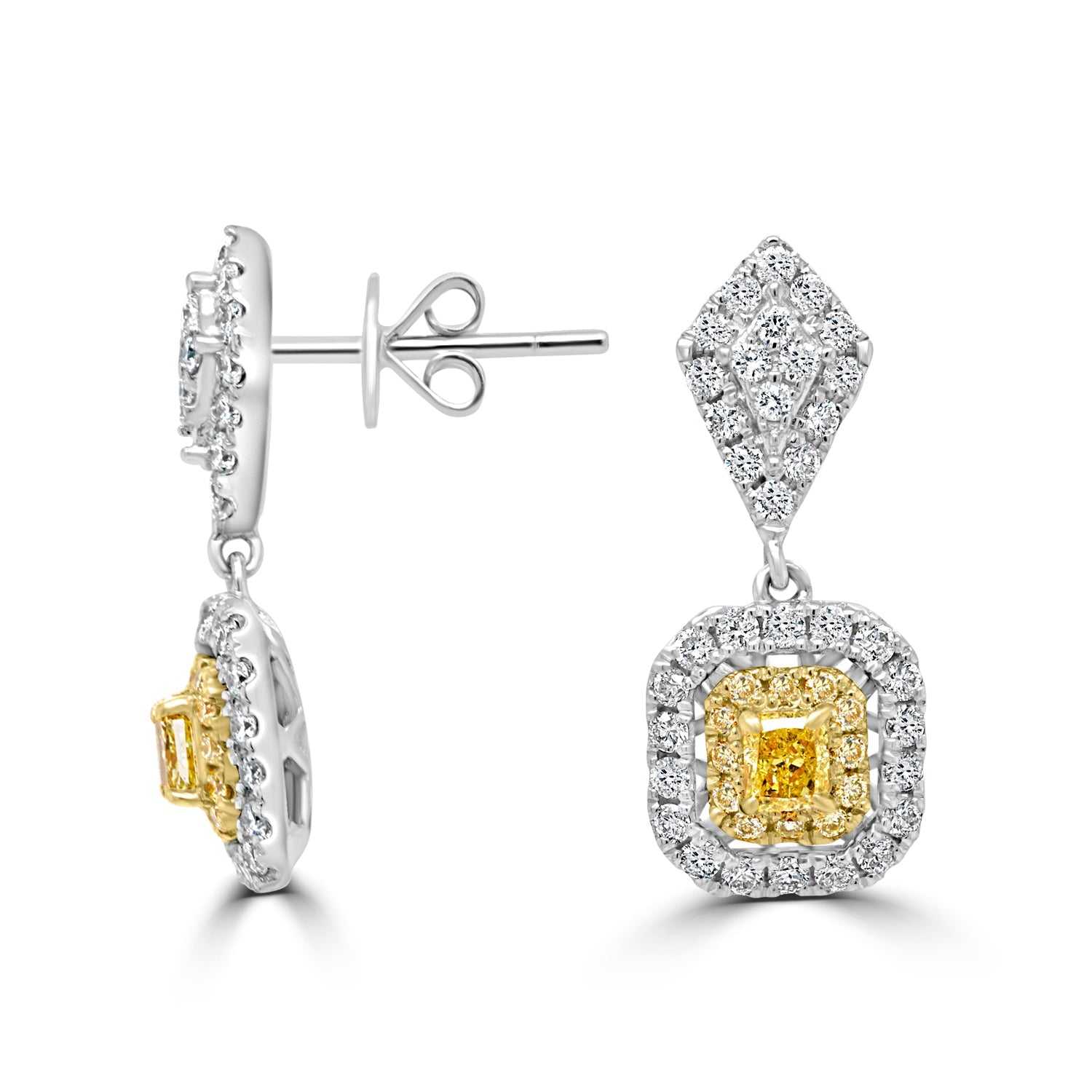Designed with 18k two-tone gold, these beautiful earrings features cushion-cut Diamonds and round Diamonds. Perfect for formal parties or family dinner.
