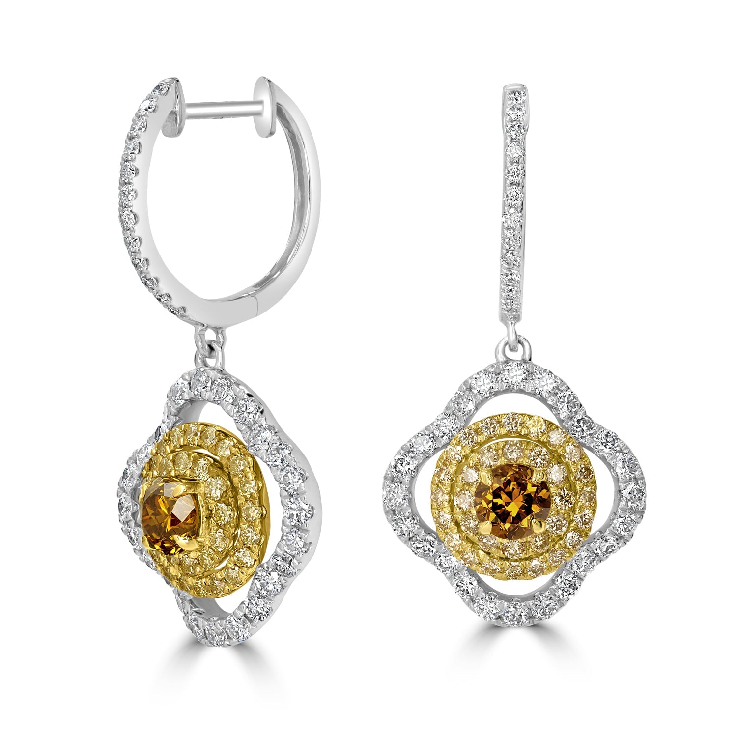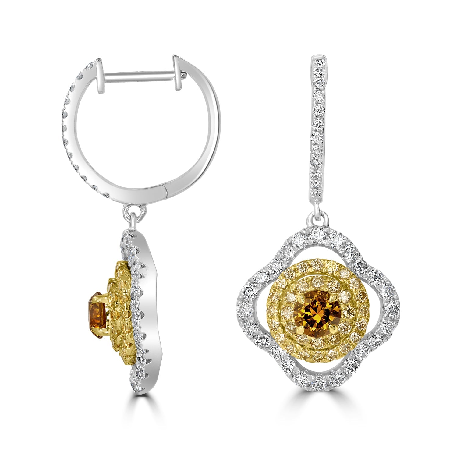 Add a touch of mystery to your outfit with these expertly designed 14k two-tone gold earrings. Set with round-cut orange Diamonds and round Diamonds.
