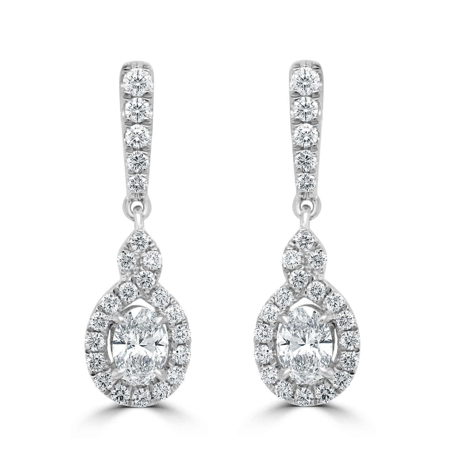 This pair of platinum 950 earrings feature a charming oval-cut Diamond and round Diamonds. Add some luxury to your outfit with these!