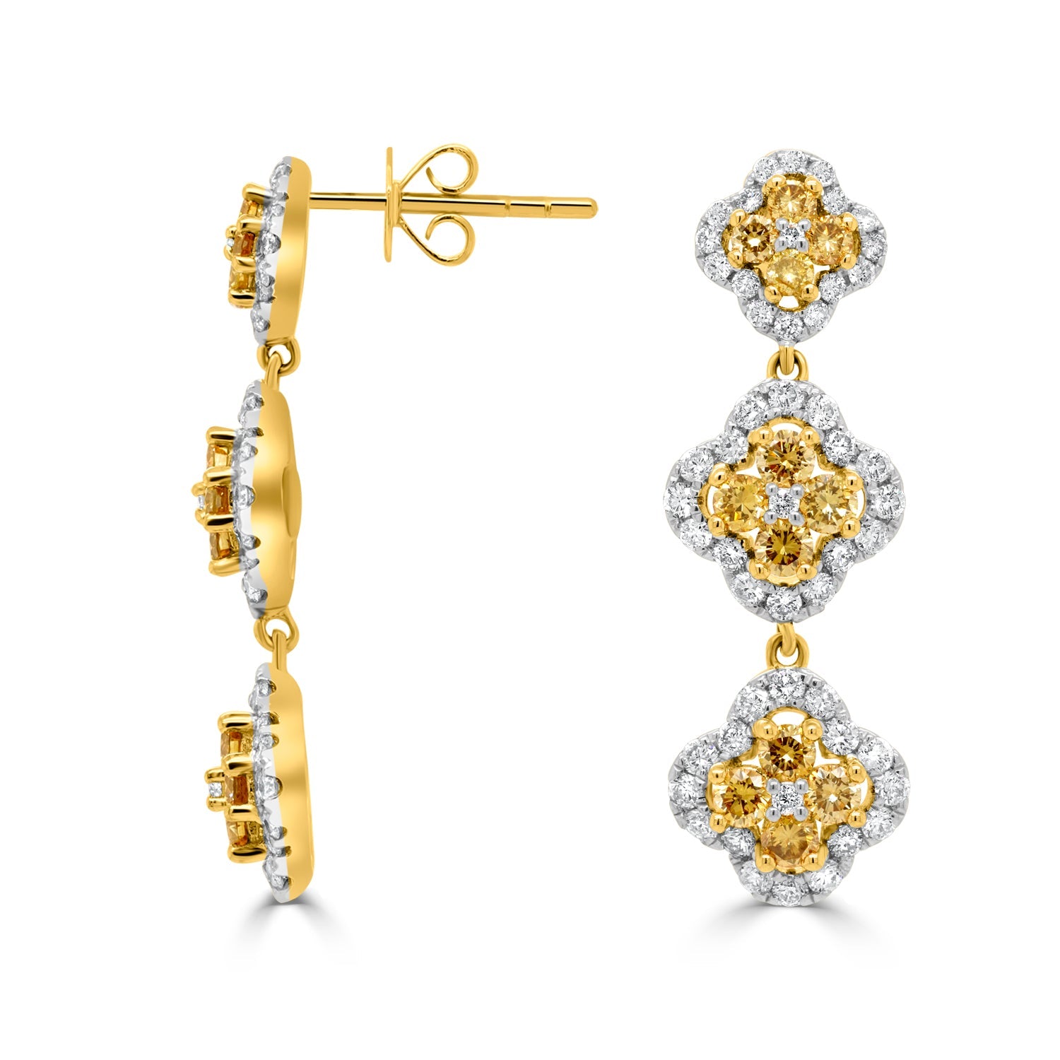 A one-of-a-kind piece of jewelry, these extraordinary earrings are set with a radiant round cut Green Diamond. Designed with lustrous 14K yellow gold and shimmering round cut Diamonds, their beauty is unmatched.