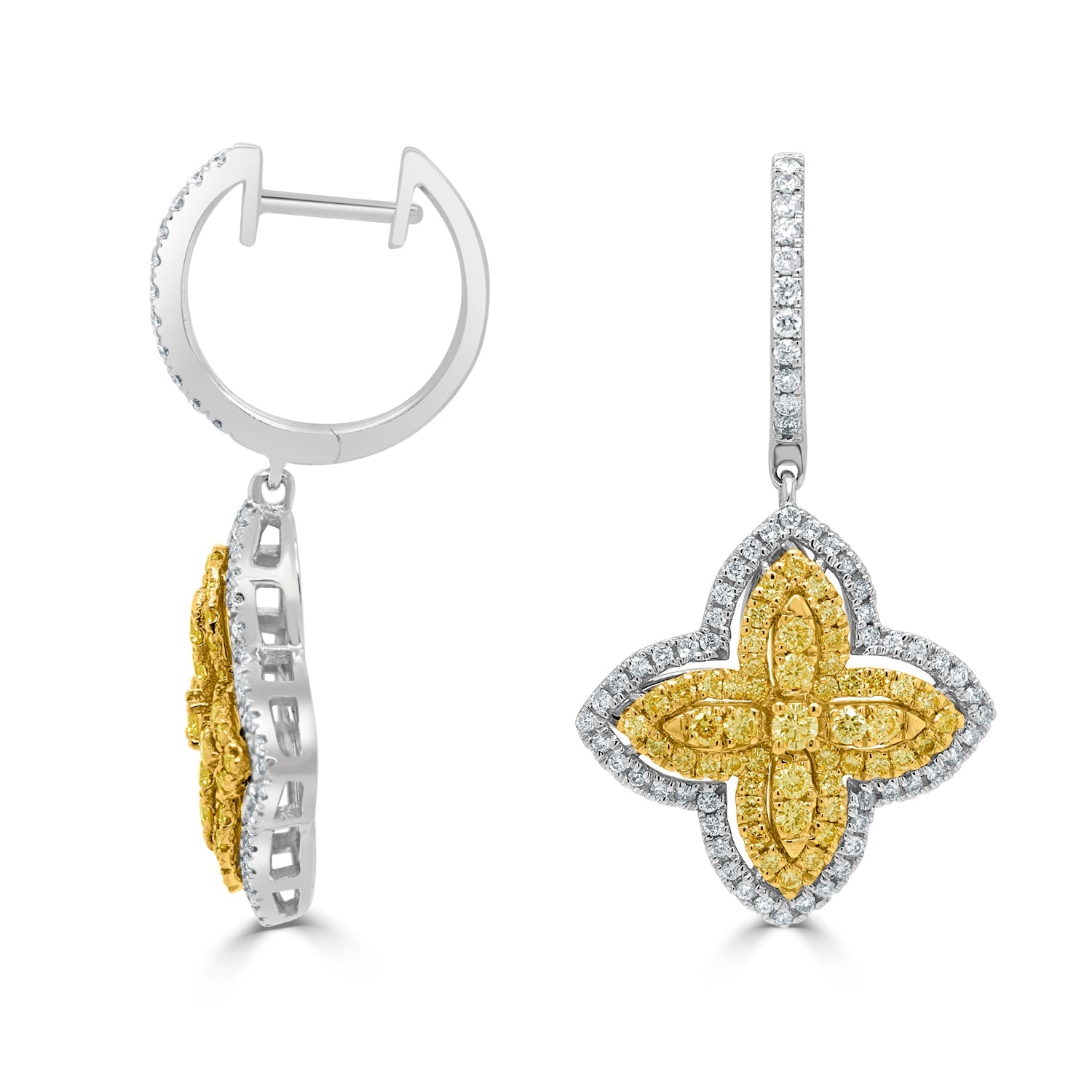 This pair of enticing earrings are designed with 14k two-tone and set with round-cut yellow Diamonds and round Diamonds that create sparkling look suited for every occasion.