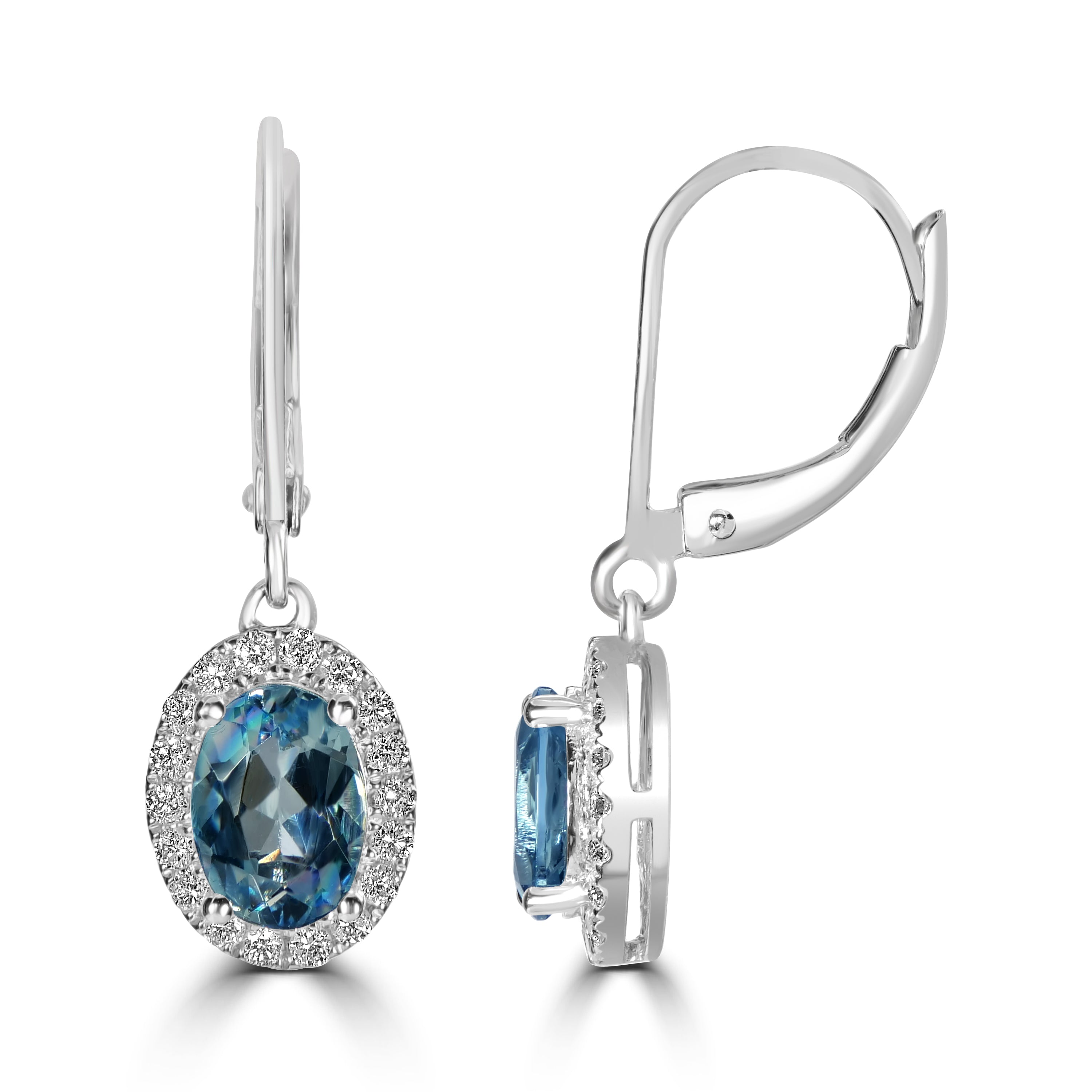 Crafted of 14k white gold, these earrings are sure to add instant flair to any style ensemble. The striking beauty of the oval-cut Aqua and round Diamonds will add brilliance and sparkle to your look. Wear it to make a style statement!