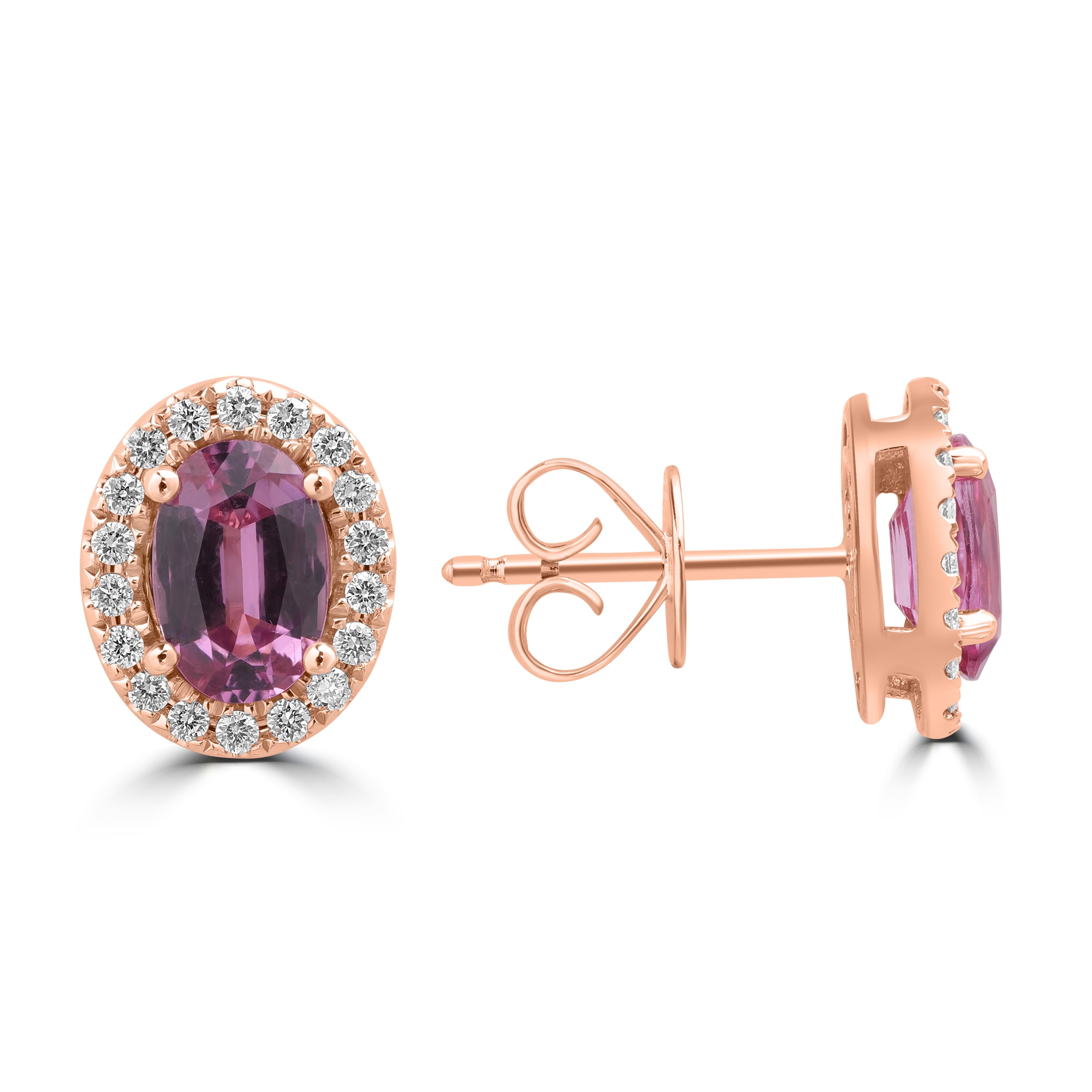 These 18K Rose gold earrings are set with an oval-cut Spinel and round Diamonds that are perfect for every occasion!