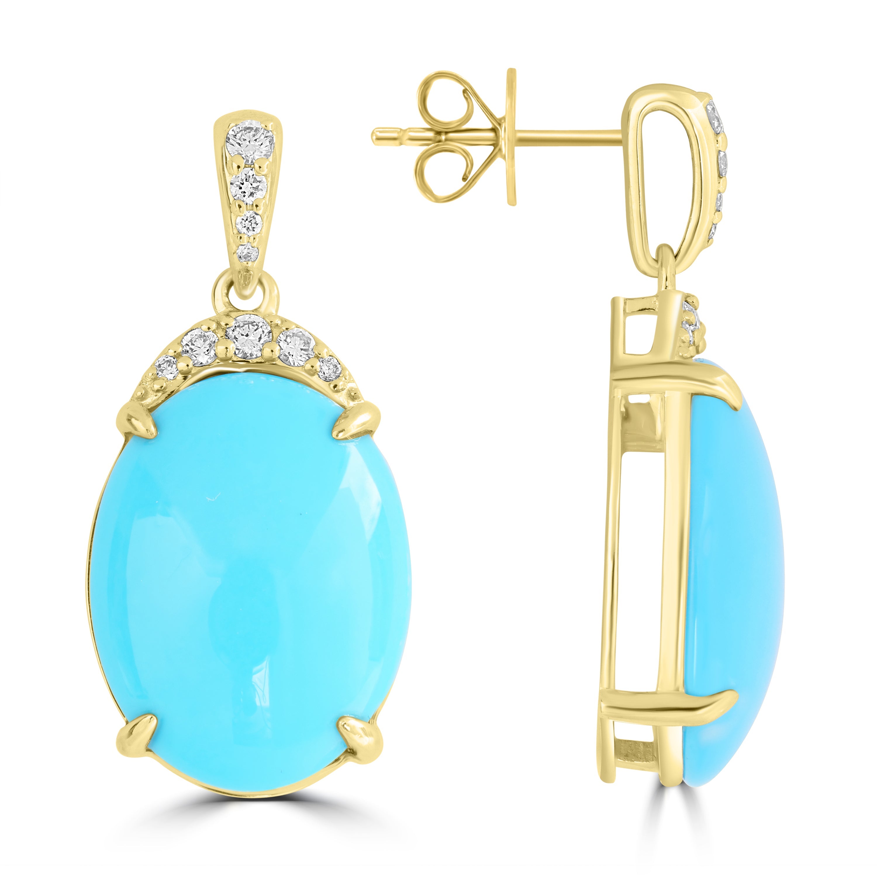 "10.43ct Turquoise Earrings with 0.213tct Diamond set in 14K Yellow Gold"