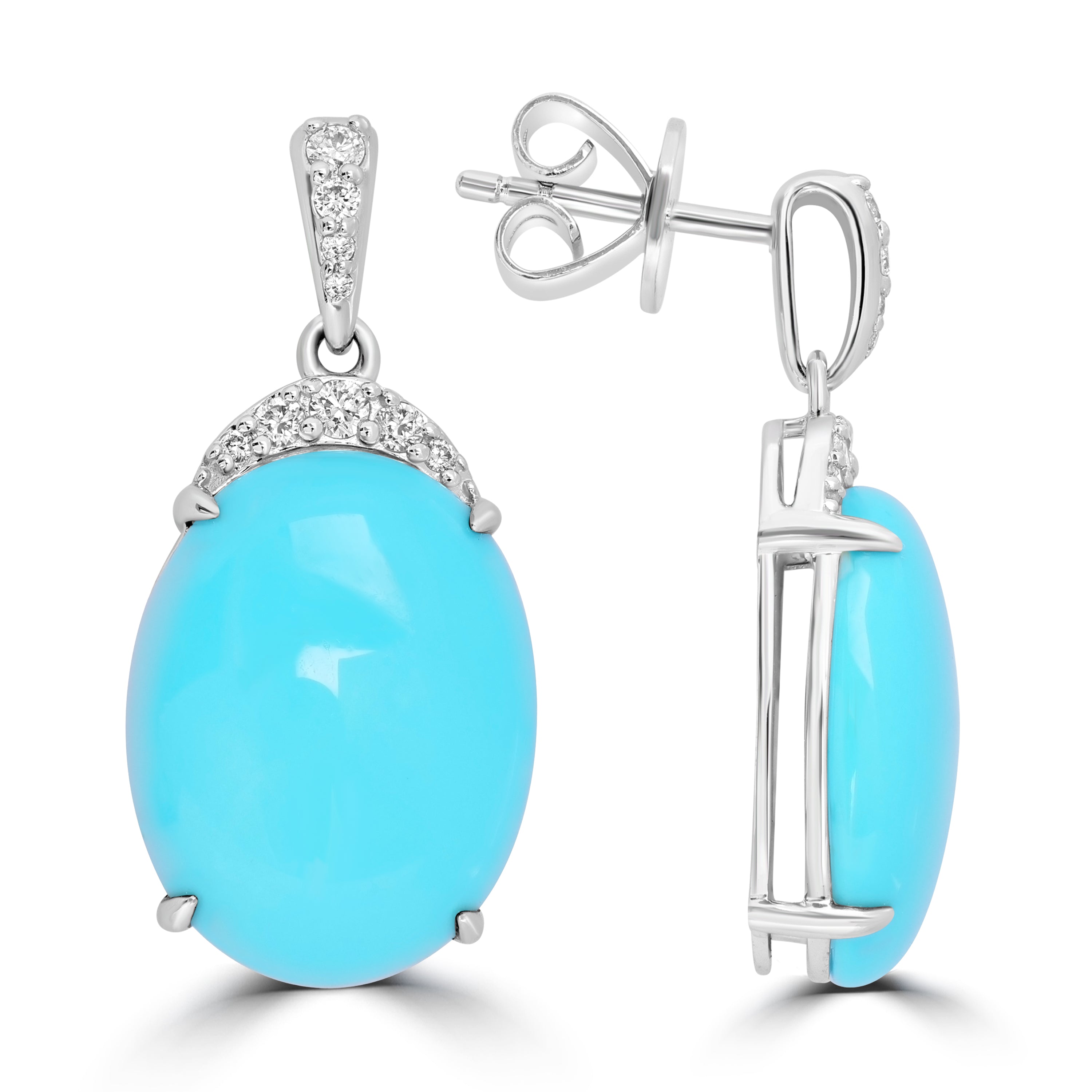 "10.73ct Turquoise Earrings with 0.212tct Diamond set in 14K White Gold"