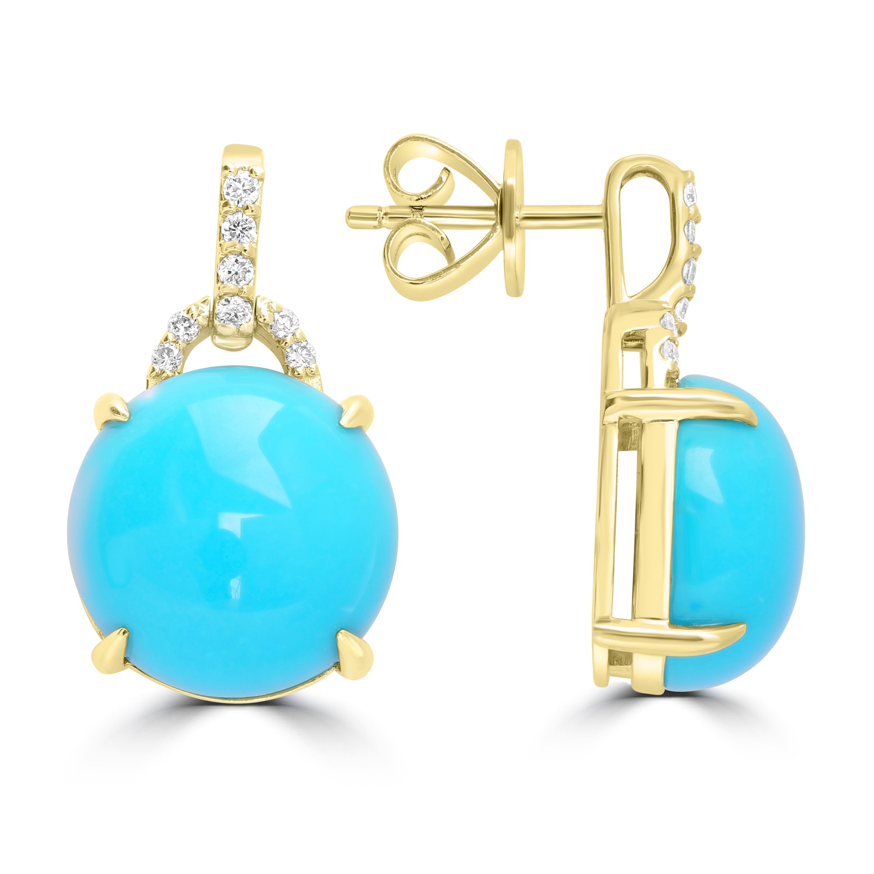 "10.91ct Turquoise Earrings with 0.123tct Diamond set in 14K Yellow Gold"