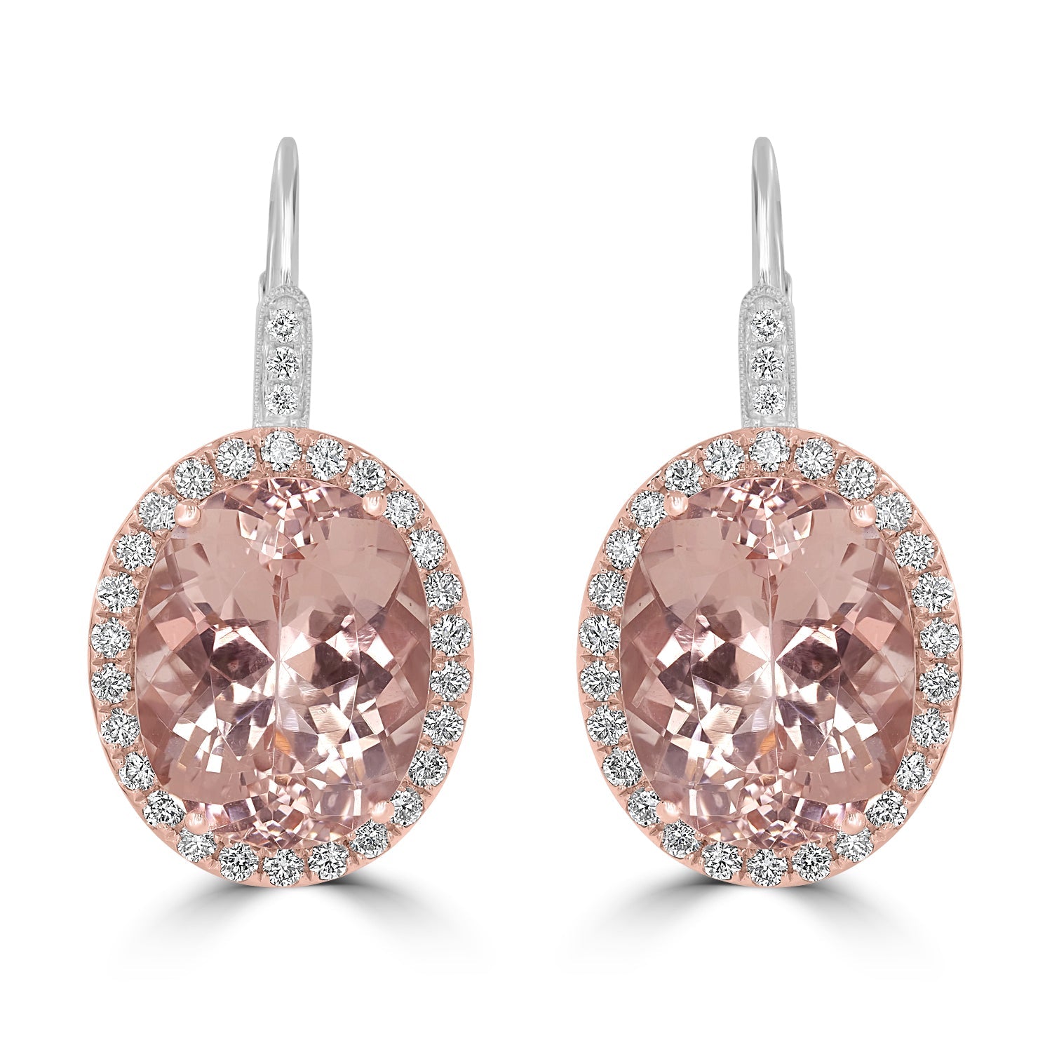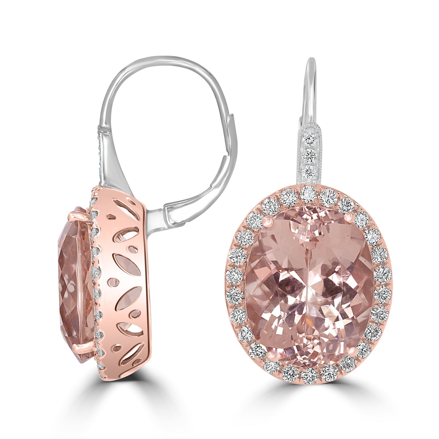 Finely crafted to keep fashionistas feel awesome as the day wanes. These earrings is a luxury to wear and provides a refined finish to your outlook. It displays a design featuring oval-cut Morganite and round Diamonds on a precious 14k white gold.