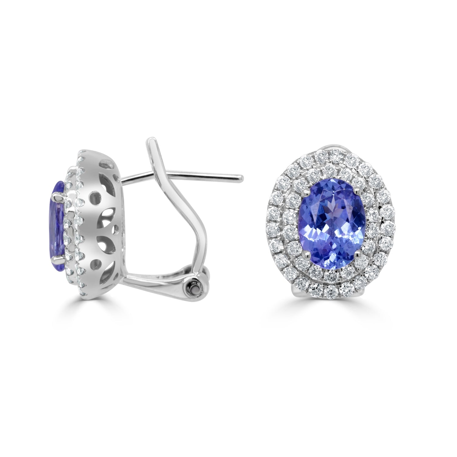 Beautifully crafted, these 14K white gold earrings are set with sparkling oval cut Tanzanite and round cut Diamonds.