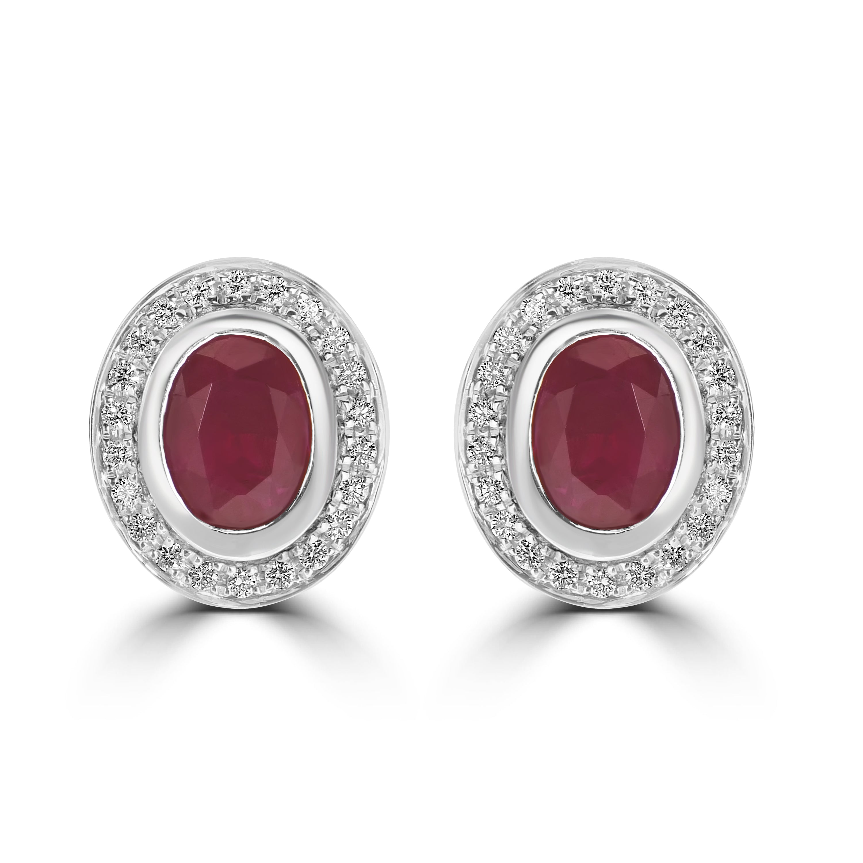 This pair of earrings give a glamorous look and fits every style of outfit. Fashioned with 14k white gold and embellished with oval-cut Ruby and round Diamonds, these earrings are perfect for parties and festivals where it's all about the bling and glamour. Flaunt your dream look!