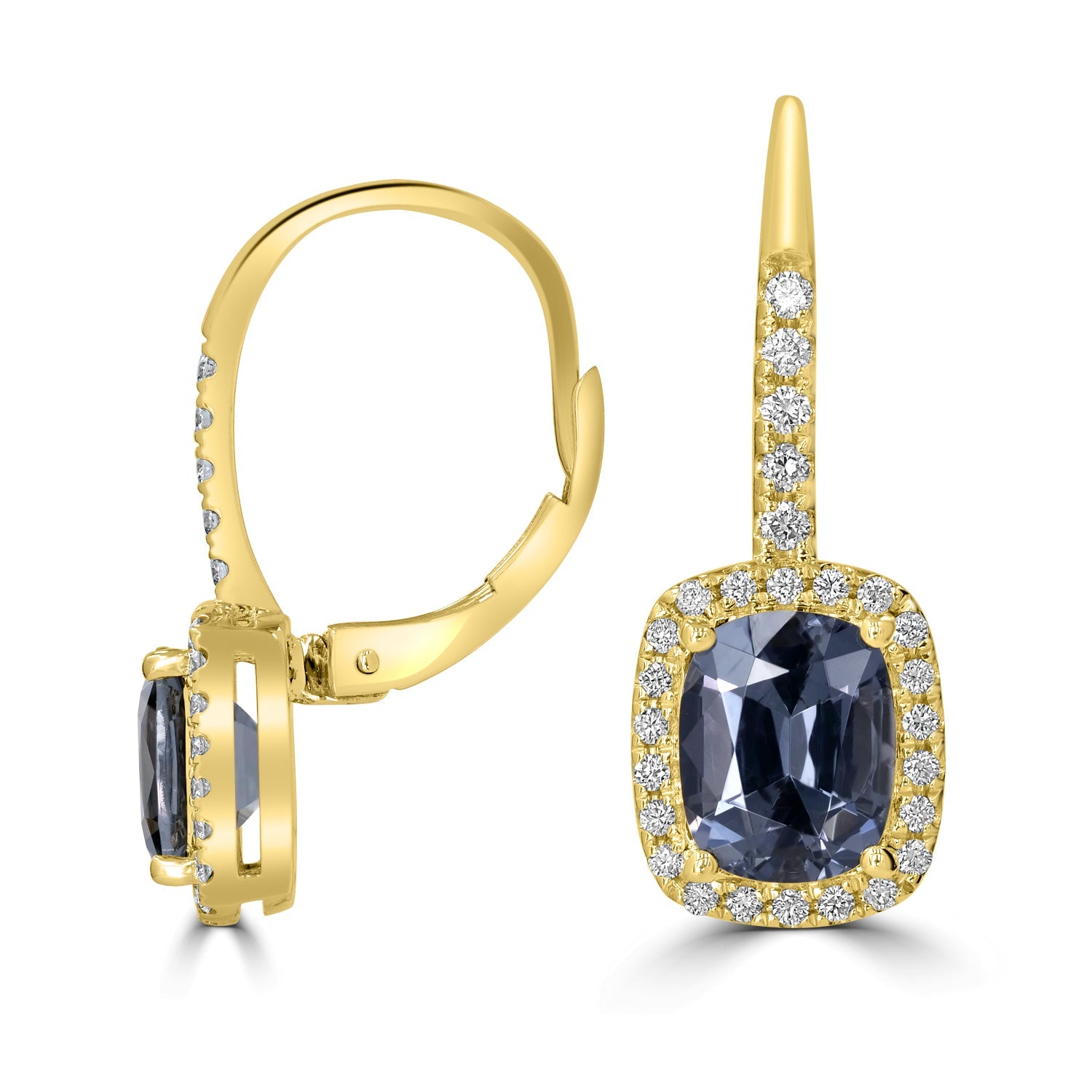 Fashioned from 14k yellow gold, these charming earrings are set with a brilliant oval-cut Spinel and round Diamonds.