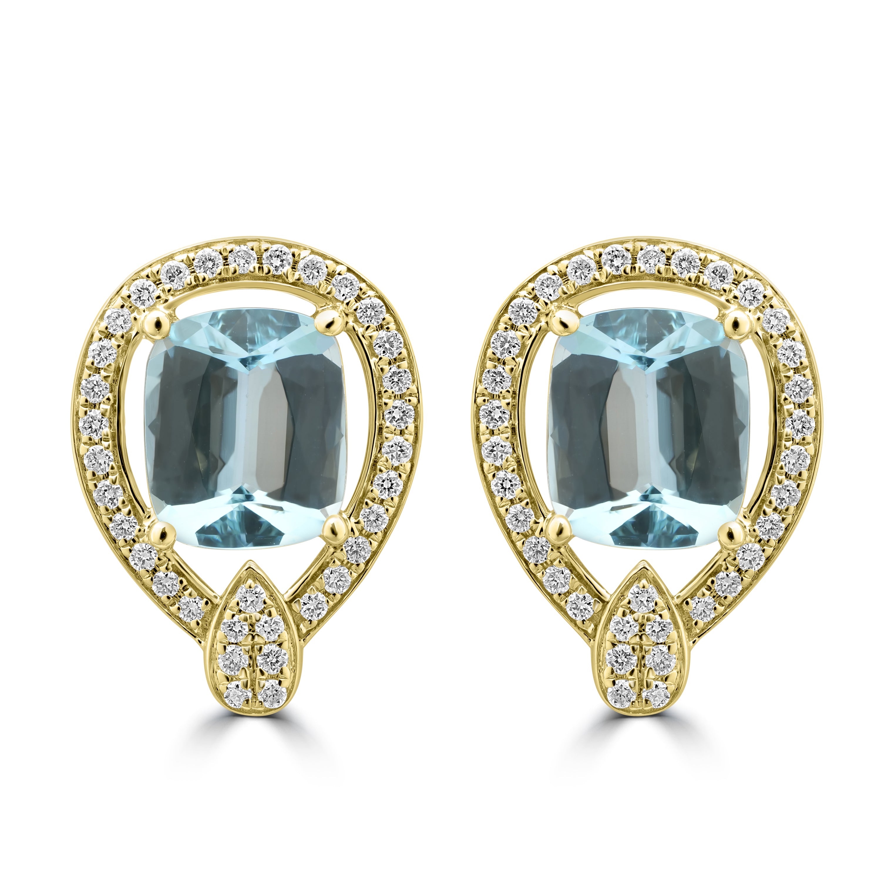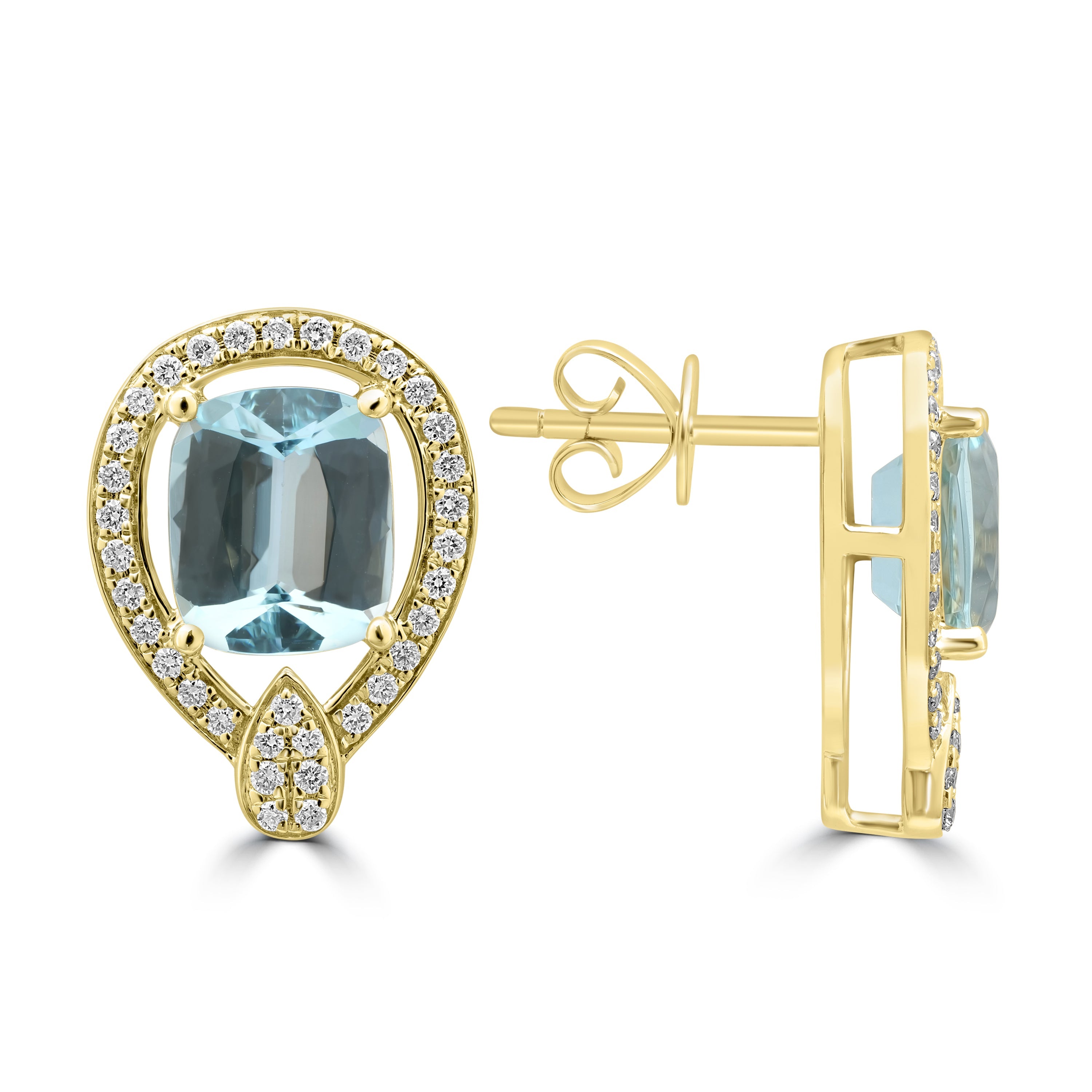 "2.85ct Aquamarine Earrings with 0.306tct Diamond set in 14K Yellow Gold"