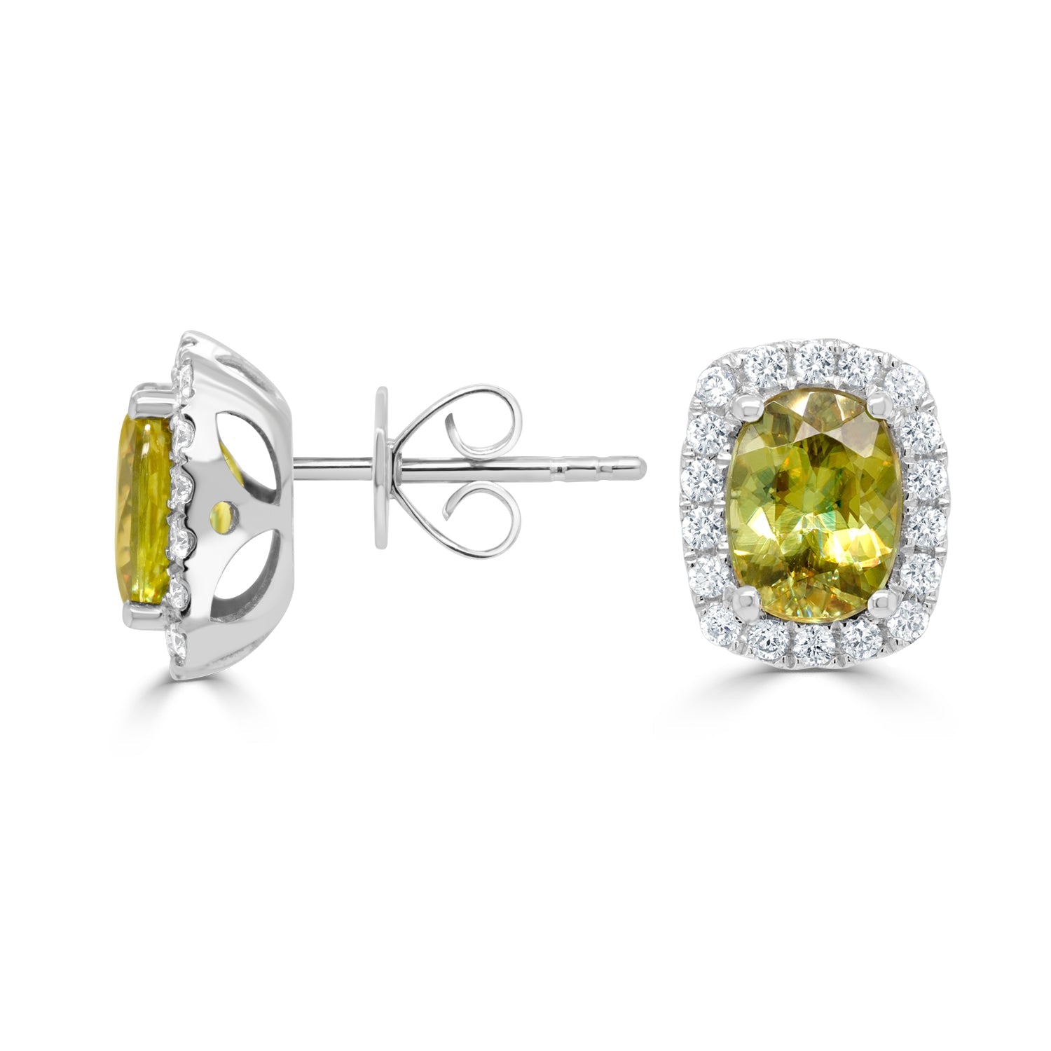 Crafted of 14k white gold, these earrings are sure to add instant flair to any style of attire. The cushion-cut Sphene and round-cut Diamond make you feel the finest with their sheer dazzle.