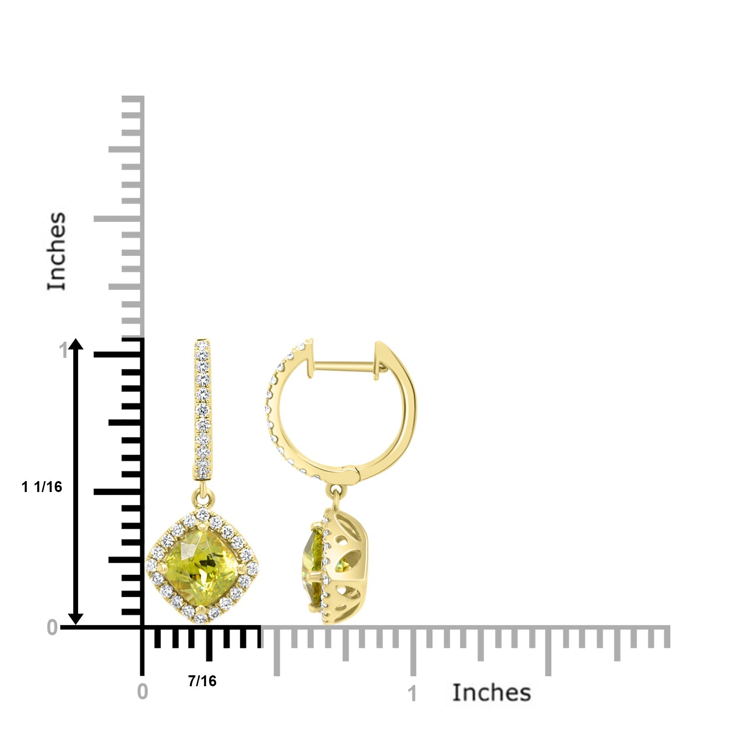 Designed with a beautiful cushion-cut Sphene, these glittering earrings are crafted with 14K two-tone gold and surrounded by stunning round cut Diamonds.