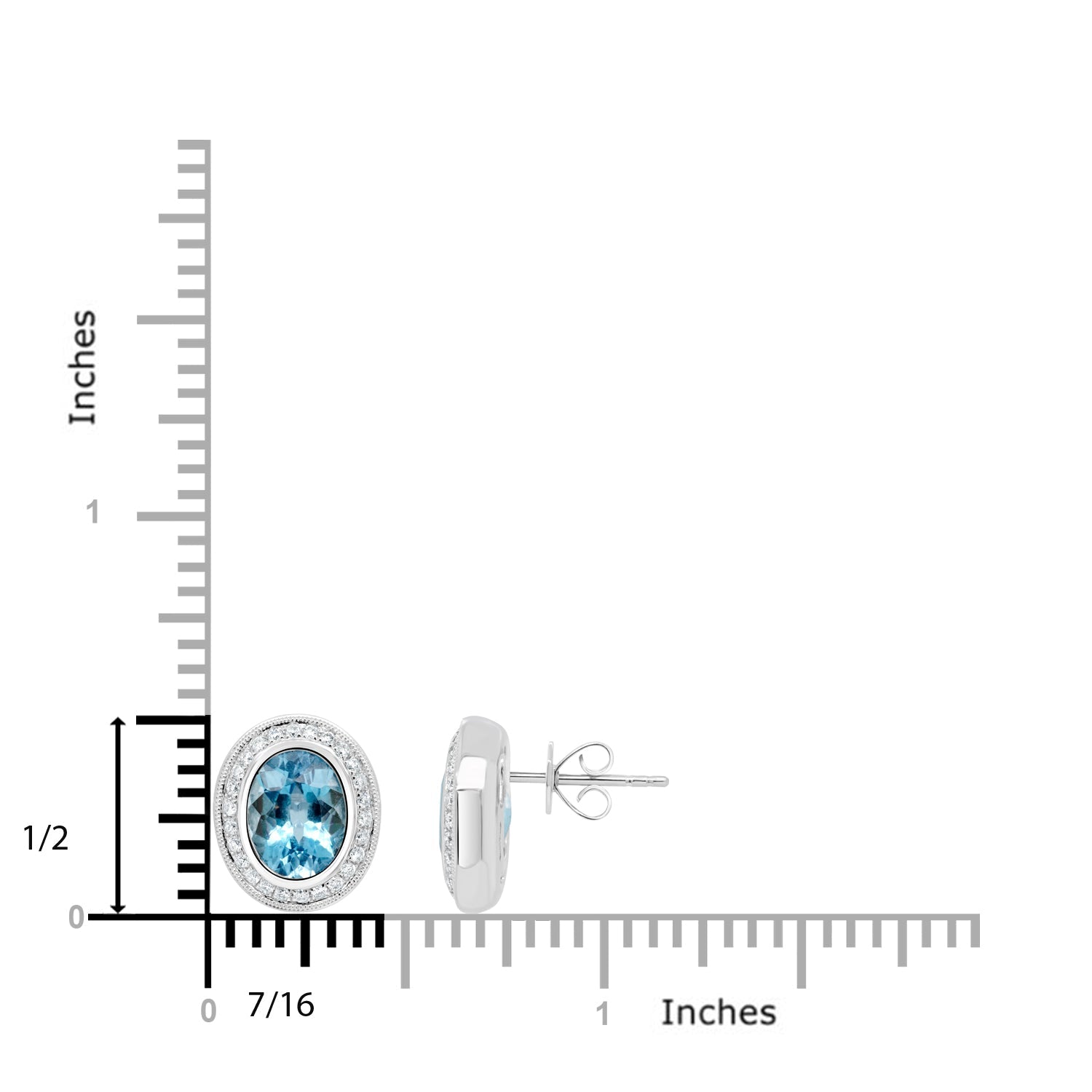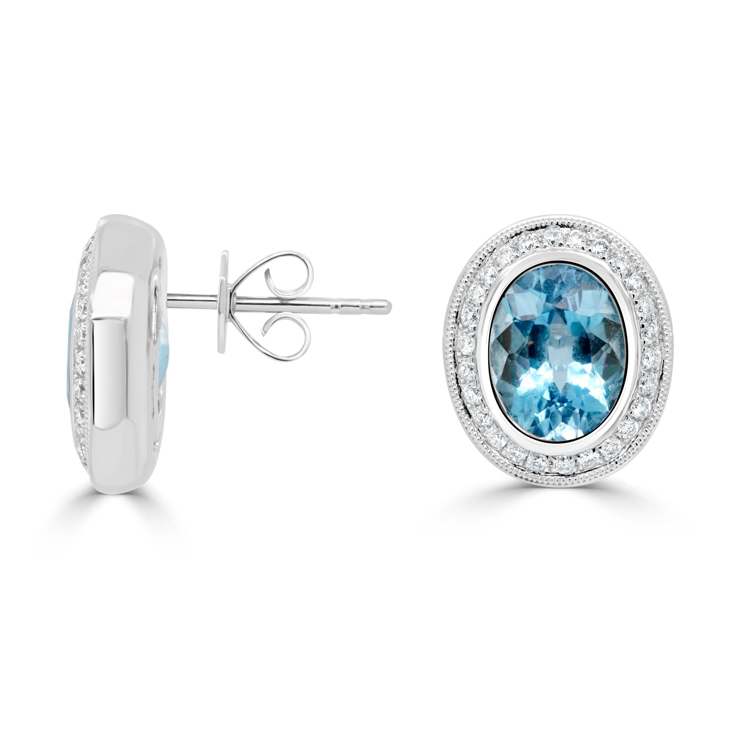 This lovely pair of earrings features an oval-cut Aquamarine and round Diamonds. Designed from 14K white gold.