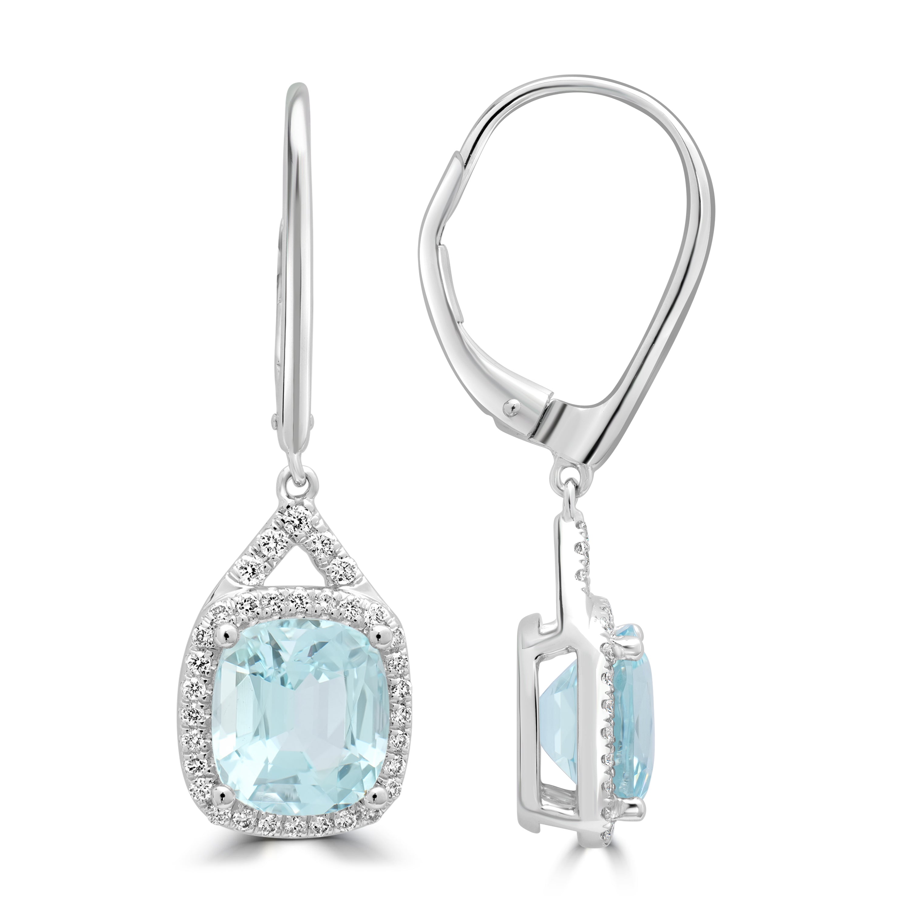 "3.83ct Aquamarine Earrings with 0.35tct Diamond set in 14K White Gold"